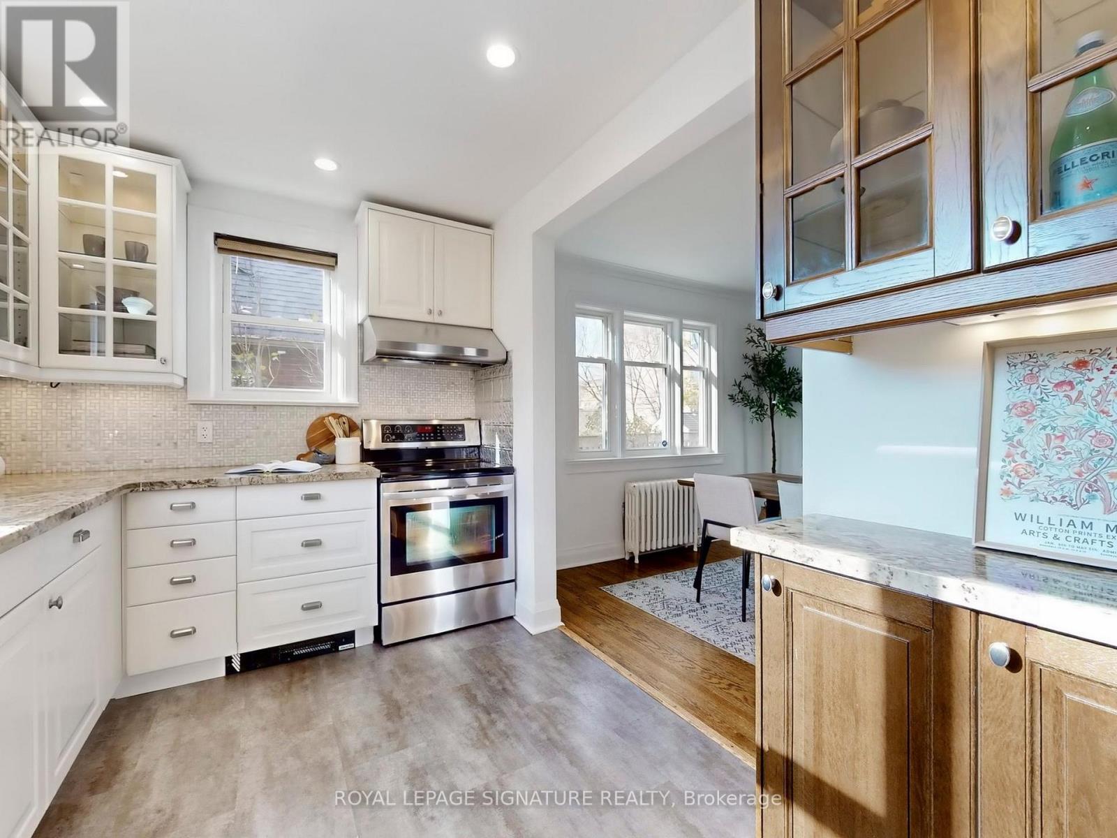 Welcome to this beautifully renovated and meticulously maintained home in one of the best neighbourhoods along the lake. Winding streets, classic homes and mature trees, and a short walk from both waterfront parks and the retail and transit on Lake Shore Blvd. This three bedroom, two bathroom traditional home has been tastefully renovated to enhance its charm and maximize functionality. Both bathrooms and the kitchen were completely renovated. The basement has been finished to include an open-plan family recreation room as well as a second bathroom, pantry, laundry and storage areas. An open stair and side door allow for easy communication between kitchen and family room, as well as direct garden access. The garden itself is unbelievable! A fenced and landscaped oasis of lush planting, pathways and patio areas, perfect for entertaining or quiet relaxation. The detached garage (12' x 20' inside) has been electrified and includes french doors and Sonos speakers. Whether for your car, your friends or just yourself, it's ideal extra space. The current owners have loved & cared for this house since 2001. Updates include: " water main; rear & bsmt windows 2007; front & side windows 2023; kitchen & 2nd fl bath renovation 2009; high capacity range hood; wiring replaced 2009; boiler replaced 2011; bsmt bathroom renovation 2017; bsmt insulated with Roxul to party wall and ceiling, spray-foam to exterior walls; original attic insulation removed and replaced with blown-in insulation in 2017 by George Kent Roofing; roof, soffit & eavestroughs on house & garage replaced in 2012; garage reclad and french doors added 2016; front & side entry doors replaced 2017; water tank (owned) replaced 2017; rear fence 2024; side fence 2009; Mitsubishi Mr Slim ductless air conditioner 2012. A home inspection was completed 19 November 2025 and is available for your review. Laneway Housing Advisors has confirmed that a substantial garden suite is possible. (id:4555)