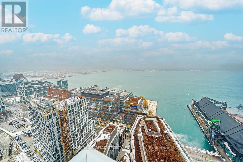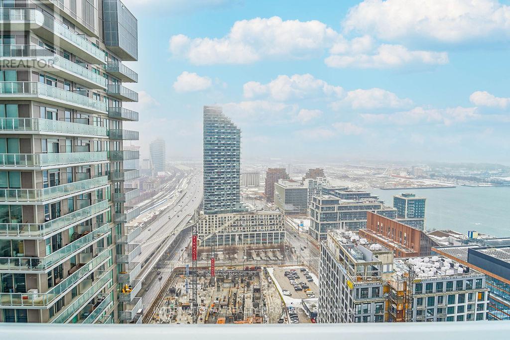 Fully Furnished 2 bed 2 bath condo on the 32nd floor south facing the Water! Incredible panoramic views of the lake and City!!! Large 190 sqft balcony. Comes with 1 parking, 1 locker and furnishings as shown in the photos. Walking distance to grocery stores, restaurants, bars, public transportation and Sugar Beach. High end modern kitchen with premium Miele appliances and upgraded washrooms. Steps to Lake Ontario and bike trails which connects you to every feature of downtown Toronto. Primary bedroom with walk-in closet. Ensuite washer and dryer. (id:4555)