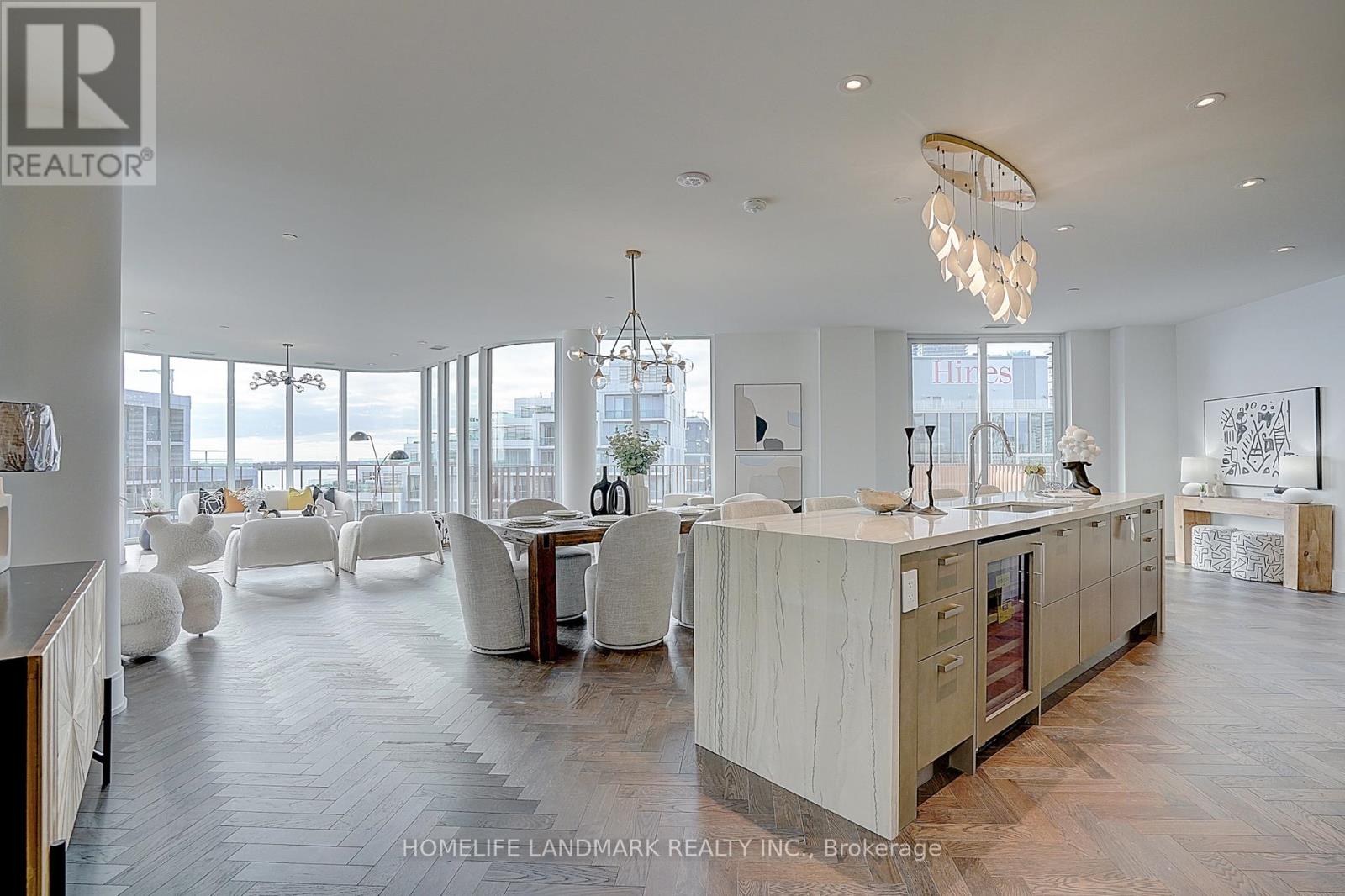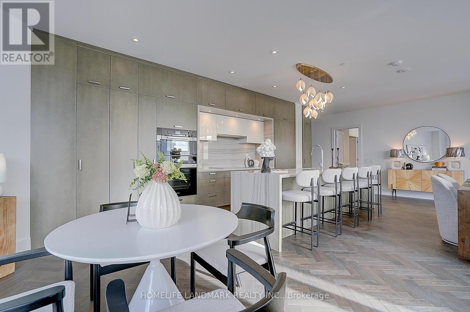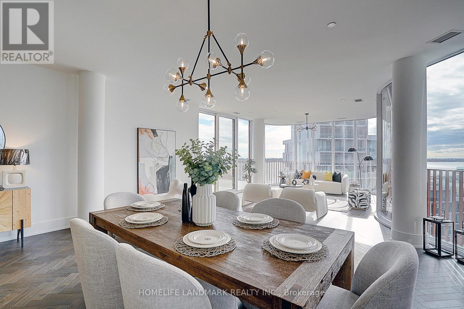 Welcome to luxury waterfront living at Tridel's Aqualuna, located in Toronto's vibrant East Bayside district. This exceptional brand-new 2-bedroom + enclosed den residence offers 2,433 sq. ft. of upgraded living space, featuring premium finishes and breathtaking south-facing views of the lake, gardens, and pool.Designed for both comfort and elevated entertaining, the suite showcases floor-to-ceiling windows, a spacious open layout, and a gourmet kitchen equipped with integrated appliances, an upgraded Miele induction cooktop with touch controls, natural stone countertops, custom cabinetry, a built-in wine cellar, and an enlarged double-waterfall island. Both bedrooms include private ensuites with heated floors and upgraded natural stone countertops, while the double-door enclosed den provides an ideal office or guest room. The luxurious primary retreat features his-and-hers walk-in closets, a spa-inspired ensuite, and direct access to a serene lake-view terrace, complemented by a second private balcony off the additional bedroom. Additional conveniences include a full-size laundry room with sink and ample cabinetry, along with an EV-ready parking space.Resort-style amenities include a lakeside outdoor pool, fitness and yoga studios, sauna, media and party lounges, and 24/7 concierge service. Just steps from Sugar Beach, the Martin Goodman Trail, the waterfront promenade, and some of the city's best dining and cultural destinations, this home offers an unmatched blend of tranquility, sophistication, and urban convenience. (id:4555)