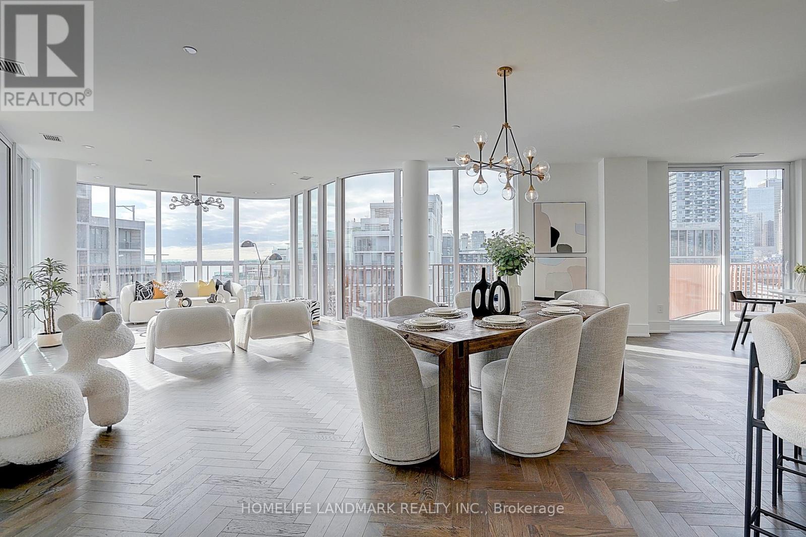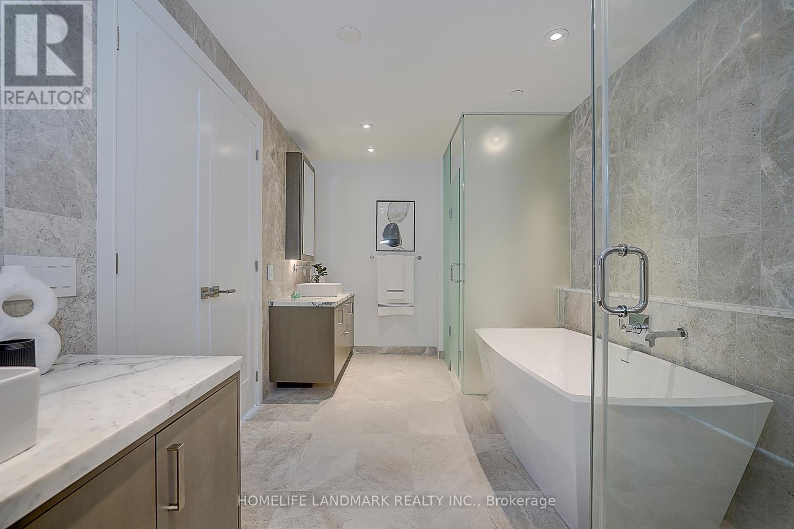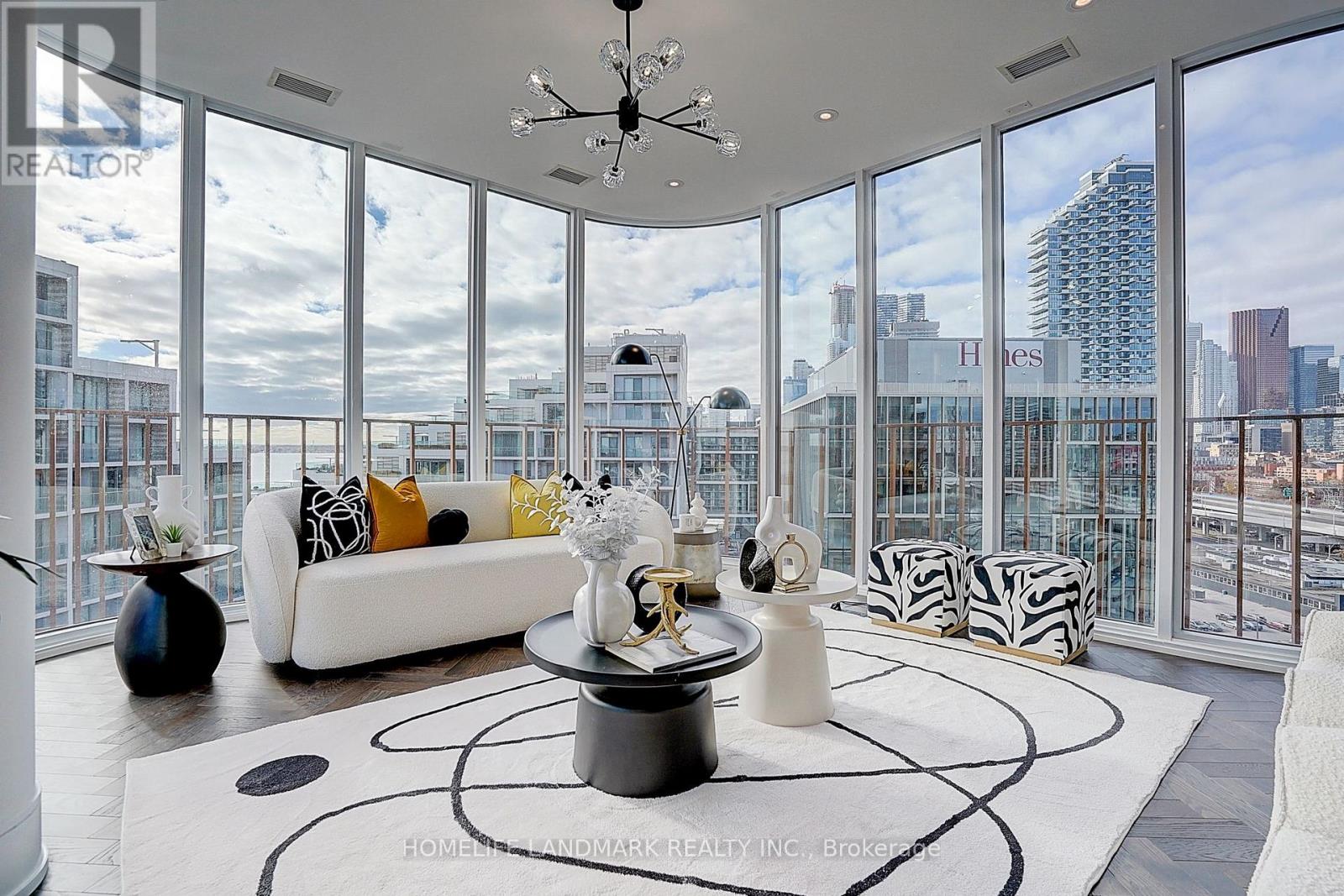 Welcome to luxury waterfront living at Tridel's Aqualuna, located in Toronto's vibrant East Bayside district. This exceptional brand-new 2-bedroom + enclosed den residence offers 2,433 sq. ft. of upgraded living space, featuring premium finishes and breathtaking south-facing views of the lake, gardens, and pool.Designed for both comfort and elevated entertaining, the suite showcases floor-to-ceiling windows, a spacious open layout, and a gourmet kitchen equipped with integrated appliances, an upgraded Miele induction cooktop with touch controls, natural stone countertops, custom cabinetry, a built-in wine cellar, and an enlarged double-waterfall island. Both bedrooms include private ensuites with heated floors and upgraded natural stone countertops, while the double-door enclosed den provides an ideal office or guest room. The luxurious primary retreat features his-and-hers walk-in closets, a spa-inspired ensuite, and direct access to a serene lake-view terrace, complemented by a second private balcony off the additional bedroom. Additional conveniences include a full-size laundry room with sink and ample cabinetry, along with an EV-ready parking space.Resort-style amenities include a lakeside outdoor pool, fitness and yoga studios, sauna, media and party lounges, and 24/7 concierge service. Just steps from Sugar Beach, the Martin Goodman Trail, the waterfront promenade, and some of the city's best dining and cultural destinations, this home offers an unmatched blend of tranquility, sophistication, and urban convenience. (id:4555)