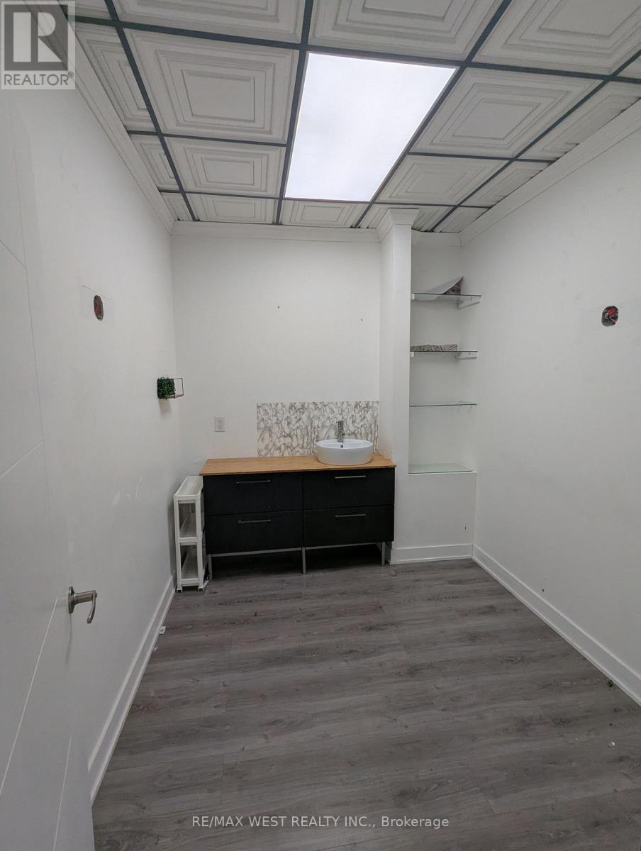 Prime retail opportunity available at the Montgomery Building! Situated just steps from The Kingsway and Islington Subway, this main floor unit offers convenient private access directly from Bloor Street. The gross lease covers utilities; tenant is responsible for Internet and phone services. The space features attractive laminate flooring, pot lighting throughout, impressive 12-foot ceilings, a spacious open work area, three private rooms/offices (two with running water), a dedicated washroom, and a storage room. Includes one reserved parking space at the rear of the unit. Approx. 1,104 square feet. (id:4555)