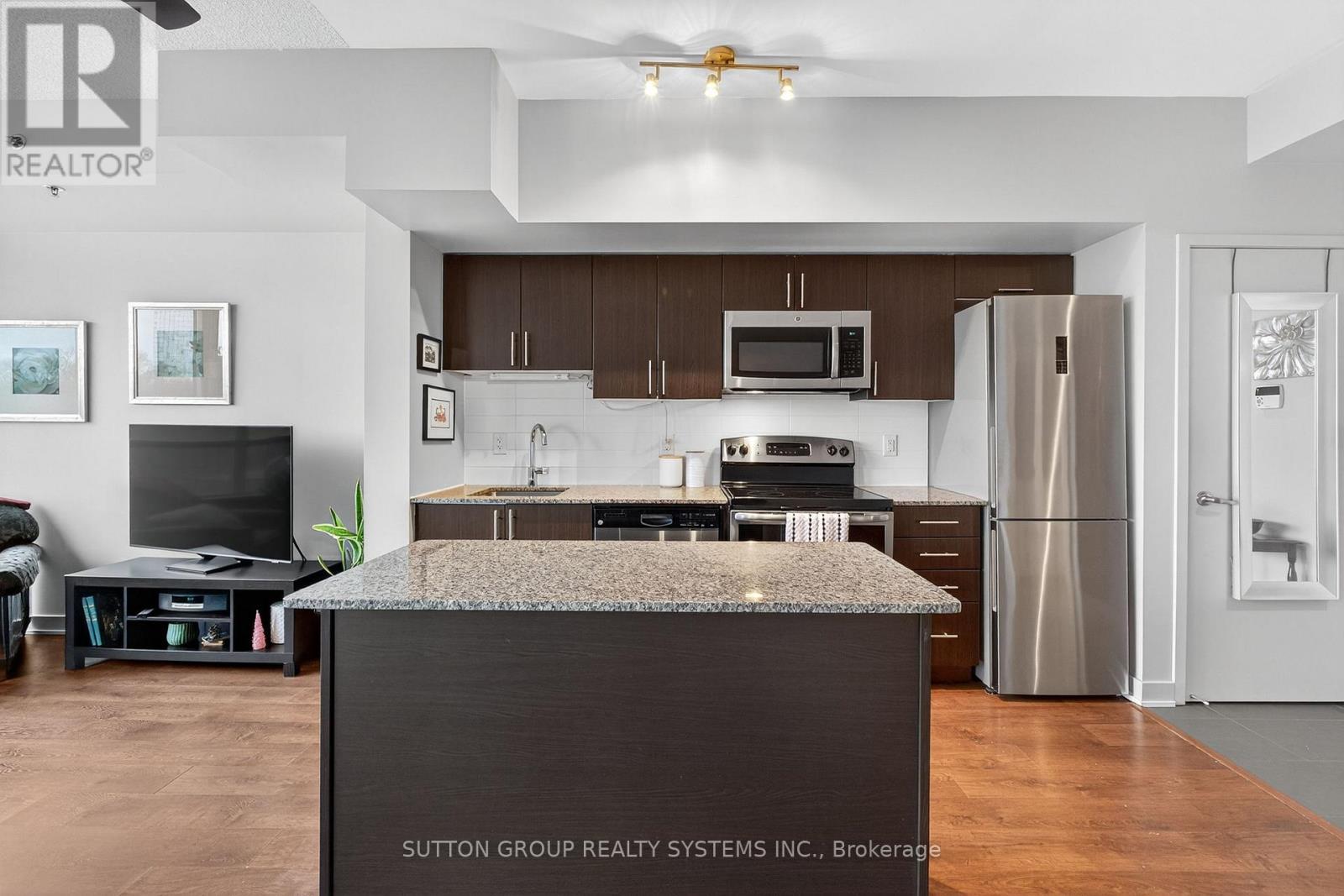 Stunning 1-bedroom suite in a highly desirable, luxurious boutique building in Mimico's most sought-after waterfront pocket. Steps to Lake Ontario, marina, parks, and miles of waterfront trails. Bright, spacious layout with soaring ceilings, large windows, and an open-concept kitchen with center island, granite counters, S/S appliances, and ample storage. Private balcony with over 600 sq. ft. total living space (incl. balcony). Includes 1 parking, 1 locker, and 1 dedicated bike storage. Premium amenities include a lake-view rooftop patio with BBQs, gym, lounge, and games room. TTC & streetcar at your doorstep; short walk to Mimico GO, Blue Line Transit, cafés, shops, and restaurants. Steps to President's Choice grocery store. Minutes to the Gardiner, QEW, downtown, and Pearson Airport. (id:4555)