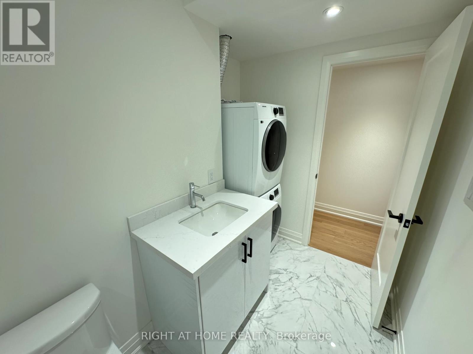 Brand New 2-Bedroom Basement Apartment in Prime Etobicoke Location - Modern Finishes & Private EntranceProfessionally renovated, brand-new 2-bedroom basement apartment in the desirable Rathburn & Kipling area of Etobicoke. This spacious unit features 8-ft ceilings, elegant porcelain flooring, pot lights throughout. An elegant, bright kitchen with granite countertop, large sink, tiled backsplash and brand new stainless steel appliances (fridge, stove, dishwasher, microwave). The primary bedroom includes a luxurious 4-piece ensuite with glass shower and double sink, while the main bathroom offers a stackable washer and dryer for convenience.Enjoy a private entrance with large mudroom landing, separate heating and air conditioning, and one parking spot. Snow removal and lawn care included. Steps to TTC bus stop at Kipling, close to subway, top-rated schools, and Thorncrest Village Shopping Mall. Close to Centennial Park, West Dean Park and numerous trails. Located in a quiet, family-friendly neighborhood. Tenant pays 33% of all utilities. Ideal for professional tenants seeking a modern, comfortable home in a prime location. (id:4555)