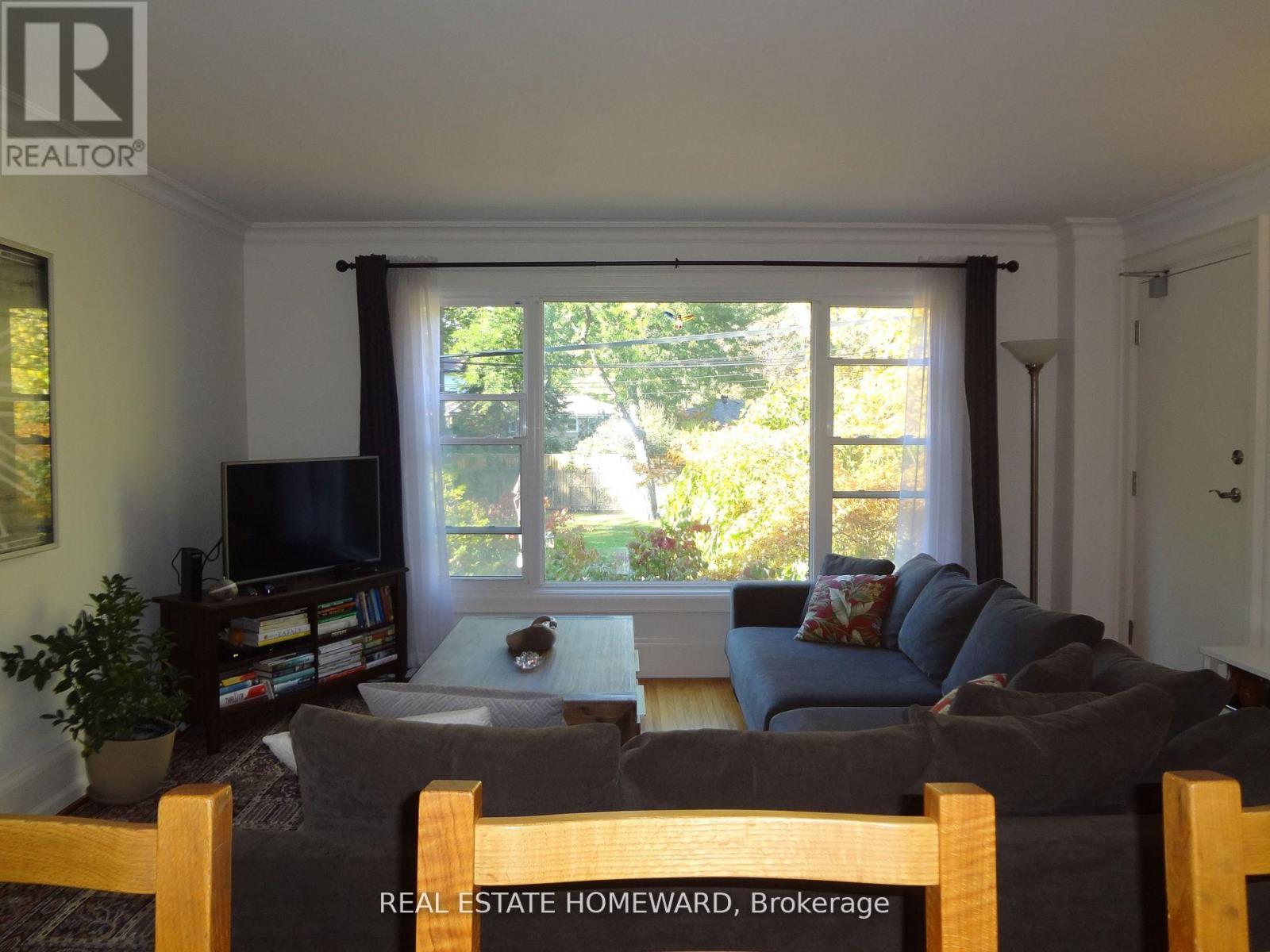 *Facing a garden & Parkette And A Hill Of Trees In A Quiet Enclave On A Wide-Dead End Street. Executive rental, Main Floor Of Triplex, 1,100 Square Feet (larger than most triplexes or semis). Gutted And Renovated. Bright Huge Living Rm With Massive Window view of garden and park across the street. Gourmet Kitchen, Enormous Granite Counter W/ Leather Finish (Top-Of-Line) with 8 1/2 ft long Breakfast Bar. Italian glass backsplash, over-sized Kindred stainless sink, goose neck faucet, Huge Window facing West. Sliding Pots & Pans Drawers, Lazy Susan. Two Large Bedrooms, Newer Beautiful Bathroom With Window, Tons Of Custom Closet Space, Real Oak Flooring, new 7" Baseboards, new Plaster Mouldings and smooth ceilings (no stucco), Windows Facing South, West And North, Central Air, Exclusive use of Backyard patio for BBQ. Brand new 2025 LG Large size Washer & Dryer (shared with single bsmt tenant only). Tiled Ceiling In Shower (Shower Head 7 Feet Tall). Walk to shops on Queen St, stroll the Boardwalk, by the Lake. 24 hour TTC along Woodbine to subway. Danforth GO 5 minute drive. Parking In Front Of House. Floor Plan Attached. Sorry NO Pets, owner lives in Upper Unit and is acutely allergic & asthmatic. (id:4555)