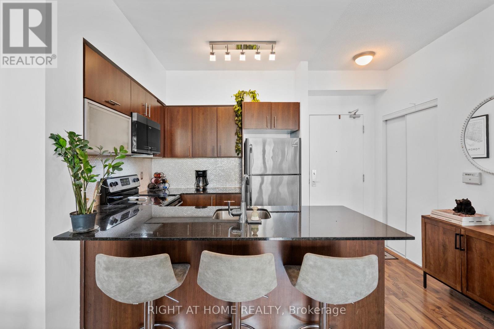 Welcome to your elevated urban sanctuary in one of Liberty Village's most desirable residences. This sun-filled 1-bedroom condo offers sweeping northwest views and an intelligently designed layout with no wasted space. The open living/dining area flows seamlessly into a contemporary kitchen with stainless-steel appliances and stone countertops. The bedroom is bright and spacious, paired with a stylish 4-piece bath and private balcony where you can unwind and enjoy the city skyline. Residents enjoy exceptional amenities: 24-hour concierge, fully equipped gym, yoga & Pilates studio, sauna, party and games rooms, visitor parking, guest suites and a beautiful outdoor terrace with BBQs.Set in the heart of Liberty Village, this location delivers unmatched convenience - steps to transit, groceries, cafés, breweries, parks, and the city's trendiest dining and nightlife. Ideal for anyone seeking a turnkey condo in one of Toronto's most sought-after neighbourhoods. (id:4555)