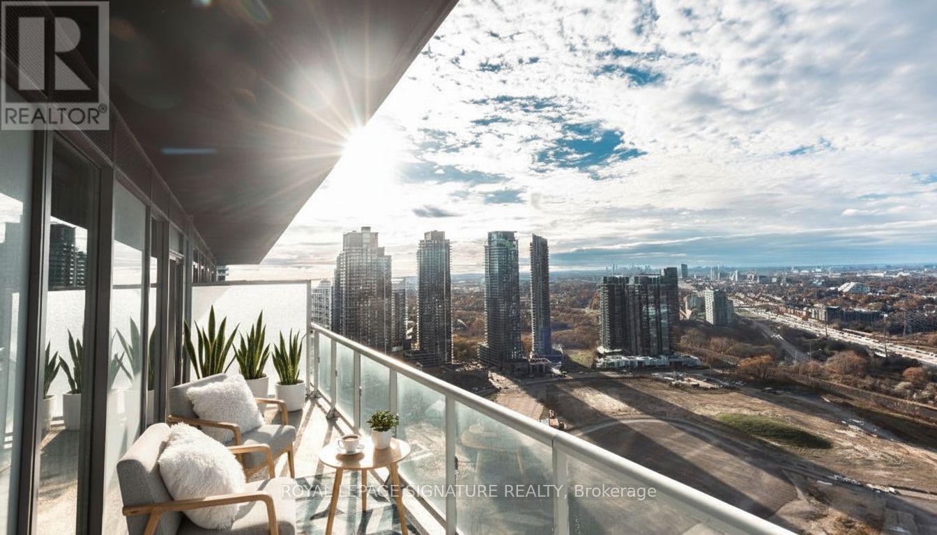 Step into elevated living at Lago at the Waterfront, where this spacious corner suite offers uninterrupted water and skyline views from every room. This bright 2-bedroom layout is flooded with natural light thanks to its desirable southeast exposure as well as north-facing afternoon sun. Enjoy the luxury of a wraparound balcony with multiple access points from the living room as well as both bedrooms - perfect for seamless indoor-outdoor living. The sleek, modern kitchen is equipped with quartz countertops and stainless steel appliances, flowing effortlessly into an open-concept living and dining space designed for everyday comfort and effortless entertaining. Enjoy breathtaking downtown, CN Tower, lake, and cityscape views right from your living room. The primary suite features a large walk-in closet and direct balcony access. Spacious second bedroom has a large closet and balcony access. Parking & Locker Included. Exceptional Building Amenities include: Indoor Pool, Hot Tub & Sauna, Fully Equipped Fitness Centre, Party Room & Guest Suites, Outdoor BBQ Terrace, Dog Wash Station & Car Wash, 24-Hour Concierge & Ample Visitor Parking. Located in the sought-after Humber Bay Shores community, you're steps to waterfront parks, scenic trails, local cafés, restaurants, shopping, and transit. This is a rare opportunity to secure a move-in-ready waterfront home with resort-style amenities at a price that offers exceptional value. (id:4555)