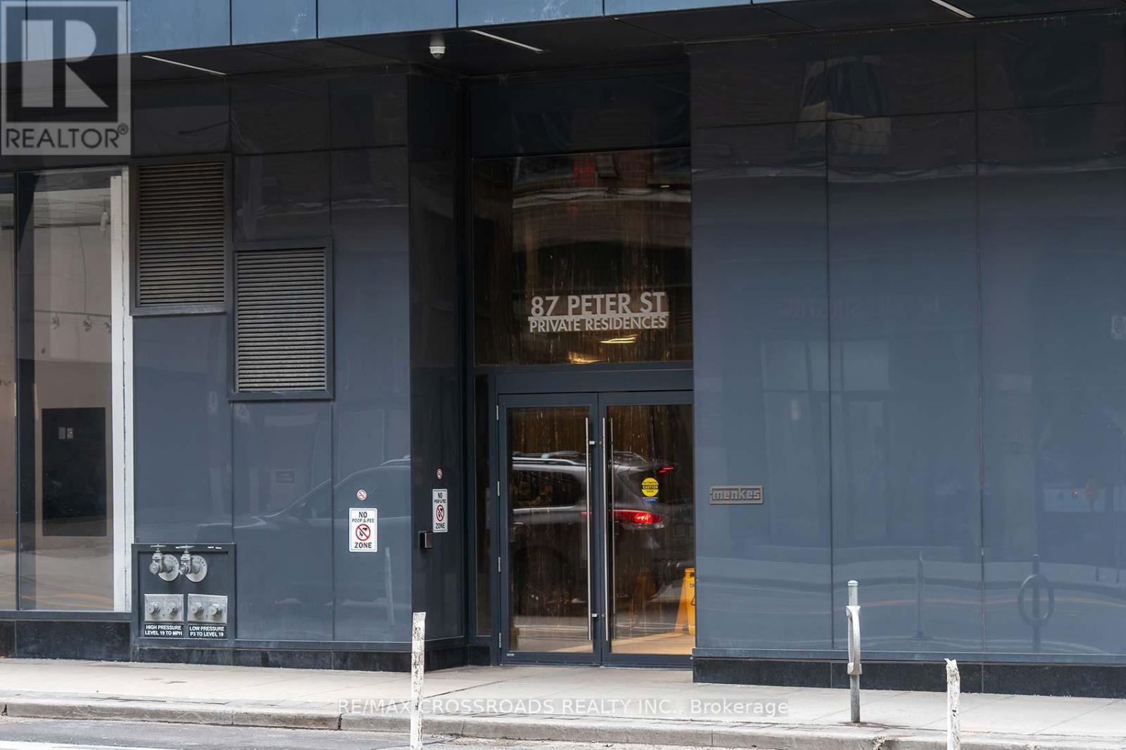 100 Walk score and a 96 bike score! Welcome to 87 Peter Street-an iconic Menkes residence completed in 2018, set in the centre of Toronto's Financial and Entertainment Districts!! This bright and functional 1-bedroom, 1 bathroom suite features a smart open-concept layout, 9' ceilings, floor-to-ceiling windows, and southeast exposure delivering breathtaking city views! Enjoy a large private balcony and low maintenance fees, making this an efficient and comfortable urban home! World-class amenities include a fully equipped fitness centre, yoga studio, spa, sauna, steam room, hot tub, billiards room, movie/media rooms, and 24-hour concierge. Unbeatable location just steps to the CN Tower, Rogers Centre, TIFF, theatres, TTC, subway, shopping, grocery stores, top restaurants and nightlife-with the waterfront minutes away! An ideal opportunity for end-users or investors alike. Location. Lifestyle. Value. Don't miss this exceptional downtown offering! SEE ADDITIONAL REMARKS TO DATA FORM (id:4555)