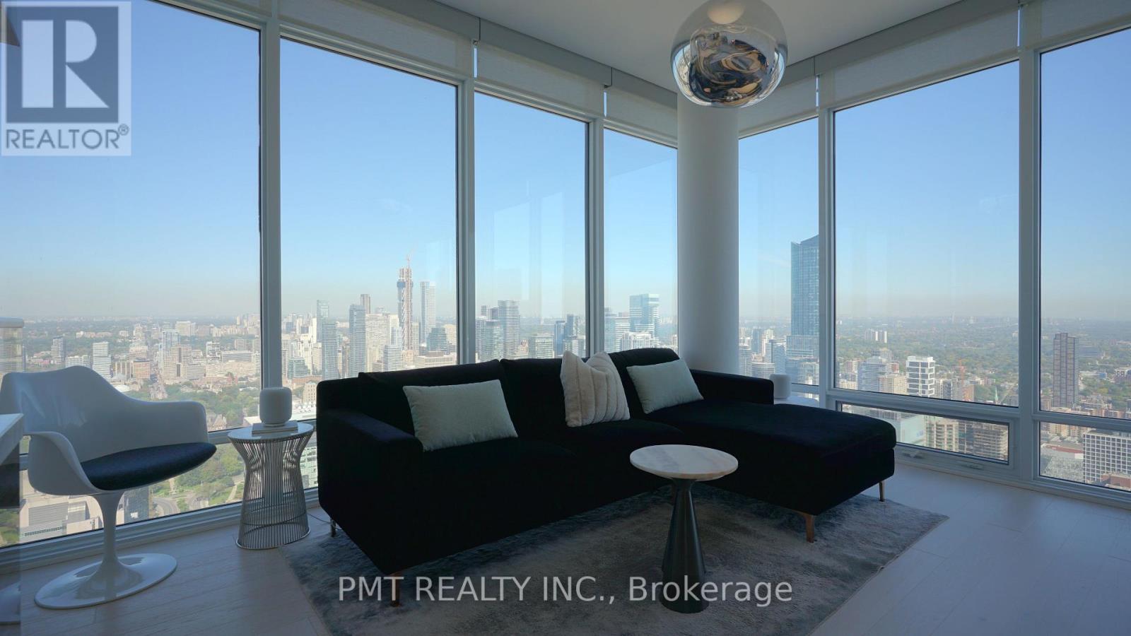 Welcome to Suite 5102 at 488 University Avenue, a rare corner residence in one of Toronto's most iconic towers. This meticulously upgraded 2+1 bed, 2 bath suite spans over 1,000 sq ft plus an oversized 8' deep balcony, with unobstructed 270 views of the city, lake, and Queens Park from the 51st floor. Sophisticated and smart, the home is equipped with Lutron dimmers (remote-ready), motorized roller shades, and custom lighting. Soaring 10 ft ceilings, floor-to-ceiling windows, and architectural concrete pillars elevate the ambiance. The kitchen features ToughSkin-protected quartzite countertops, state-of-the-art appliances, a warming drawer, dual-zone wine fridge, and built-in pantry. The primary bedroom boasts a fully built-out walk-in closet and an exquisite marble-clad ensuite with Kohler digital rain shower, body sprays, freestanding soaker tub, and an in-mirror TV with sound system. The second bedroom includes a custom Murphy bed/desk, while the den serves as a bright workspace or reading nook. Additional highlights include: Kohler fixtures, upgraded toilets, LED-lit mirrors, crown moulding, and premium trim. Enjoy valet parking, concierge, and world-class amenities: fitness centre, pool, rooftop terrace, lounge, and direct indoor access to St. Patrick Station. Steps to UHN hospitals, U of T, Financial & Entertainment Districts, Queen West, and more. A truly elevated lifestyle at one of Toronto's premier addresses. (id:4555)