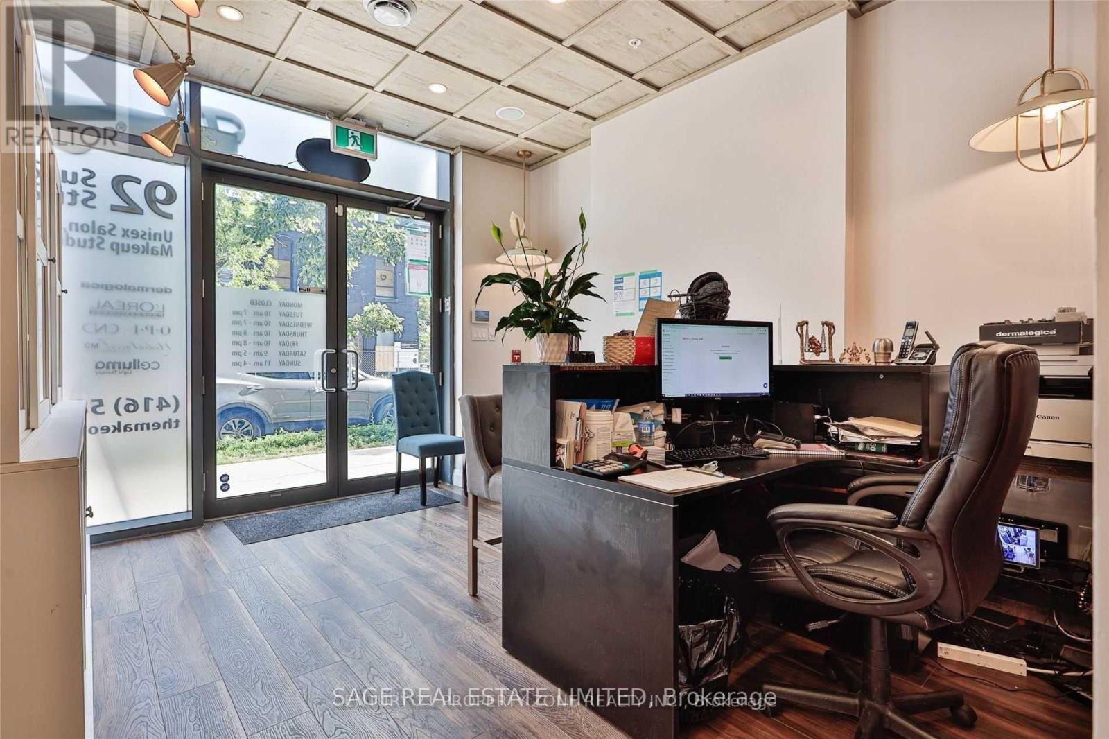 Incredible opportunity to lease a fully built-out commercial space in one of Torontos most dynamic neighbourhoods Little Portugal. Located at 92 Sudbury Street, just steps to both Queen Street West and King Street West, this approx. 1,171 sq ft unit offers exceptional exposure, high pedestrian traffic, and proximity to over 3,000 nearby residential units with more development underway. Formerly operating as a beauty and wellness spa, the space is professionally finished with modern leasehold improvements including a large accessible washroom, three spacious treatment rooms (two with showers), high-end fixtures, plumbing throughout, dropped ceilings, and sleek flooring. Electrical and HVAC systems already in place. The setup is ideal for personal care services, medical aesthetics, retail, wellness, or professional office use. Benefit from super easy access to parking, a direct connection to Liberty Village via the new King-Liberty pedestrian bridge, and proximity to transit, top restaurants, gyms, shops, and lifestyle services. Zoning supports a wide range of commercial uses. Surrounded by energy, density, and growth this turnkey opportunity is ready for immediate occupancy. Don't miss this standout retail space in the heart of a thriving, high-demand Toronto community. (id:4555)