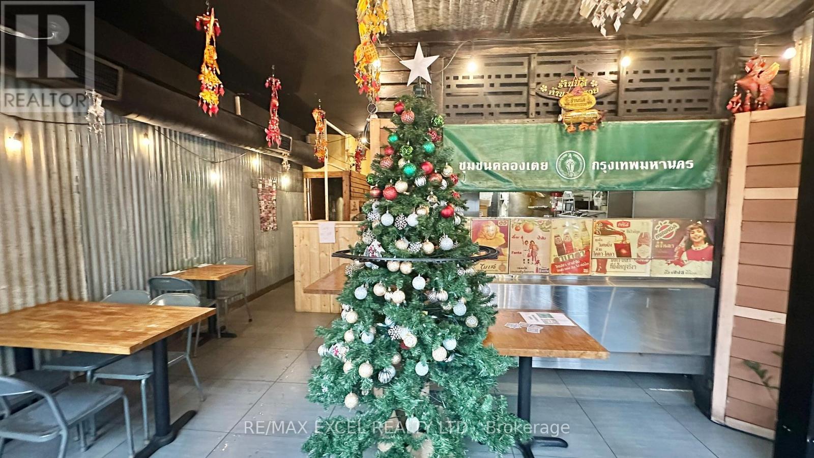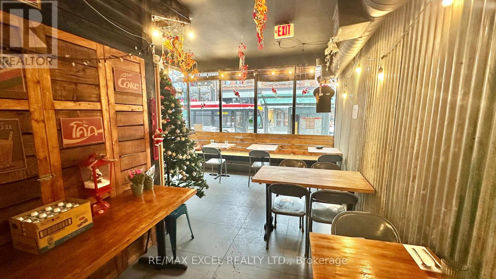 Situated at the intersection of Queen and Bathurst, this 952 sq ft space is currently a Thai restaurant offering dine-in and takeout, with a large basement for storage. Features include 8ft and 4ft kitchen exhaust hoods and a walk-in cooler in the basement. It's a prime spot for delivery and takeout. Rent is $6,723 inclusive of TMI and HST, with a lease running until June 2030 plus a 5-year renewal option. The space can be easily adapted to suit any concept. (id:4555)