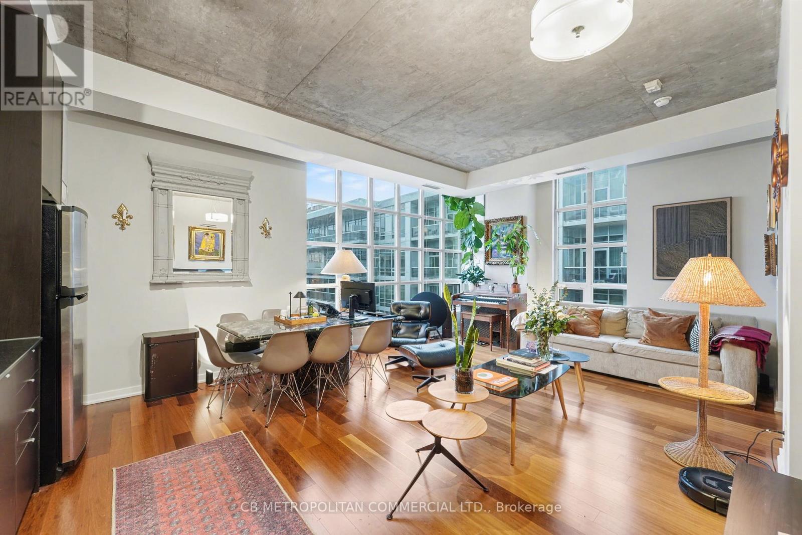 Spacious 1+Den lift at Quad Lofts featuring 10 Ft concrete ceilings, modern finished and bright NW courtyard views. Sleek Kitchen with gas cooktop and ample storage. Open-concept living/dining ideal for entertaining. Generous den perfect for a home office or guest room. Primary bedroom with walk-in closet and sliding barn doors. Parking included. A quiet boutique building steps to Waterworks Food Hall and King West shops & Transit. (id:4555)