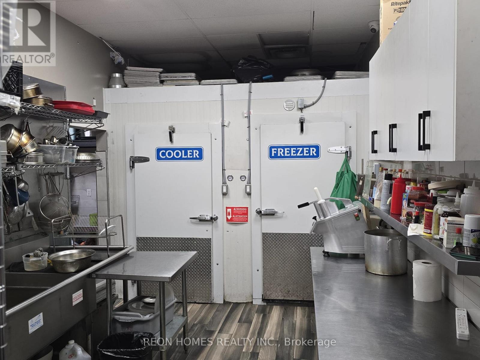 Great location in a busy, multicultural area, perfect for almost any restaurant. The unit comes fully set up with a 20 foot hood, walk in cooler, walk in freezer, and seating for about 30 people. There's plenty of plaza parking, and the street is busy 24/7, so you get steady traffic and strong visibility. It's also easy to apply for a liquor license here if you prefer. This is a rare chance to get a ready-to-go restaurant space. Opportunities like this don't come up often. RENT $4795(TMI,HST,WATER & GARBAGE REMOVAL INCLUDED). 3+5 YEARS OPTION TO RENEW. (id:4555)