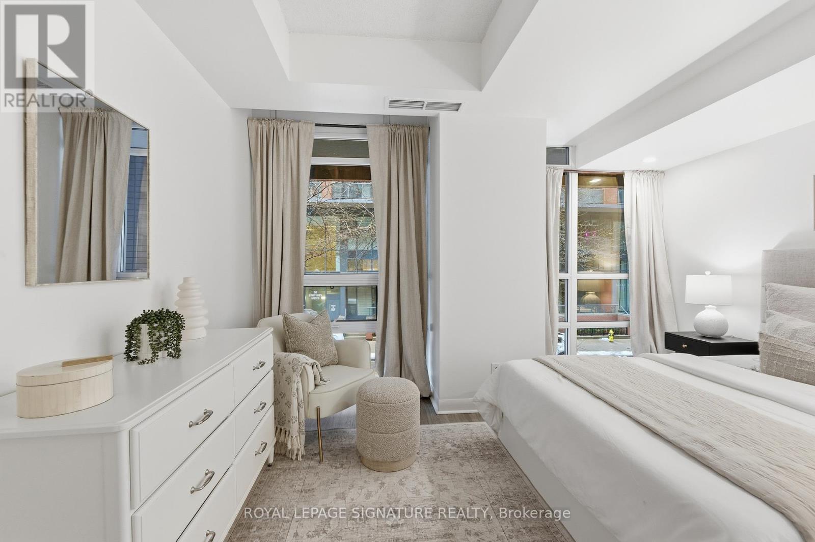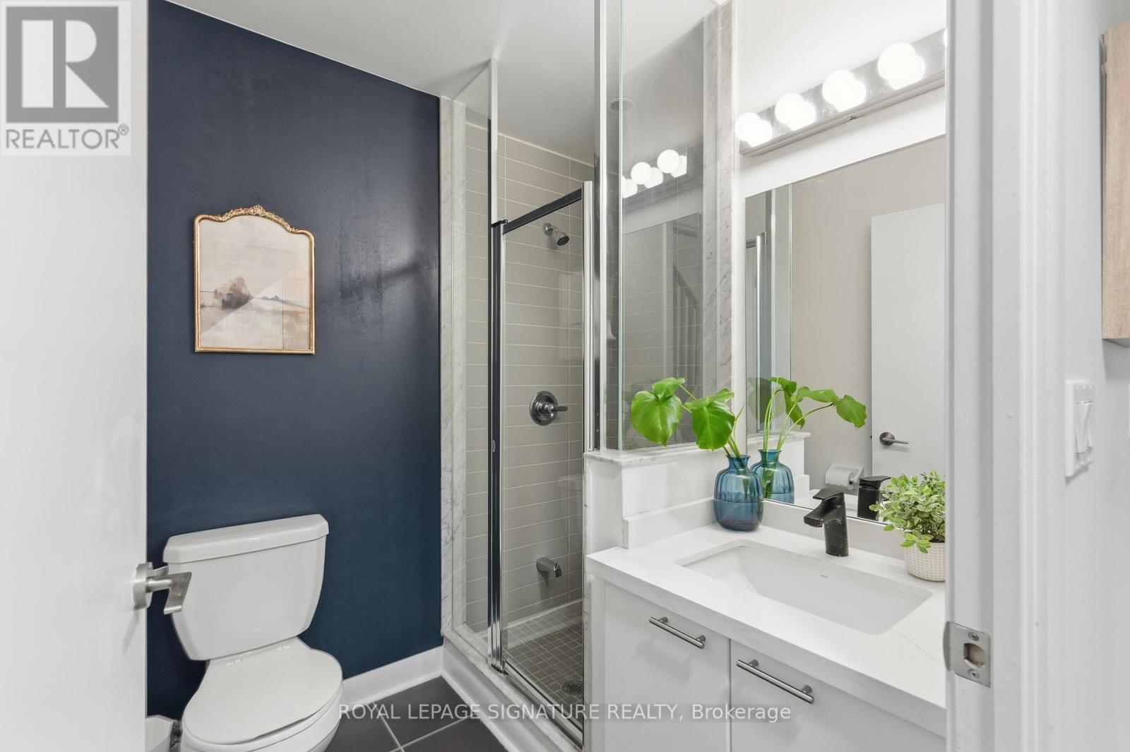 Welcome to this stylish 2-storey, 1-bedroom plus den condo townhouse located in the heart of Toronto. Thoughtfully designed, this bright and modern space offers incredible versatility. The spacious den can easily serve as a second bedroom, home office, or creative workspace. The open-concept main level features high ceilings, sleek flooring, and a contemporary kitchen with stainless steel appliances, and a beautiful centre island perfect for casual dining or entertaining. The living and kitchen area flow seamlessly, offering an inviting atmosphere for relaxation or hosting guests. Upstairs, the primary bedroom provides a comfortable and inviting space, with plenty of natural light and a relaxing atmosphere, perfect for rest and rejuvenation. Large windows throughout both levels fill the home with natural light, enhancing its warm and welcoming feel. The thoughtful design provides convenient washroom access on every level of the home. With an efficient layout, stylish finishes, and thoughtful design elements, this home provides the perfect blend of comfort and urban convenience. Situated steps from restaurants, transit, shopping, cafes, parks, and all that downtown Toronto has to offer, it's an ideal choice for professionals, couples, or anyone looking to enjoy vibrant city living! (id:4555)
