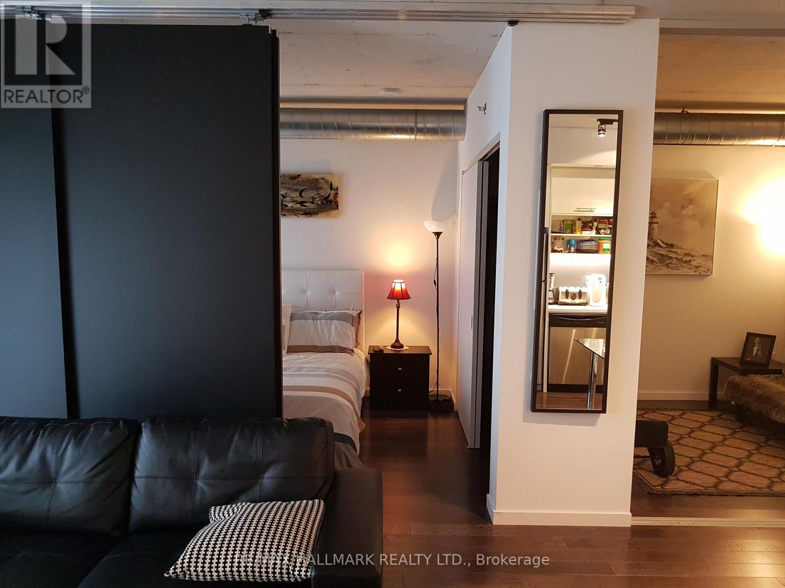 This furnished, Loft Style 1 Bed + Den is available immediately! At 694 square feet, plus an 85 square foot west-facing balcony (overlooks the pool!), this open concept unit feels large and airy. Featuring 9ft ceilings, hardwood floors and stainless steel appliances, this spot is move-in ready. Enjoy exceptional amenities such as a modern fitness centre, yoga and wellness spaces, media and billiards rooms, a party lounge, business centre with Wi-Fi, guest suites, 24-hour concierge, and outdoor perks like a heated lap pool, sauna, rooftop terrace with BBQs, and more. You'll be walking distance to Riverside, Canary + Distillery Districts, St Lawrence Market, 3 streetcar routes, and just a short hop to the Lakeshore/Gardener Expressway. Nature lovers will appreciate the Don River and Corktown Common trails right at your doorstep, offering scenic paths for walking/running/cycling and photography! (id:4555)