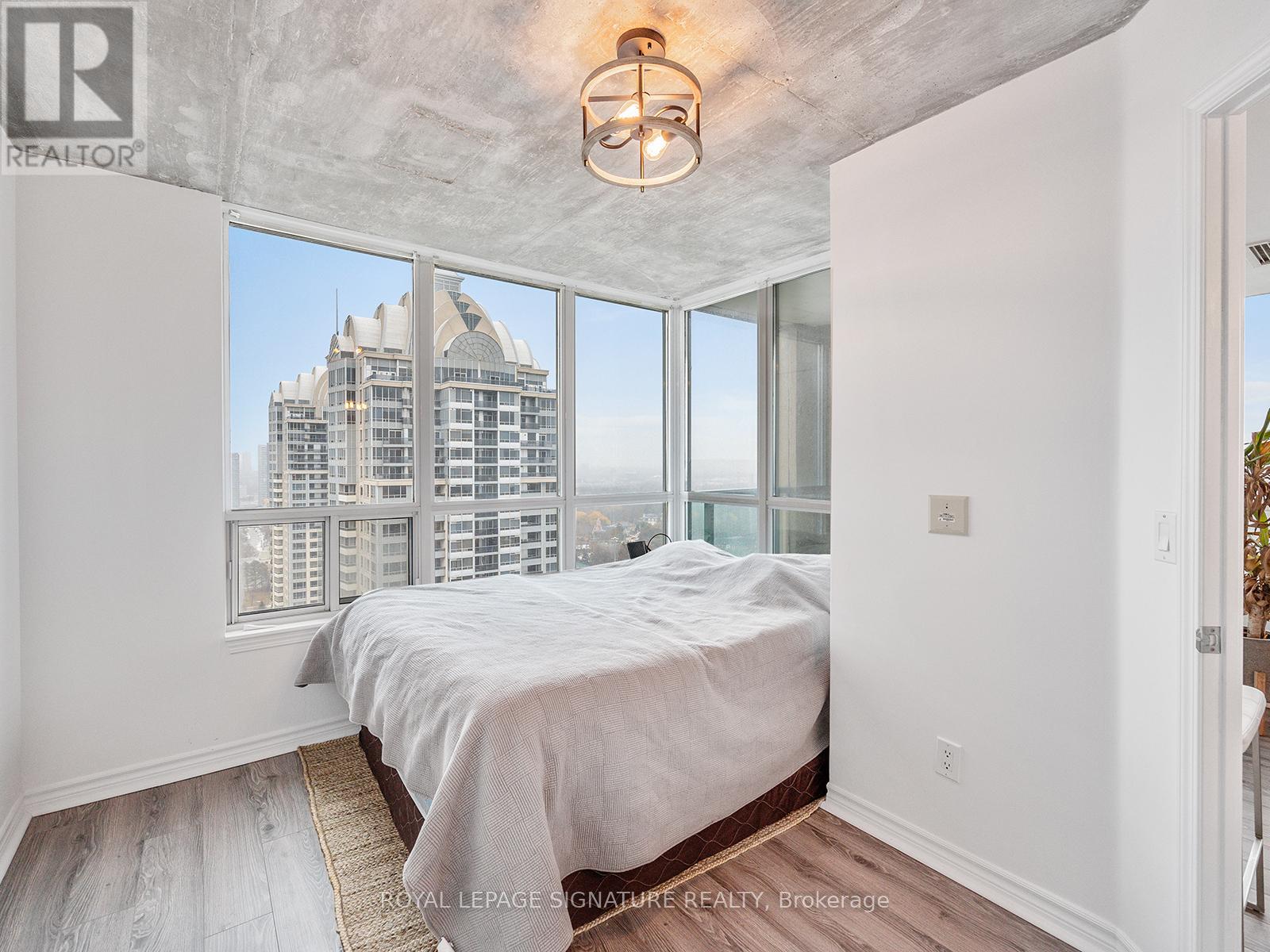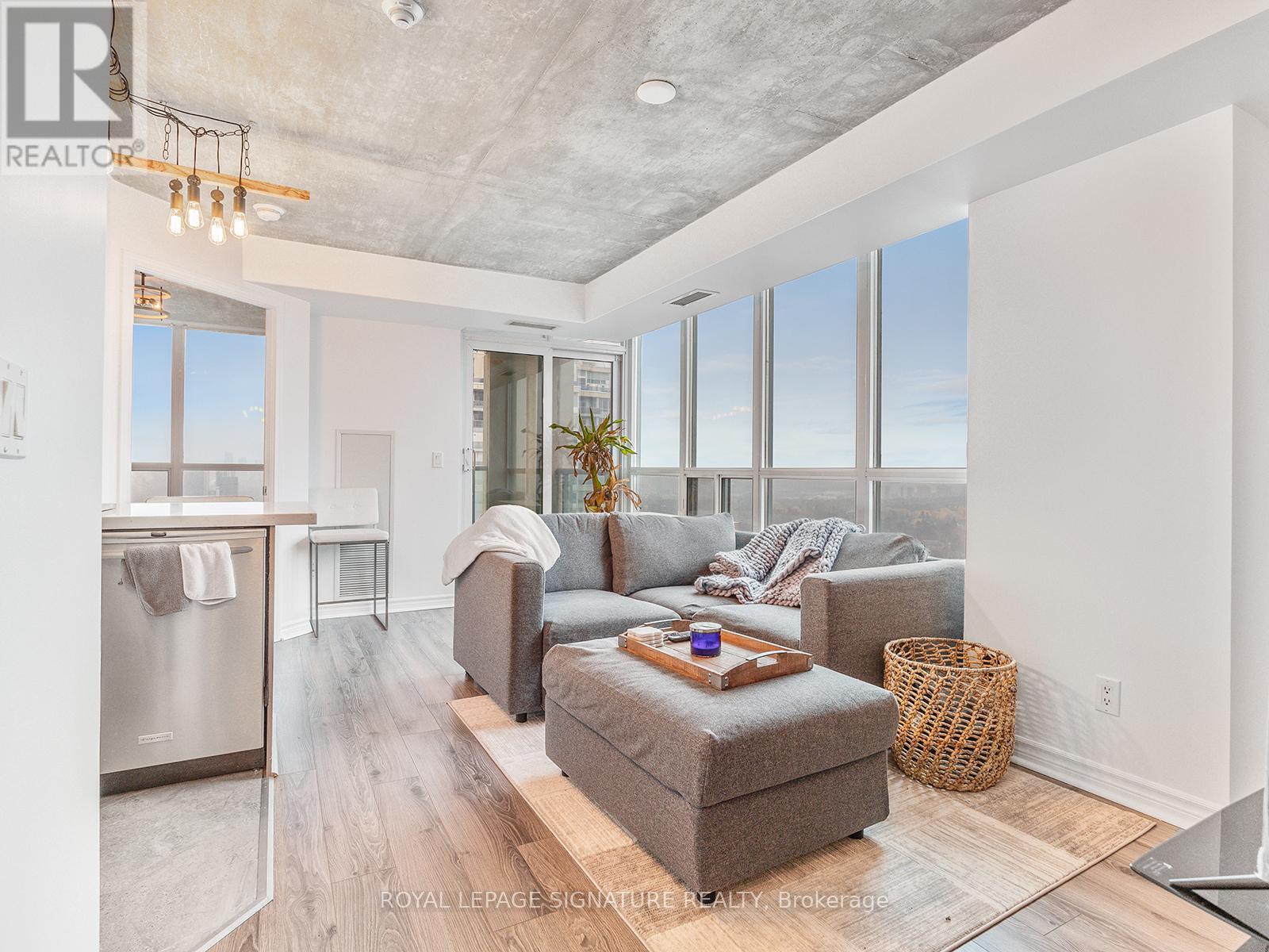 Luxury Bayview Village Condo. This unique, upgraded unit features exposed concrete ceilings, upgraded laminate flooring, granite countertops with a breakfast bar, stainless steel appliances, new light fixtures, large windows, and a walk-out balcony with panoramic city views. Abundant natural light fills this spacious one-bedroom throughout the day. Enjoy the convenience of walking to parks, shops, transit, and everything downtown has to offer. Amenities include a 24-hourconcierge, gym, and more. (id:4555)