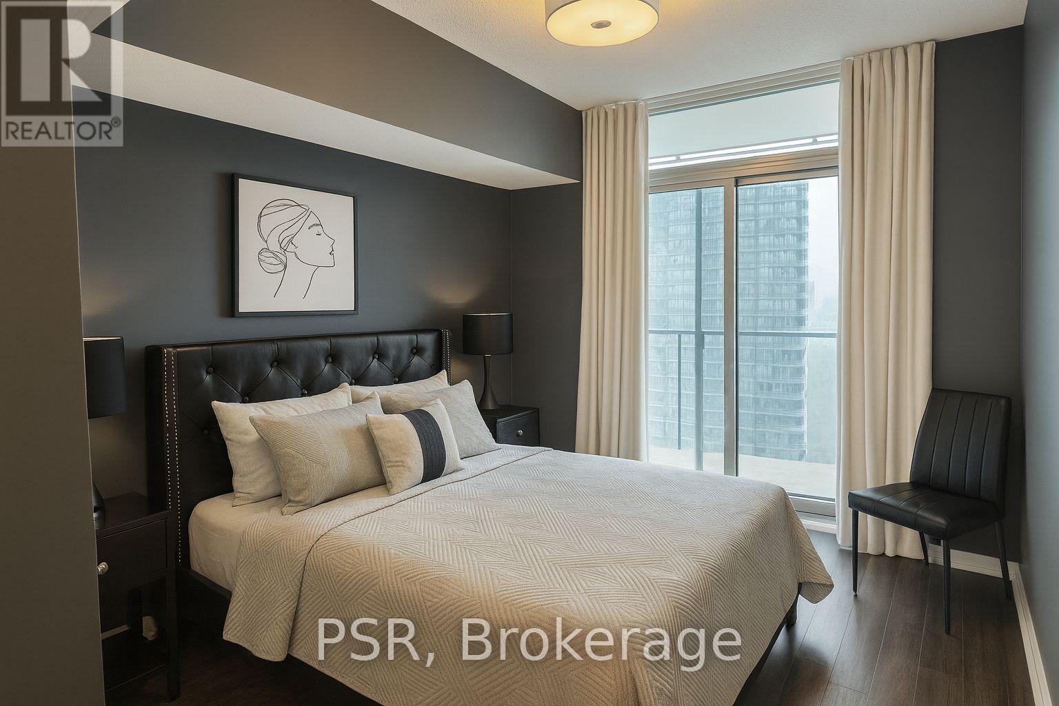 Modern Elegance Meets Lakefront Living at NXT II- Introducing Suite 2104- a rarely offered2+1 bedroom, 2-bathroom corner residence boasting nearly 1,100 sqft of refined, contemporary living framed by sweeping, unobstructed views of Lake Ontario and the Toronto skyline. From the moment you enter, you're greeted by floor-to-ceiling glass, rich hardwood floors, and a bright open-concept layout that effortlessly blends luxury with comfort. The designer kitchen features sleek cabinetry, stone counters, stainless steel appliances, and an airy flow perfect for entertaining. The expansive living and dining areas spill out onto a wraparound balcony, your private front-row seat to Toronto's waterfront, sunrise views, and the twinkling skyline by night. The primary suite offers a modern ensuite bath, and calming lake vistas. The second bedroom is complemented by a custom Murphy bed for flexible use, and the spacious den makes an ideal home office, reading lounge, or creative studio with the same beautiful lake views throughout. NXT II residents enjoy access to resort-inspired amenities: A state-of-the-art fitness centre; Indoor/outdoor swimming pools; Tennis court; Theatre room & upscale party lounge; 24-hour concierge; a Day Care Centre; Guest suites + ample visitor parking. Set just steps from High Park, the lakefront, and the Humber River trails, this location is a dream for anyone who loves nature- while still being minutes from downtown via the Queensway, Gardiner, or the 501 streetcar. Perfect for executives, downsizers, or anyone seeking lifestyle, luxury, and convenience in one of the West End's most prestigious condo communities. Available furnished. A truly breathtaking suite- inside and out. (id:4555)