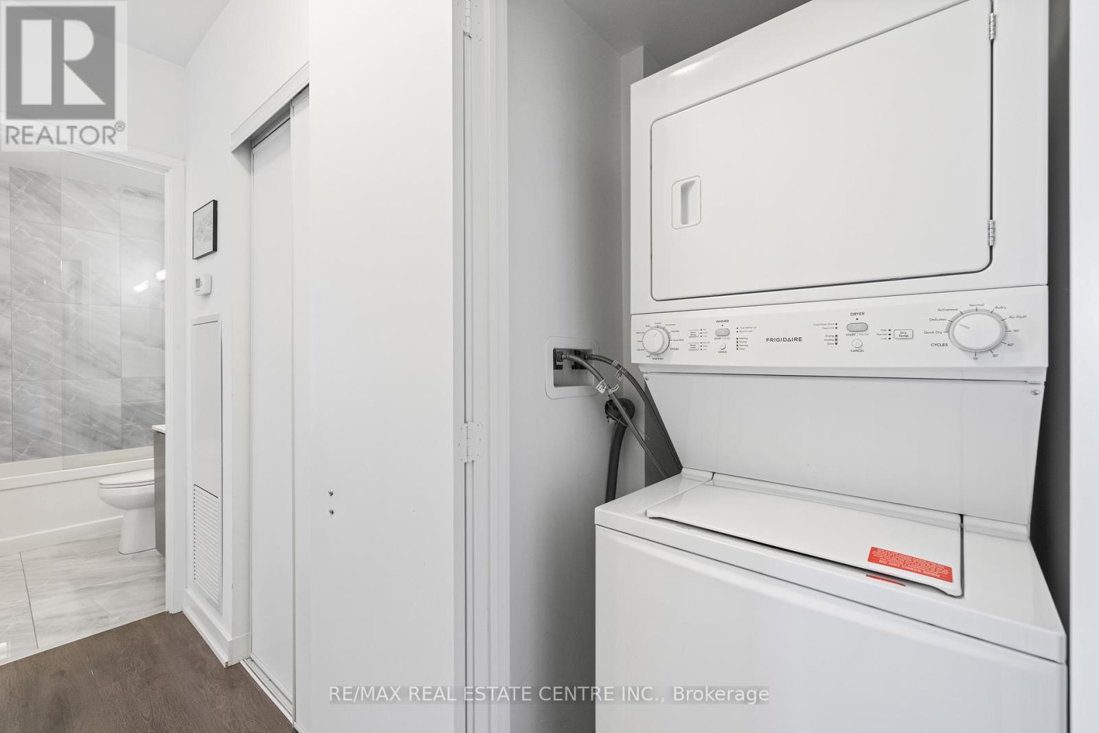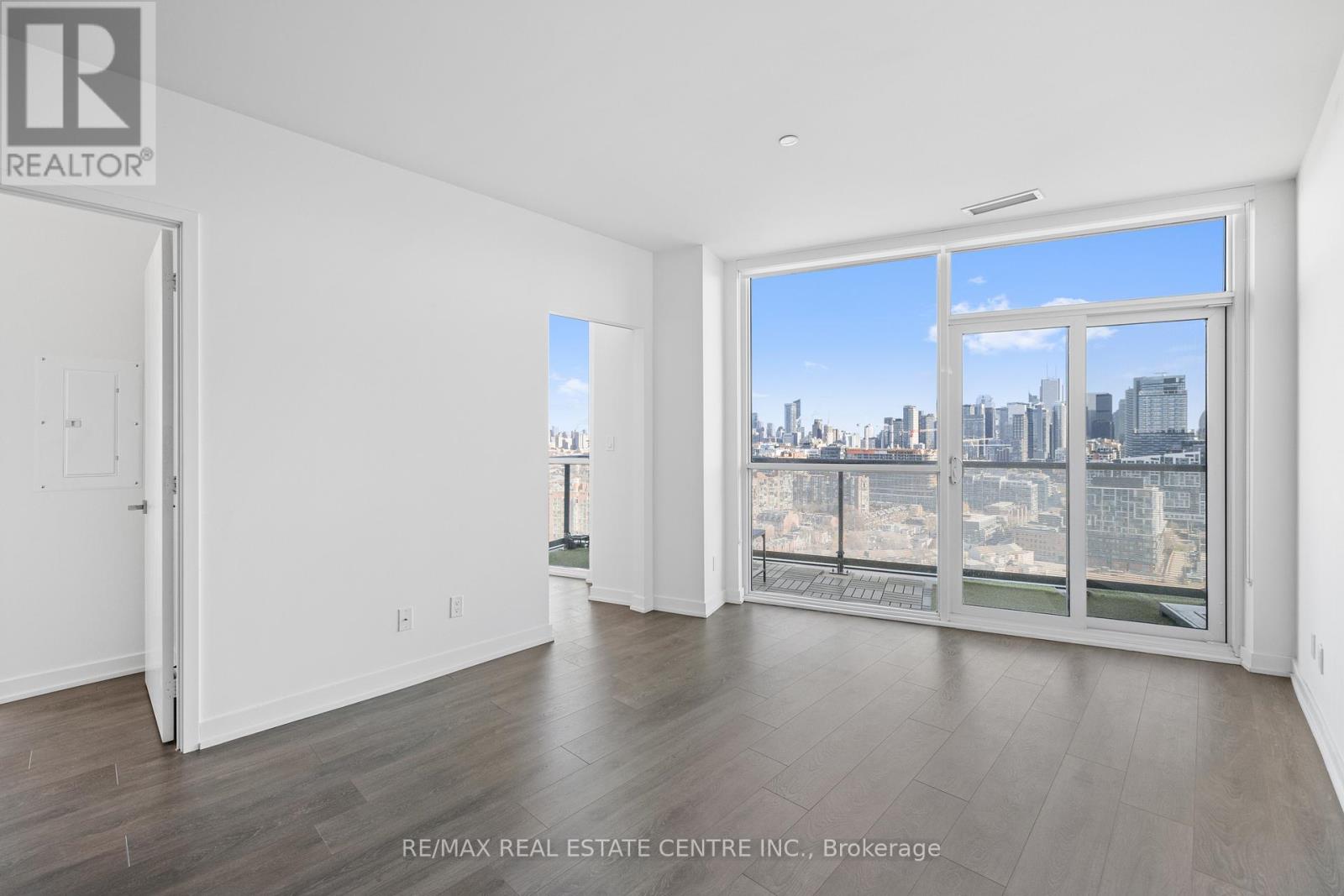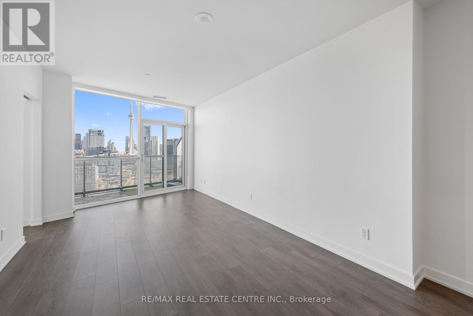Experience elevated downtown living in this exceptional, luxury condo located steps from Liberty Village. This beautifully designed 1 Bedroom + Den residence offers an airy open-concept layout with soaring 9.5' smooth ceilings, high-end finishes, and expansive windows that showcase breathtaking views of the CN Tower, the city skyline, and the lake.The upgraded kitchen features quartz countertops, marble backsplash, and stainless steel appliances. The versatile den serves perfectly as a dedicated office or second bedroom. Enjoy two oversized balconies, in-suite laundry, and the convenience of one parking space and a locker.Indulge in resort-style amenities including a state-of-the-art fitness centre, outdoor pool, theatre, guest suites, 24-hour concierge, and more. Situated next to a 4-acre park and pedestrian bridges, with easy access to TTC, the lake, major roads, and everything downtown has to offer. A rare opportunity not to be missed. (id:4555)