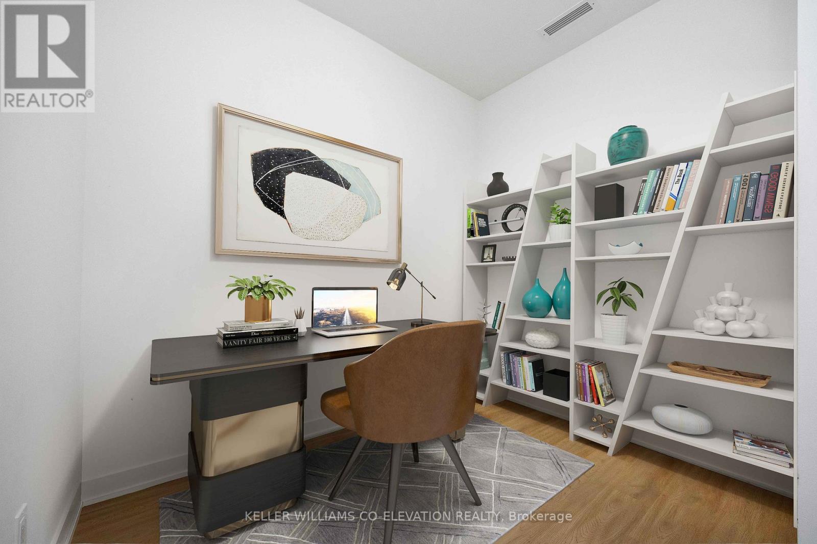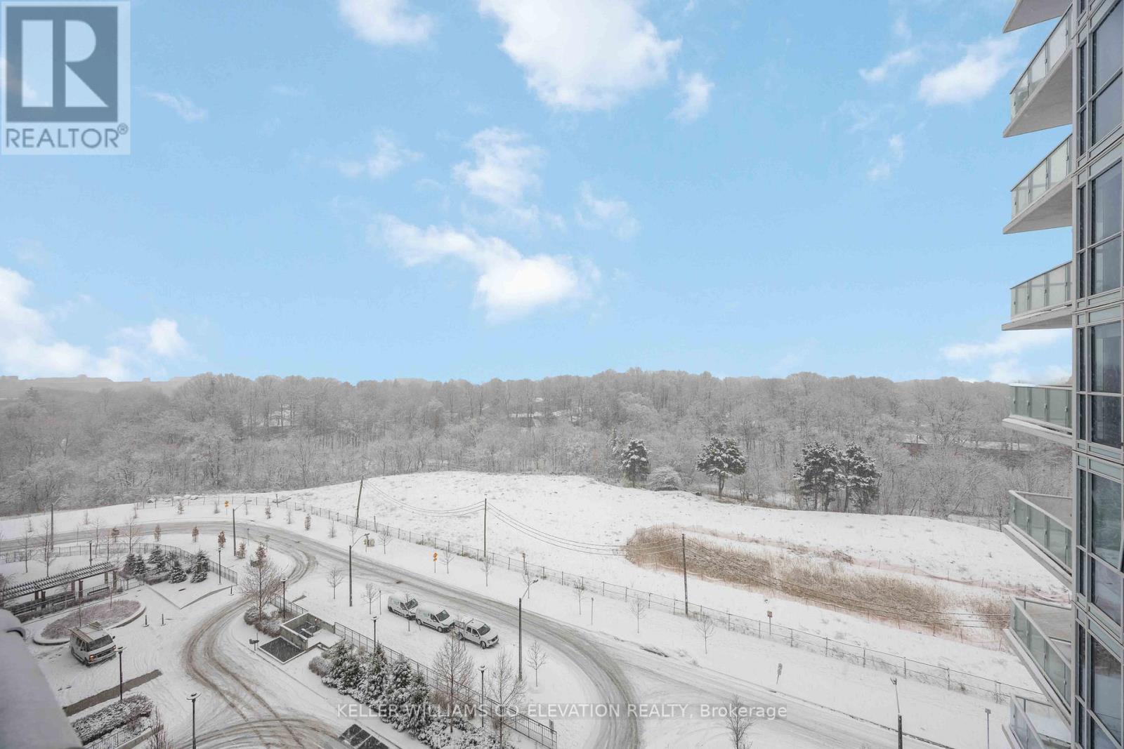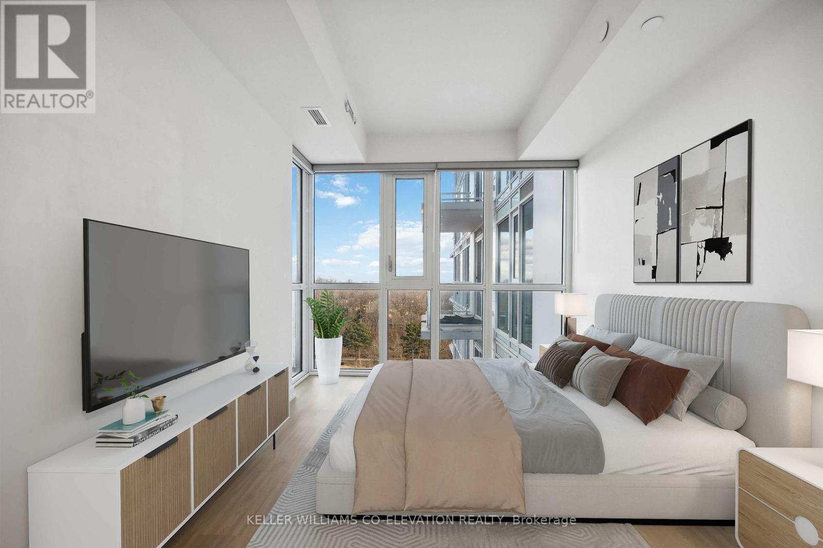 Welcome to Ravine Condos! A stylish modern community surrounded by greenery and exceptional convenience. This beautiful one-bedroom plus den suite offers a bright and functional layout with contemporary finishes throughout. The open concept living and dining area is filled with natural light from its beautiful South facing exposure, providing an inviting space to relax or entertain. The sleek kitchen features full sized stainless steel appliances, quartz countertops, and ample storage. The spacious bedroom incudes a large window and generous closet space, while the separate den is perfect for a home office or guest space. Two well appointed washrooms add comfort and practicality, making this suite ideal for modern living. Freshly painted and upgrades include backsplash, bathroom cabinetry, and lighting. Ravine condos offers a collection of premium amenities including a fitness centre, kids playroom, party room, outdoor terrace on the 13th floor, and 23 hour concierge service for added security. Conveniently located near transit, shopping, parks, and easy access to the DVP, 401 and a TTC stop right at your doorstep. This home combines style, comfort, and outstanding value. A beautiful opportunity to own in a growing and sought after community. Move in and enjoy! One parking spot included. Please note some of the photos are virtually staged. (id:4555)
