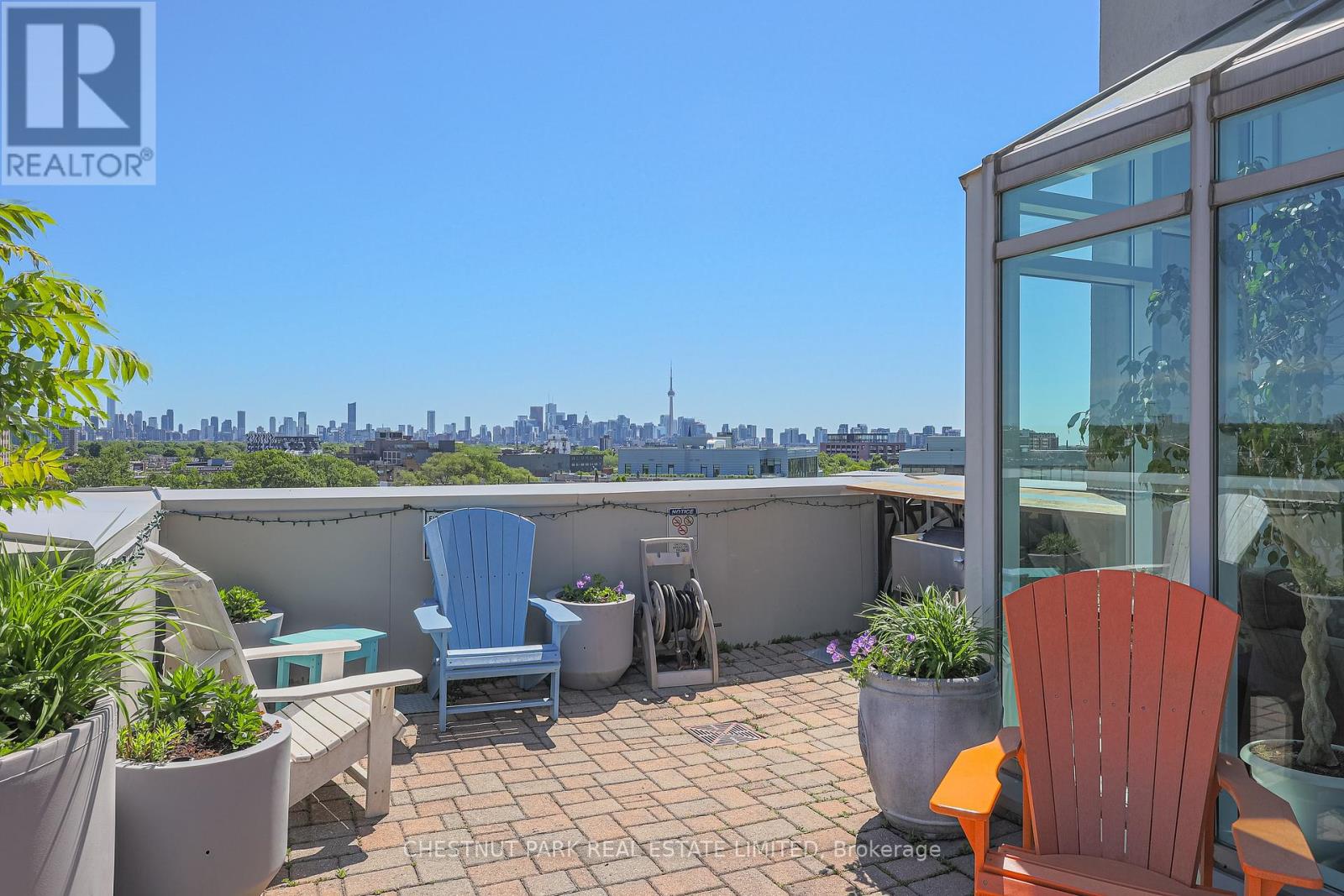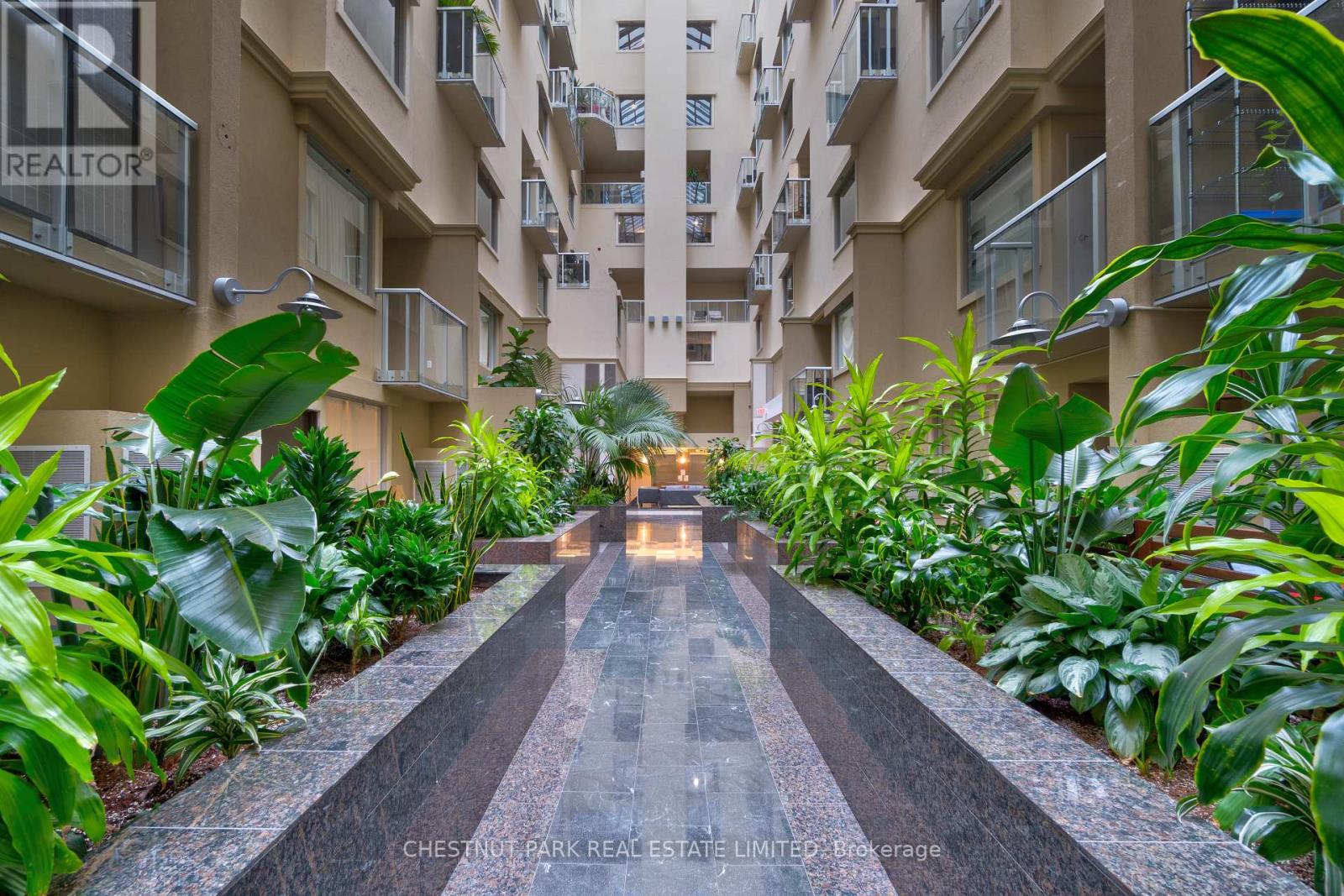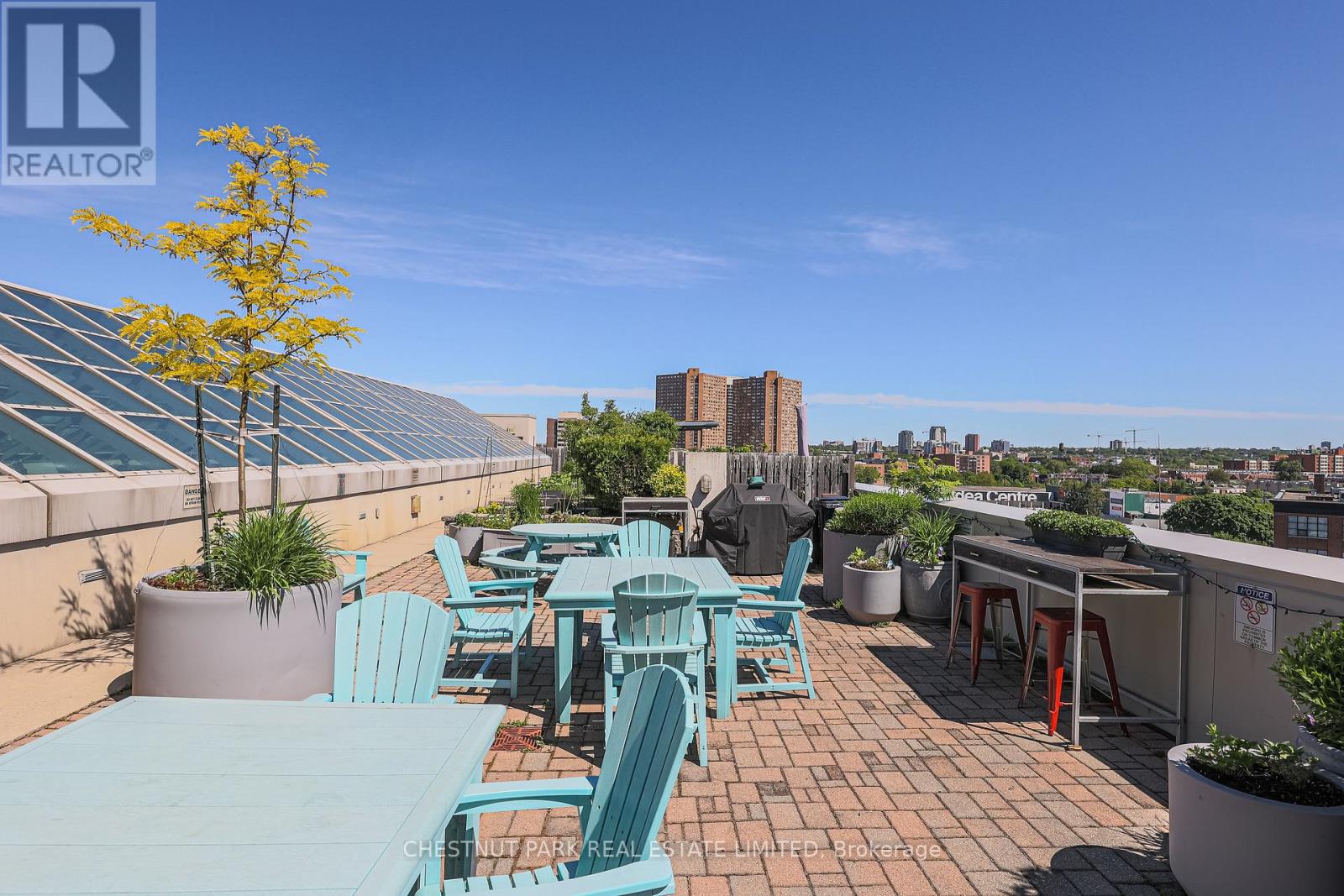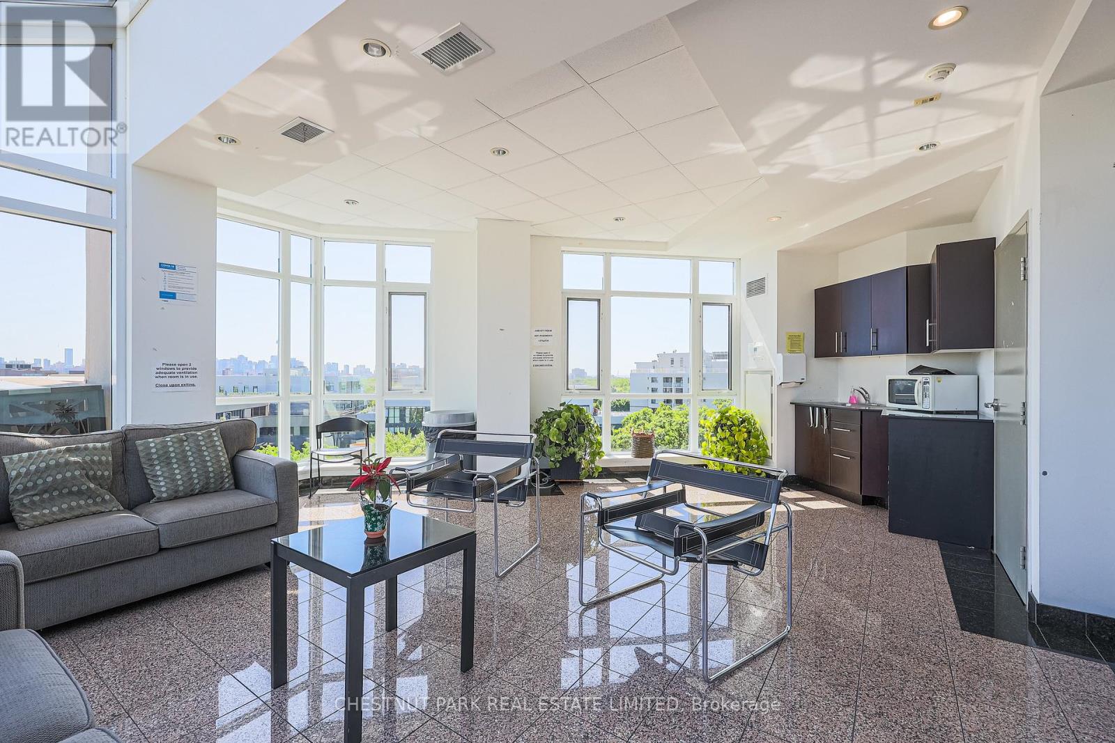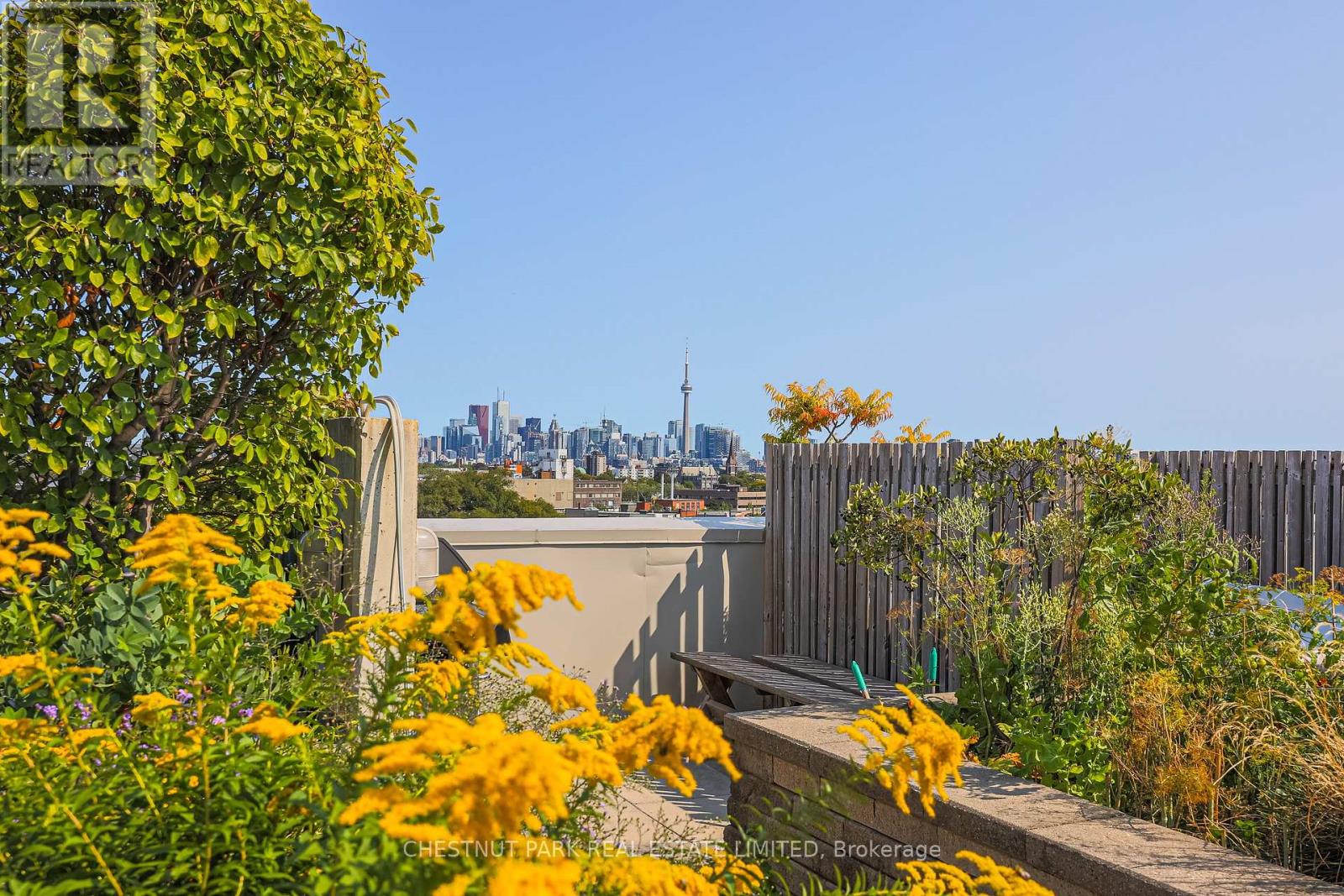 Architecturally striking three-level loft in the coveted High Park Lofts, offering refined urban living in the heart of Roncesvalles Village. This newly renovated 1-bedroom + oversized den residence spans approx 822 sq. ft. and features dramatic 13-ft ceilings with expansive west-facing floor-to-ceiling windows. Enjoy open sky and sunset views framed by the historic church steeple across Roncesvalles - a rare and serene outlook. The open-concept main level showcases a modern kitchen with full-size stainless steel appliances, gas range, granite countertops, generous storage, and a large island with a breakfast bar - ideal for both everyday living and entertaining. The sun-filled living and dining area is anchored by a cozy gas fireplace, creating a warm yet elevated atmosphere. Upgrades include new hardwood flooring, fresh paint, custom blinds, and an ensuite laundry. A standout feature is the substantial den on its own level, complemented by an atrium-style interior balcony overlooking the building's landscaped garden atrium and lobby - an exceptional flex space ideal for a home office, studio, or retreat. Boutique, pet-friendly building with concierge service, rooftop terrace with BBQ, and resident meeting room with WiFi. Steps to Howard Park, Sorauren Park Farmers' Market, High Park, Sunnyside Beaches, TTC subway and streetcar lines, and the UP Express/Bloor GO Station - offering direct access to Union Station or Pearson Airport in approximately 15 minutes. A rare leasing opportunity offering volume, light, and architectural character in one of Toronto's most desirable neighbourhoods. Investor owned and professionally managed, this is a great opportunity for Tenants. Building offers bicycle storage and visitor parking underground. Locker available for additional $50 per month. (id:4555)