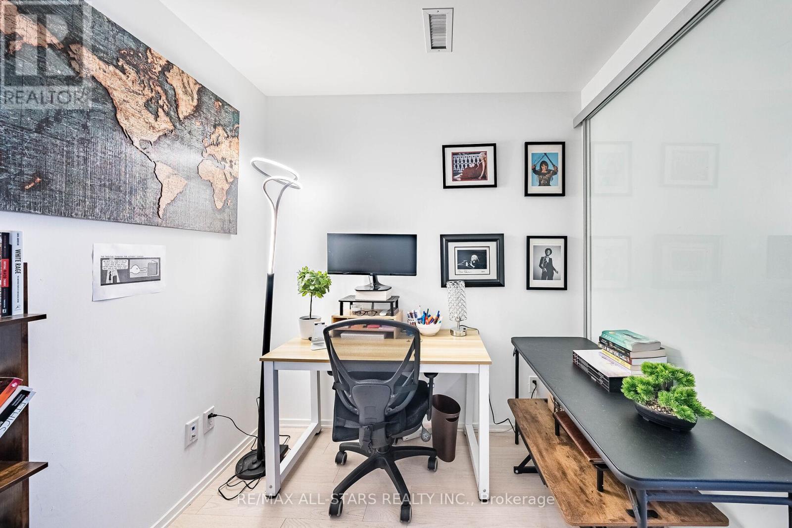 Welcome to Monde Condos. Proudly built by Great Gulf complete with internationally recognized architecture and design. Mode features breathtaking amenities, including a double-height lobby with a living green wall, dedicated amenity space including yoga/Pilates/cardio/kinesis, training and weights studios, hot plunge pool with his and hers saunas and steam and change-rooms with experience showers, kitchen/dinning/bar/lounge, billiards room. Outdoor amenities include an outdoor lounge with indoor/outdoor fireplaces, a cabana deck next to the outdoor infinity pool with views of Lake Ontario. This open concept unit features almost 700 square feet of sophisticated living space. boasting 9 foot ceilings, laminate and porcelain floors throughout, contemporary ungraded kitchen complete with integrated dropped dining table and appliances. The floor to ceiling windows allow for abundance of natural light and unobstructed breathtaking views of Lake Ontario & the City skyline. The perfect place to call home, offering and uncompromised lifestyle, state of the art amenities, walking distance to everything and exceptional value. (id:4555)