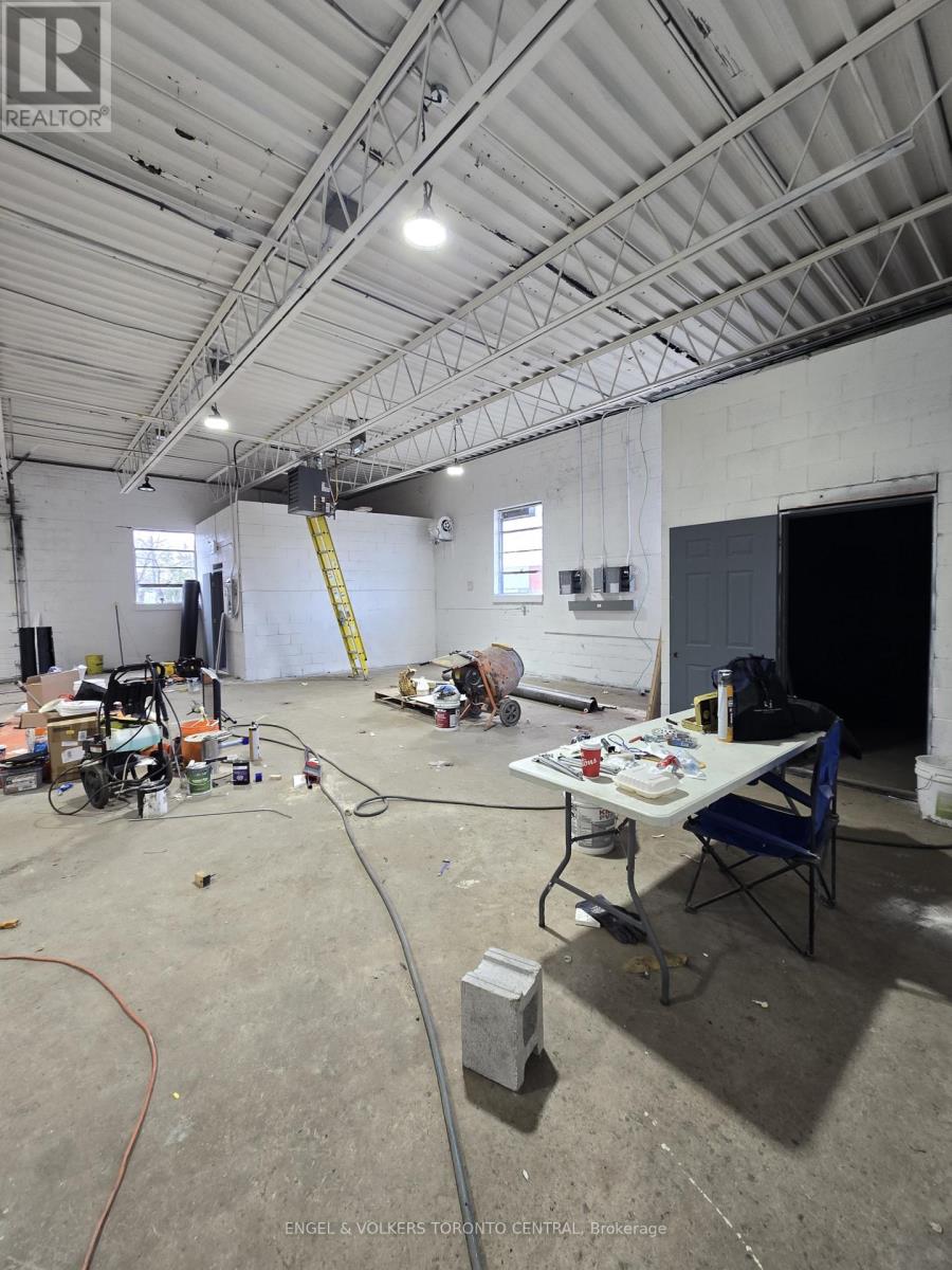 This approximately 8,000 square foot, rare outside storage (back), freestanding industrial building is situated on a prime corner lot in the Golden Mile industrial park. The property features three drive-in level doors and is divided into two separate units, each with its own washroom and office space. These units can be rented either separately or as a whole. The front unit has two drive-in doors, while the rear unit has one drive-in door and access to a gated back parking lot. Recently, the building has been significantly upgraded, making it move-in ready. Mechanic services are not permitted, but auto body work is accepted. (id:4555)