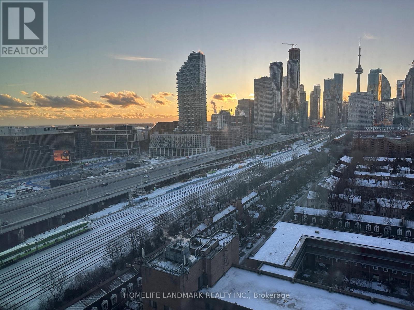 Discover Toronto's timeless heritage charm blended with modern luxury living at the brand-new Goode Condos. Located steps from Toronto's finest restaurants, parks, shops, and transit, this prime Distillery District address offers both convenience and lifestyle.This spacious 540+ sq ft suite features a bright southwest exposure with stunning, unobstructed views of the CN Tower, Lake Ontario, and the full Toronto skyline. Thoughtfully designed with a functional den, ideal for a home office or guest room, and floor-to-ceiling windows that flood the space with natural sunlight.Easy showings with lockbox access. (id:4555)
