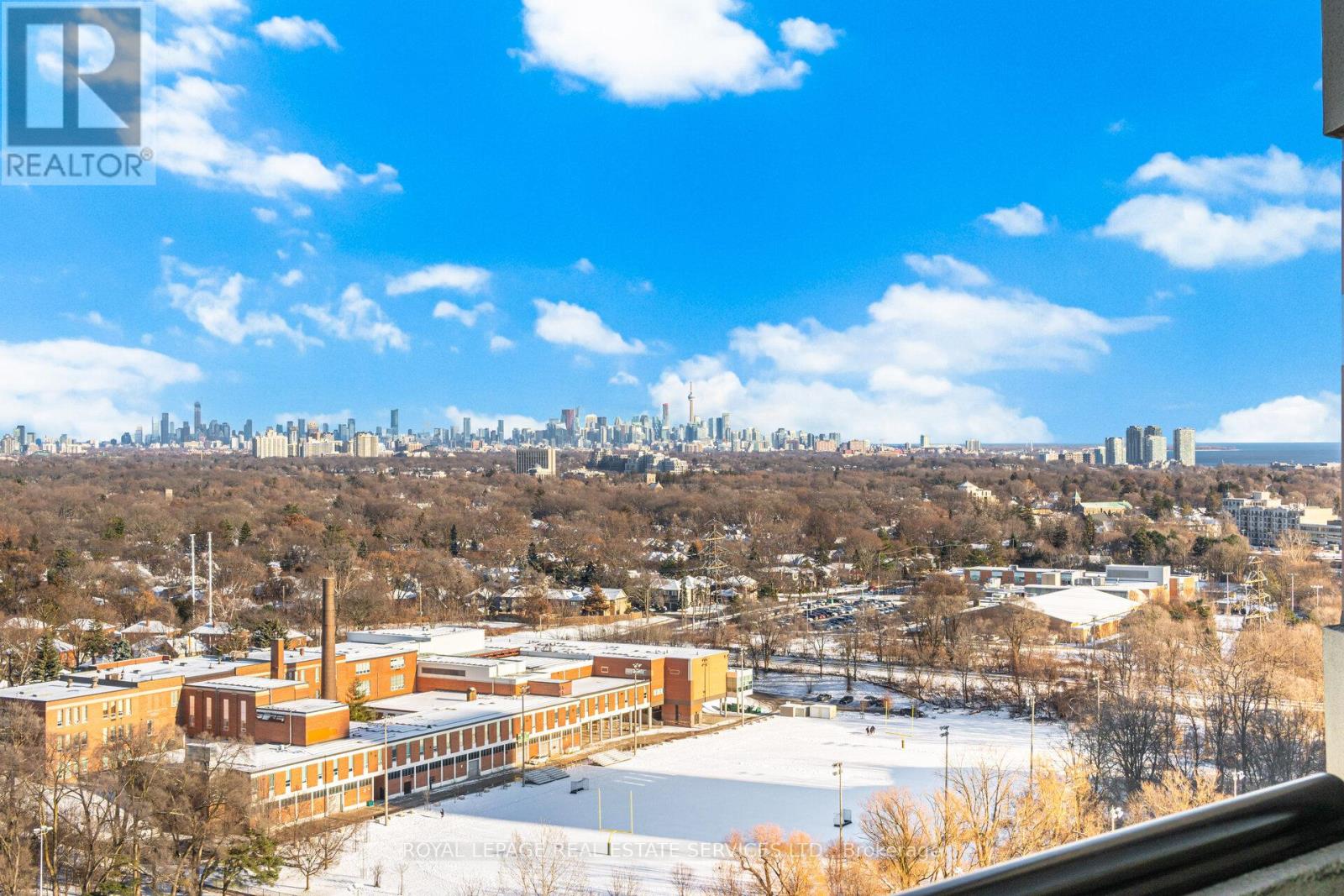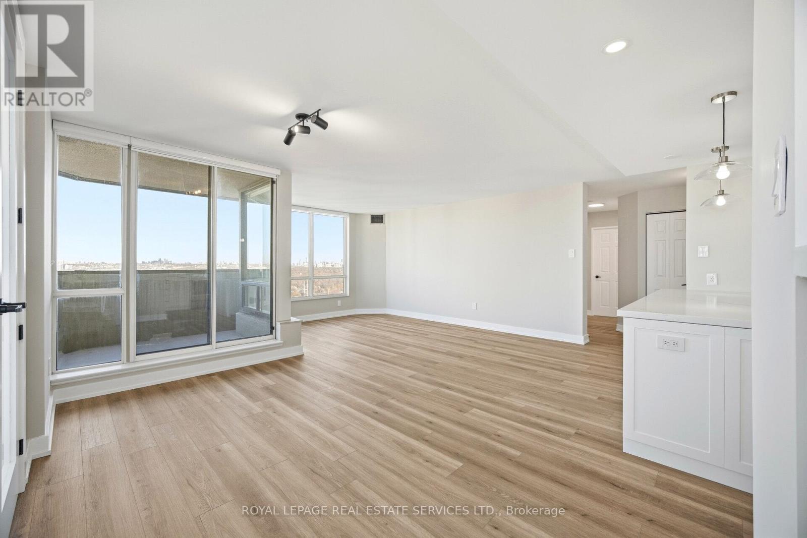 Welcome to Barclay Terrace, one of Etobicoke's premier residences at Islington and Dundas. This newly renovated suite offers unobstructed views from northwest to northeast, capturing Islington Golf Course, city skyline and CN Tower. One of the few units with a balcony, it features an open-concept kitchen with breakfast bar, a versatile den ideal for a home office, gym, or guest room, and window coverings throughout including motorized blinds in the living and dining areas. Enjoy exceptional building amenities including indoor pool, tennis and squash courts, party room, concierge, and beautifully landscaped grounds-all just steps to transit and a short walk to the Islington Subway. (id:4555)