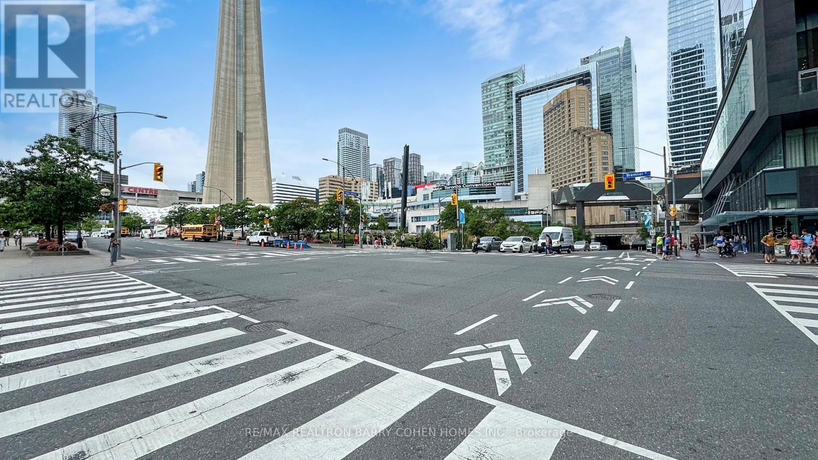 An exceptional corner residence offering unobstructed panoramic views of the CN Tower, Lake Ontario, and the city skyline. This 2-bedroom + den, 2-bathroom suite has been impeccably renovated with high-end finishes throughout.Floor-to-ceiling windows in every room fill the space with natural light and showcase stunning west-facing views over Roundhouse Park and the CN Tower. The open-concept living and dining area opens to an expansive balcony, perfect for sunsets and warm-weather entertaining.The modern kitchen features stone countertops and stainless steel appliances. The spacious primary bedroom includes a walk-in closet with custom organizers and a 4-piece ensuite. A generous second bedroom, plus a versatile den ideal as a home office or third bedroom, complete this rare layout.Located in a well-maintained building just steps to the waterfront, restaurants, groceries, Union Station, and the Financial District, with direct PATH access. Parking and locker included! (id:4555)