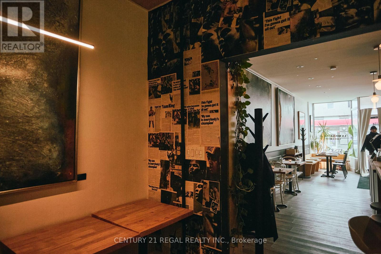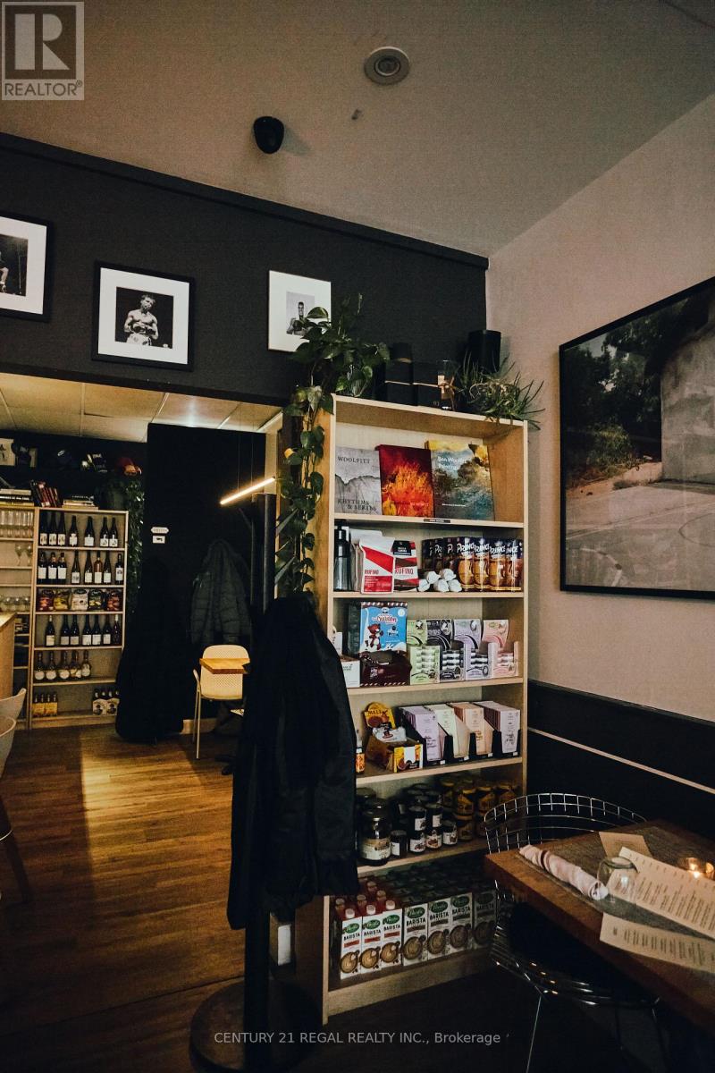 Stunning cafe, bakeshop and restaurant for sale at Dundas and Ossington. 1000 SQ.FT.1,000 square feet of clean, clear space. Recently renovated top to bottom with a functional layout, modern millwork, and a warm, minimalist feel. Could easily be converted to any style of operation. Dine in or grab and go, the efficient setup and design lends the space to high volume and a systematic operation that makes great use of the room. A fully equipped, open concept electric kitchen with modern, efficient, and very well maintained stainless steel appliances. Domestic exhaust (no fire suppression).Ample refrigeration and additional room for storage in the lower level. A high end coffee program and setup in place. A full chattel list available upon request. LLBO in place for 29 guests. This one truly has it all. (id:4555)