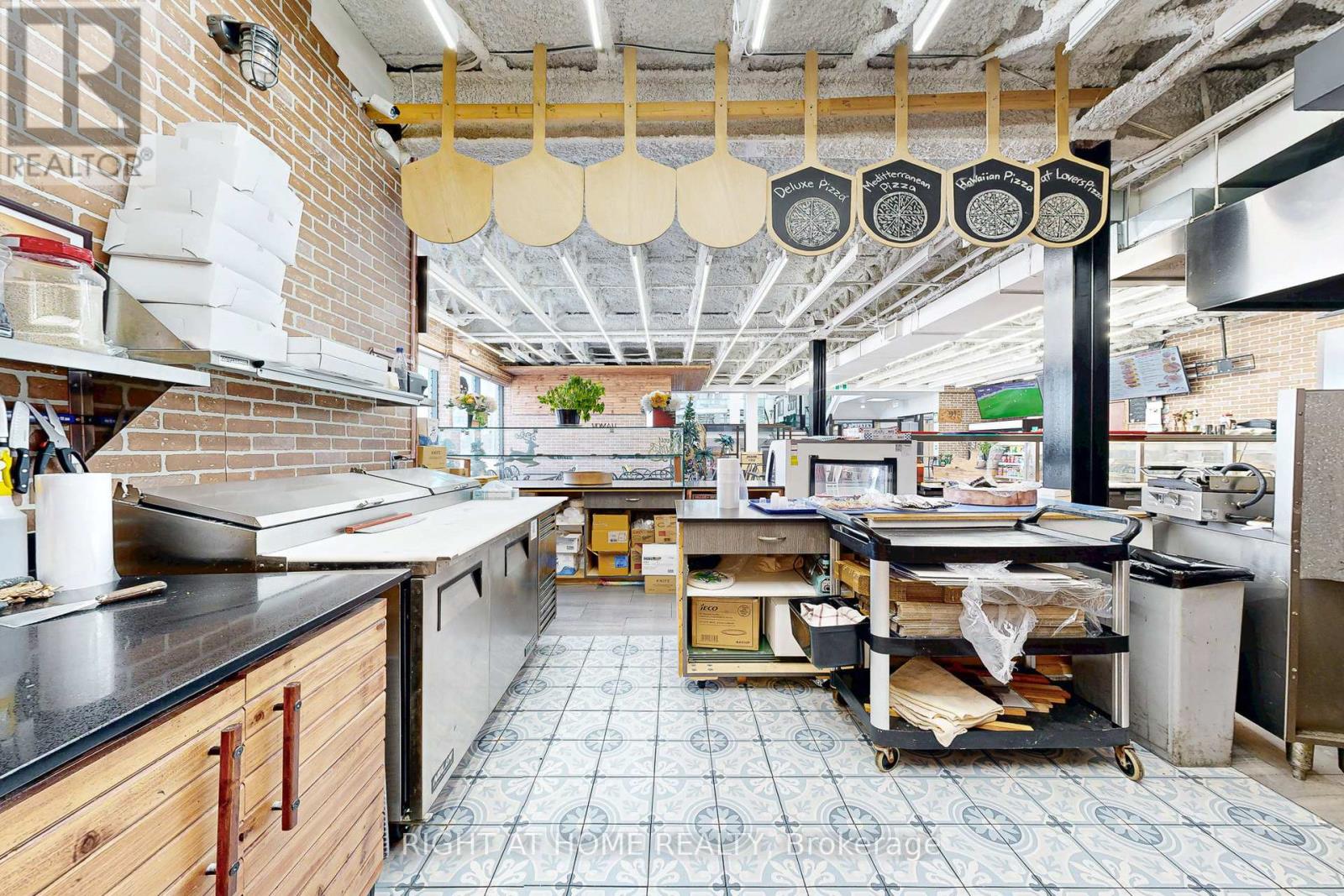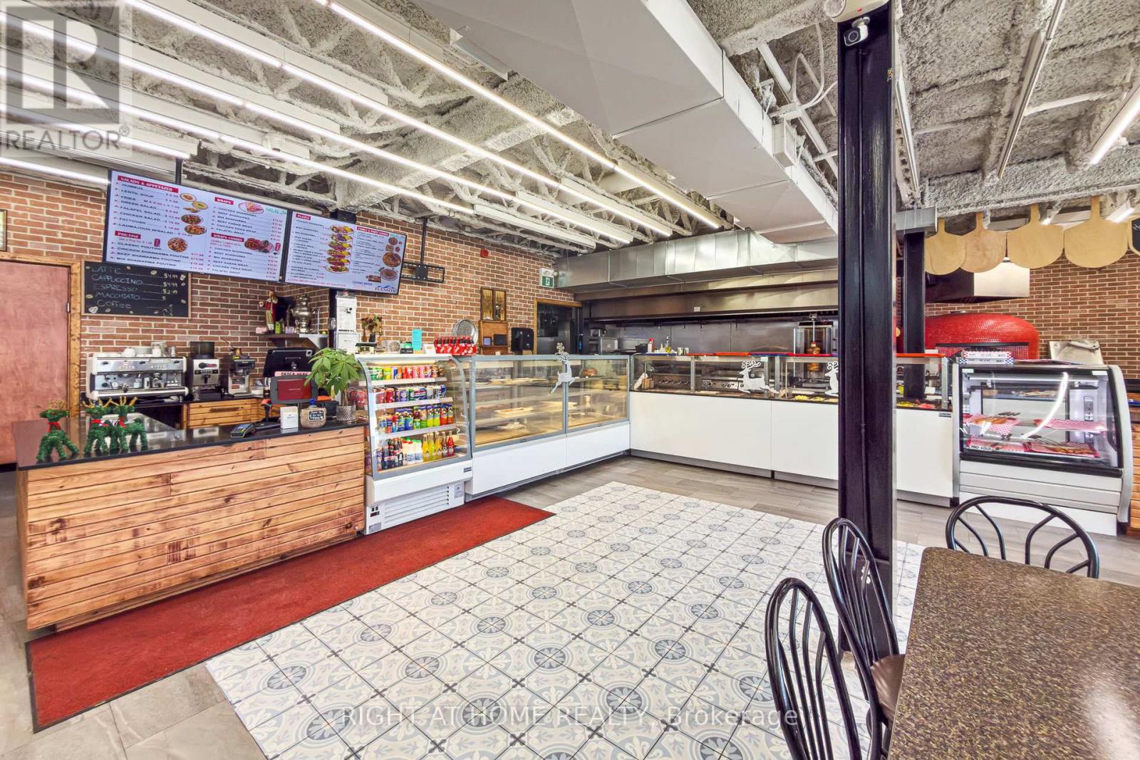 Street-front commercial space across from Yorkdale Shopping Centre. Approx. 2,500 sq ft with existing commercial kitchen build-out, including specialty pizza oven, hood, exhaust, fire suppression, gas, electrical and prep areas installed by prior operator.Previously operated as a restaurant. Space may be suitable for restaurant, pizzeria, catering, commissary or ghost kitchen, take-out and online delivery, or other commercial or experiential uses including virtual reality or entertainment concepts, subject to zoning, permits, and Landlord approval. (id:4555)