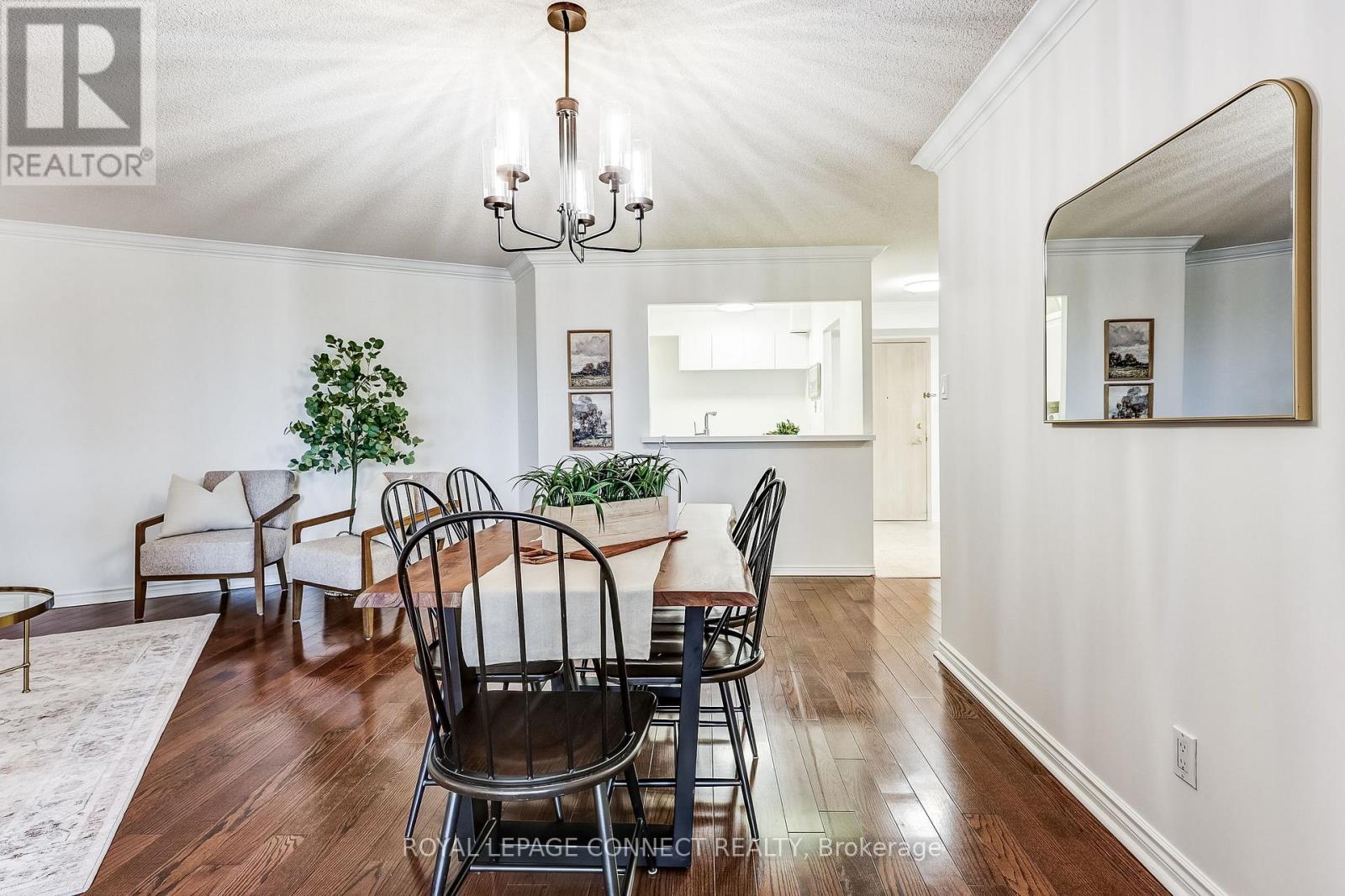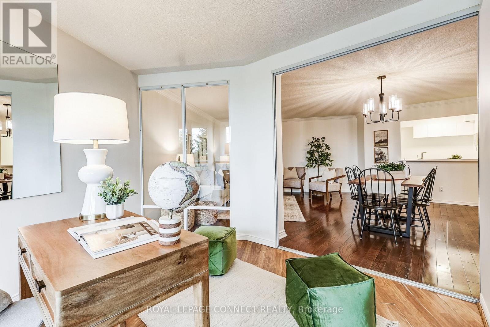 Welcome to Luxury Resort-Style Living at the Prestigious Gates of Guildwood! Experience unmatched comfort and refined elegance in this beautifully updated and freshly painted 1+1 bedroom suite. This thoughtfully designed condo features a spacious eat-in kitchen adorned with stunning quartz countertops, a modern stainless-steel undermount sink, and a breakfast bar, ideal for casual dining or effortless entertaining. The open-concept layout, complemented by gleaming hardwood floors, flows seamlessly into a sunlit den, perfect for a home office, guest room, or additional bedroom. Enjoy direct access to your own private balcony from both the inviting den and generously sized primary bedroom, offering a tranquil escape for morning coffee or evening relaxation. The primary bedroom features ample storage space with his-and-hers closets and a tastefully renovated 3-piece ensuite complete with a walk-in shower. Marked by exceptional value, this suite includes owned tandem parking for two vehicles, emphasizing quality per square foot far superior to newer constructions. Indulge in a truly resort-like lifestyle with world-class amenities, including an indoor pool, whirlpool, gym, squash, pickleball and tennis courts, billiards room, indoor golf chipping nets and outdoor putting green, library room, meeting room and an active calendar of social events. All set within beautifully landscaped award-winning grounds, featuring picturesque gardens and outdoor BBQ patios. Experience worry-free living with all-inclusive maintenance fees covering heat, hydro, water, internet, and cable. Additional offerings include guest suites, a lively party/meeting room, and 24/7 gatehouse security for your peace of mind. Ideally situated just steps away from TTC, GO Transit, serene parks, diverse shopping options, scenic waterfront trails, and the historic Guild Inn Estate, this condo is not merely a residence but a gateway to a lifestyle defined by elegance and convenience! (id:4555)