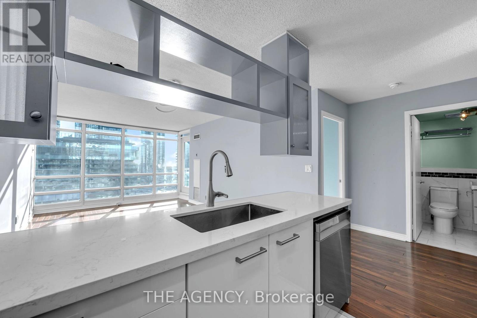 Welcome to this bright and functional 2 bedroom + den, 2 bath unit with a well designed layout and consistent natural light throughout. Maintenance fees include all utilities except Internet/TV. The building offers extensive amenities such as a gym, indoor pool, spa facilities, basketball and multi-sport court, BBQ area, concierge, guest suites, and EV chargers. Located in a highly convenient downtown area steps to The Well, TTC streetcars and within walking distance to Union Station, St. Andrew Station, Rogers Centre, CN Tower, the Financial and Entertainment Districts, waterfront paths, grocery stores, and parks. On-site retail and dining are available, with The Well directly across the street. This unit provides exceptional convenience and comfort, making it ideal for families, professionals, or students. (id:4555)