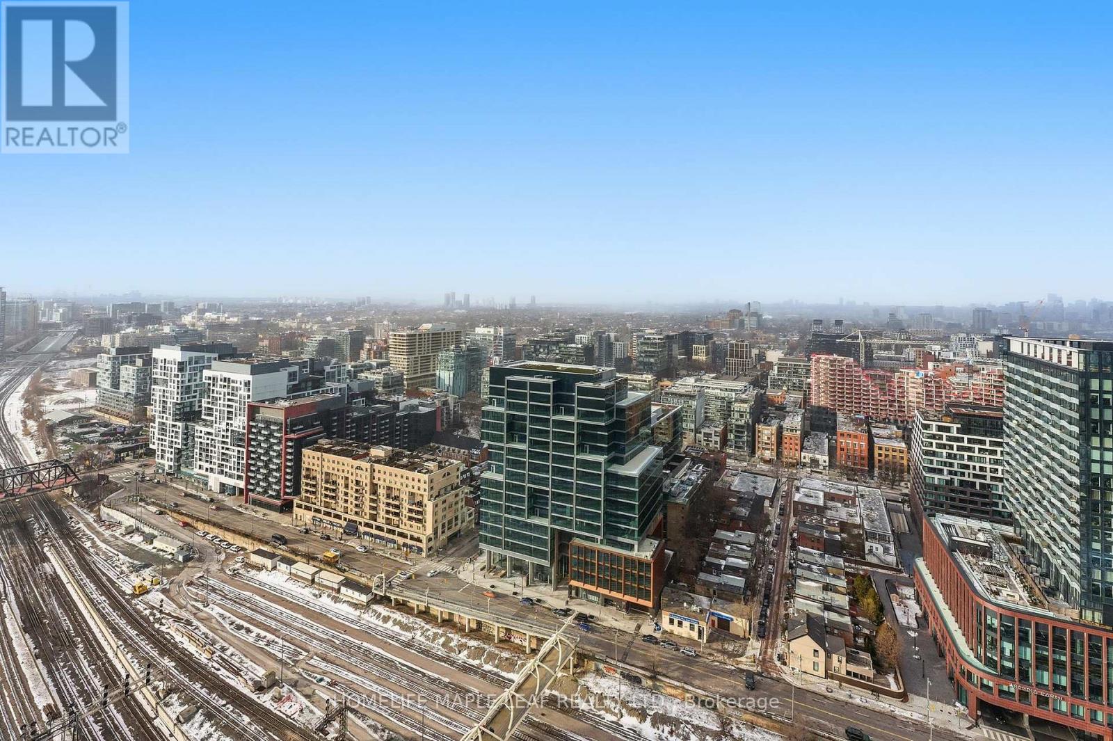Experience Elevated Urban Living At Grand Parade In CityPlace. This Bright And Spacious 39th-Floor Suite Features 9 Ft Ceilings And Breathtaking, Unobstructed City Views. The Layout Includes A Large, Functional Den Perfect For A Home Office Or Guest Space. The Modern Kitchen Is Equipped With Premium Built-In Appliances, An Integrated Fridge, And Plenty of Pantry Storage. Notable Upgrades Include A Compact LG Washer (2022) And An LG Vent less Dryer (2023). Value-Added Features Include A Large Storage Locker And P1 Parking Located Conveniently Close To The Entrance And Elevator. Building Amenities: 24 Hr Concierge, Indoor Pool, Hot Tub, Steam Room, Squash Courts, Hot Yoga Studio, Theatre Room, Pet Spa, Kids' Play Area, And A terrace With BBQ Access. Unbeatable Location: Steps From The Well, Rogers Centre, CN Tower, And the Waterfront. Walk to Sobeys, Shopper's Drug Mart, LCBO, Schools, And the Library. Close Access To The TTC and Easy Access To The Highway. (id:4555)