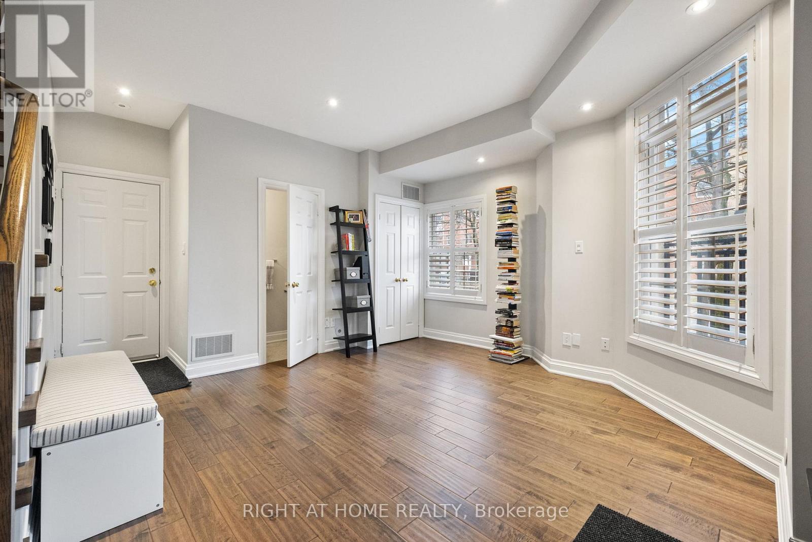 Welcome home to this tastefully renovated executive end-unit townhouse in the heart of New Toronto. Offering 3 sun-filled levels and approximately 1,488 sq. ft. of beautifully finished living space, this Daniels-built home blends modern design with urban convenience. The open-concept main floor features a bright living and dining area, pot lights, and a modern kitchen with stainless steel appliances, and walkout to a spacious private deck - perfect for entertaining or relaxing outdoors. The versatile ground-level space offers the ideal home office, studio, or family room with direct interior access to the double car garage. Upstairs, two generous bedrooms, each feature private bathrooms and ample closet space, creating a comfortable private retreat. Thoughtfully updated with quality materials, engineered flooring and no carpet throughout. This home includes built-in book shelving on the second floor, California shutters, central air, central vacuum, Cat 5 internet wiring, and garage shelving for extra storage. Located near Humber College, waterfront trails, parks, schools, cafés, and shops, with 24-hour streetcar service at your doorstep and easy access to the Gardiner, QEW, and Pearson Airport. This bright corner townhouse offers the perfect blend of sophistication, functionality, and location - ideal for professionals seeking an executive lifestyle near the lake. (id:4555)