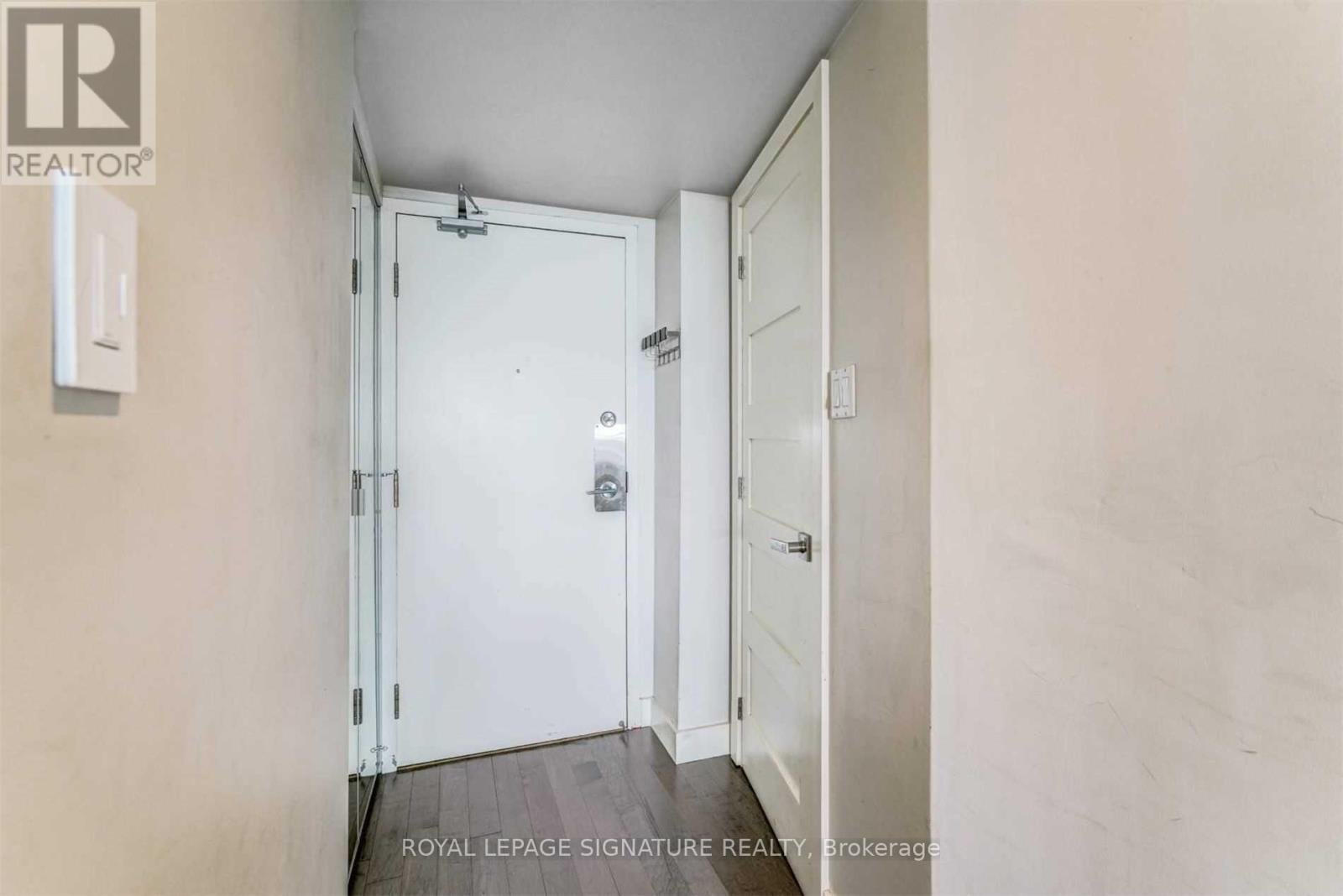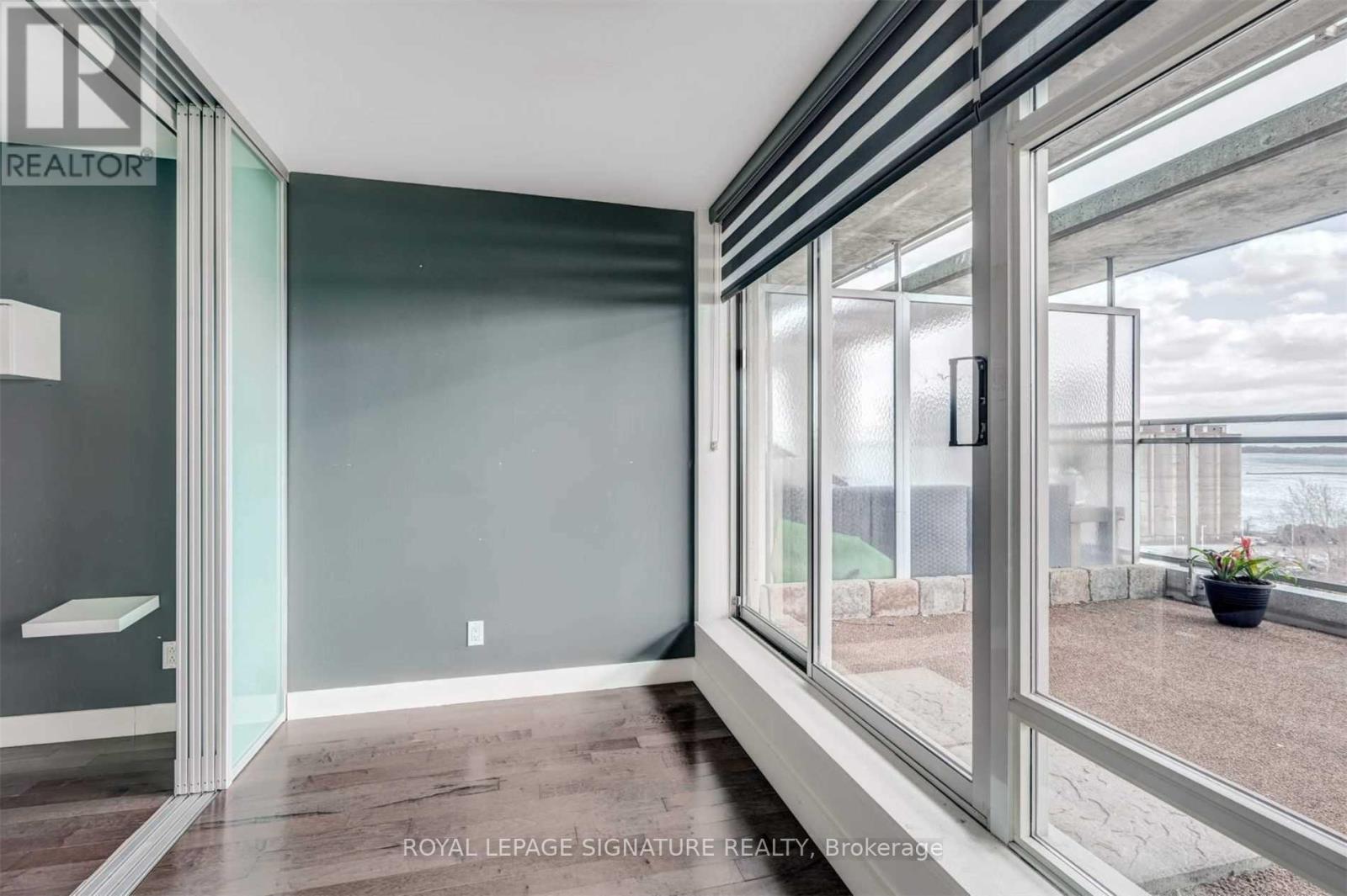 Experience premier waterfront living in this stunning 1-bedroom + den suite, featuring an expansive 200 sq. ft. terrace with unobstructed lake views. The spacious den offers the flexibility to be used as a second bedroom or a comfortable home office. The suite boasts upgraded finishes throughout, including granite waterfall countertops, an enhanced kitchen with stylish backsplash, upgraded bathroom vanities, and a modern glass shower. No carpet anywhere for easy maintenance and a clean, contemporary feel. Hydro is included for added convenience. Residents enjoy access to an incredible rooftop terrace with BBQs and panoramic views of both the lake and the city skyline. Located steps from Porter Airport, the Financial District, top restaurants, entertainment, parks, the marina, and the waterfront trail-this home puts the best of the city right at your doorstep. (id:4555)