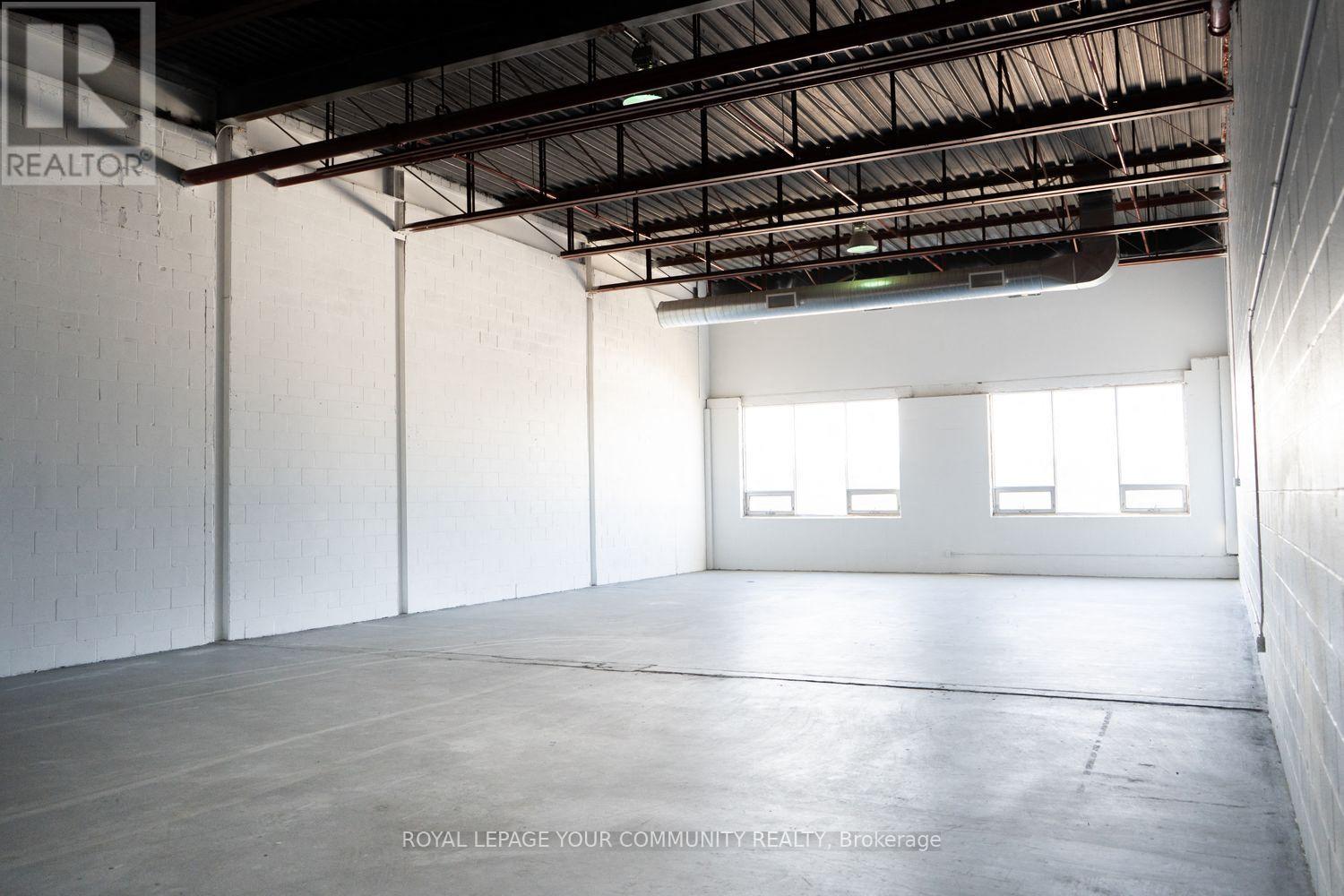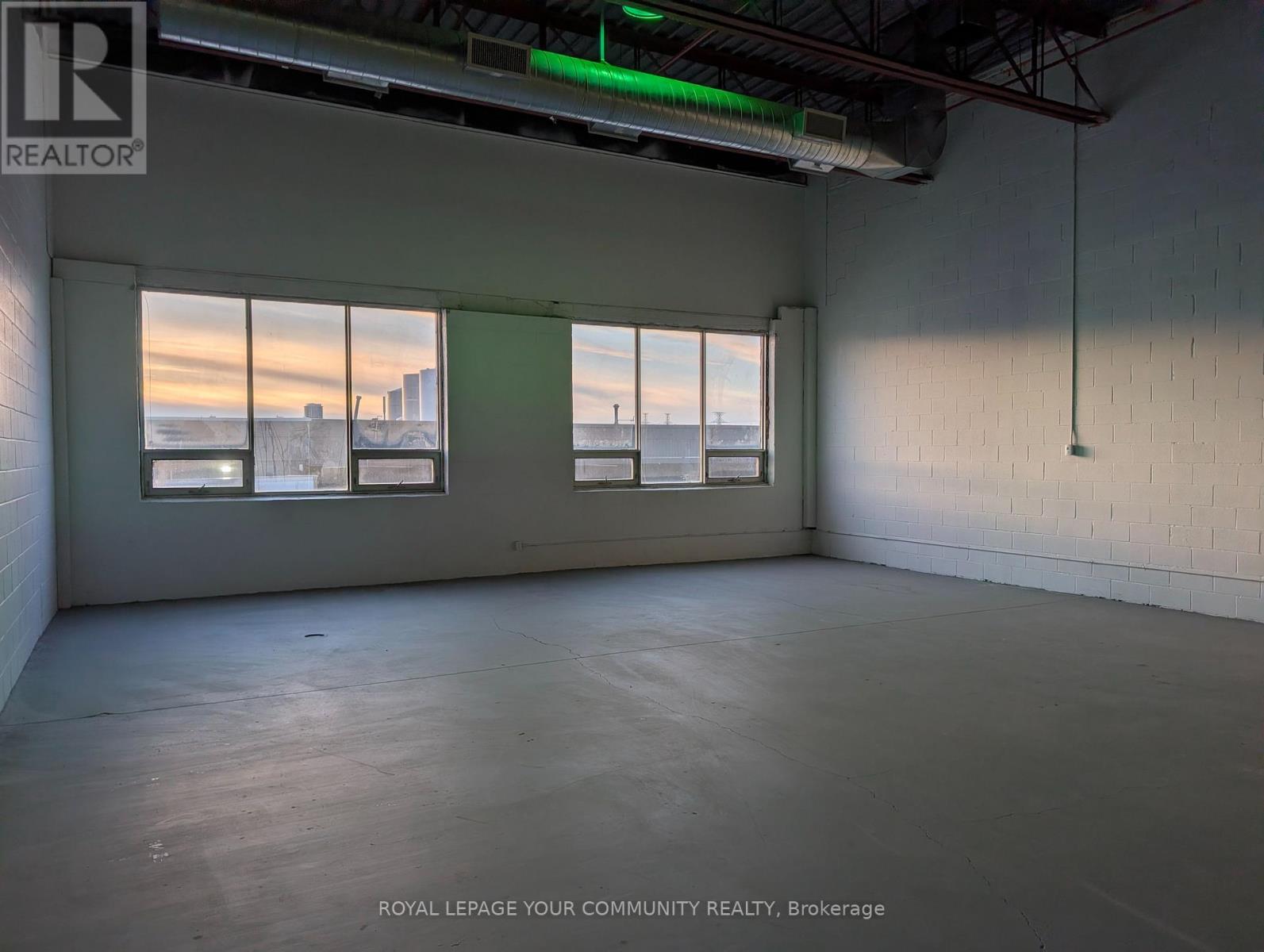 Well-priced, bright and very clean industrial style commercial space in an attractive property located in the heart of the Eglinton / O'Connor industrial node. Efficient clear-span rectangular space approx. 32 ft x 81 ft with approx. 17 feet clear ceiling height, polished concrete floors and large operable west facing windows. Roll up shipping door (8 ft.) opening to a wide common corridor with a short route to convenient common truck level shipping. LED lighting helps to lower tenant hydro costs. Dedicated efficient HVAC. 6OOV 3 phase power. Private 2 piece washroom and plumbing roughed in for kitchenette or other use. Hydro and gas utilities paid by tenant. Abundance of free surface parking. Many light industrial uses accepted, but no food production, woodworking, heavy industrial, or automotive. Very well suited to artist or designer studios, film / TV / content production, educational uses and for businesses needing clean open space for their expanding office requirements. Total monthly cost before HST, hydro & gas is $5,470 + HST + gas utility + hydro utility. (id:4555)