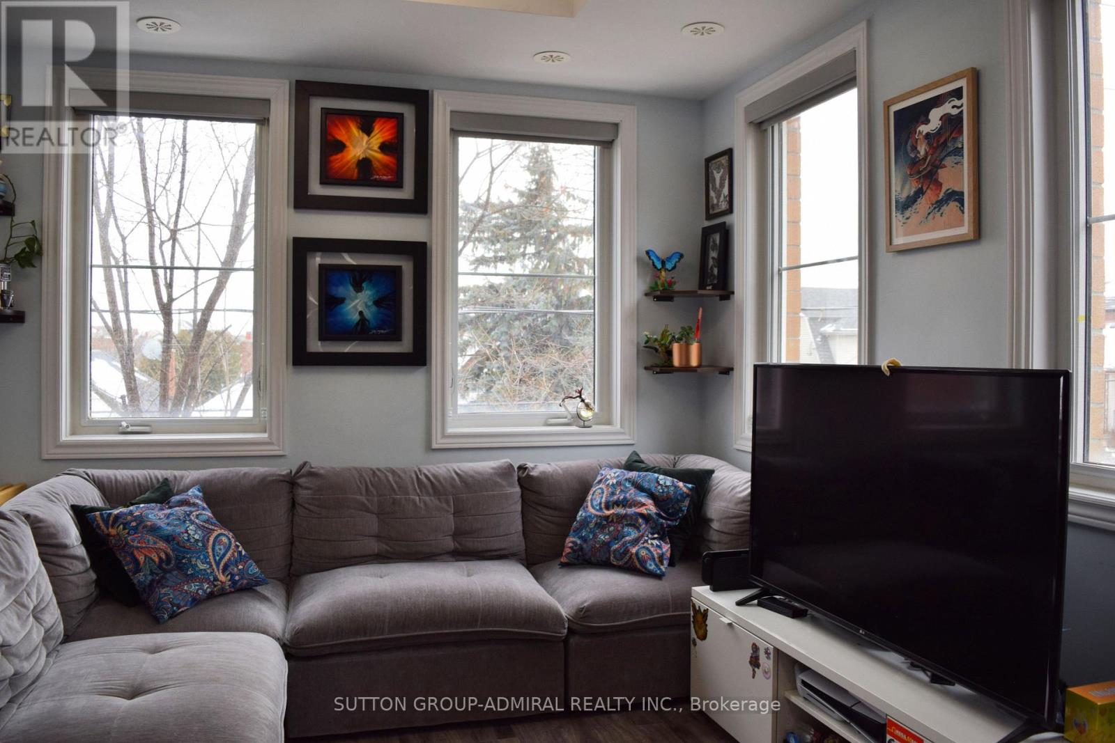 Welcome to the Bayswater in the Briar-Hill/Belgravia area! A rare 924 sf upper level stacked corner unit built by RoyalPark Homes in 2016. This fabulous residence offers an excellent mid-town location with short commute times to many areas of Toronto whether you're driving or taking public transit! Includes one car parking, one storage locker and another separate storage locker for bikes! This unit features modern aesthetics, upgraded newer engineered hardwood flooring on the 2nd level, 9 feet ceilings on the main floor and large windows that wrap around the unit on the main and 2nd floor allowing plenty of natural sunlight into the large family room and master bedroom! The second bedroom features a small walkout terrace! A larger & private 88 sf walkout terrace with natural gas bbq is located on the 4th level and offers unobstructed breathtaking views of the southern city skyline! Convenient Amenities include a short walk to the York Beltline Trail greenspace, Cedarvale Subway Station, Eglinton Crosstown LRT for fast and convenient commute across the city or to the Downtown Toronto area, Yorkdale Mall Shopping Centre, Costco & William R. Allen Rd Highway. School zones include top rated West Preparatory Junior Public School (JK - 6), Fairbank Public School (JK - 5), Fairbank Middle School (6 - 8), Oakwood Collegiate Institute (grades 9 - 12), York Memorial Collegiate Institute (grades 9 - 12), St. Thomas Aquinas Catholic School (grades JK - 8) & Dante Alighieri Academy Catholic School (grades 9 - 12). (id:4555)