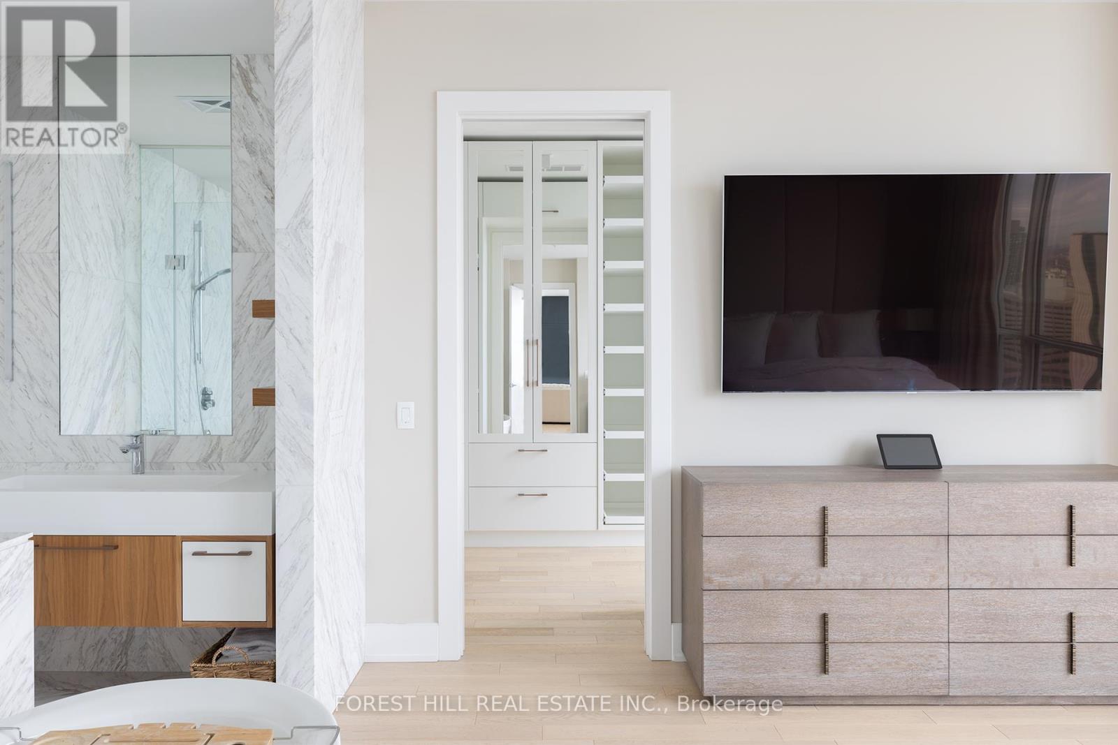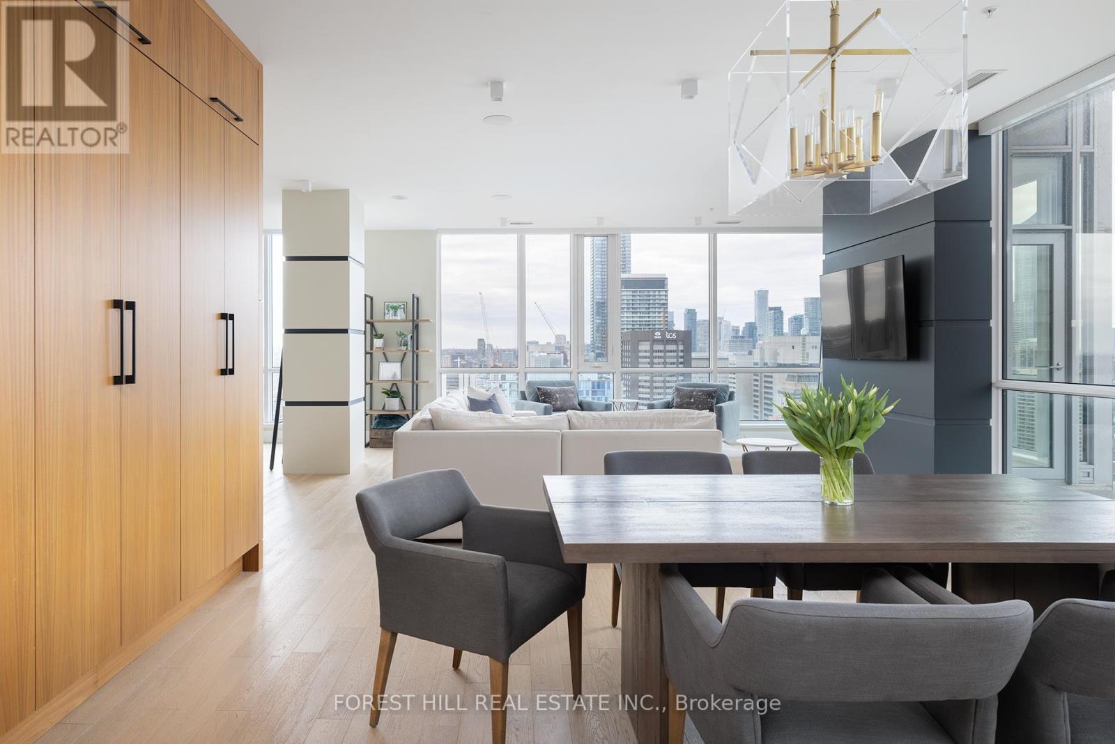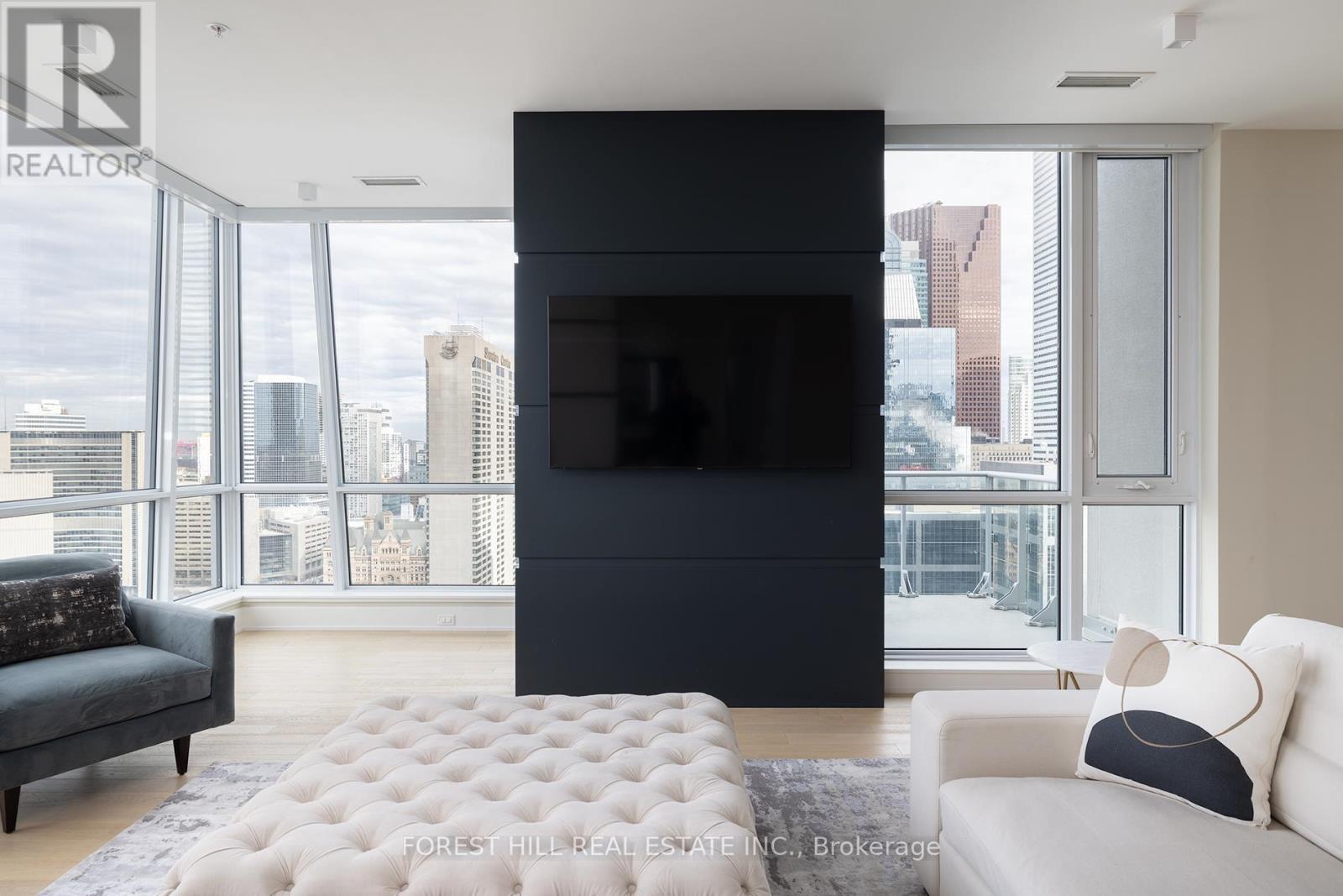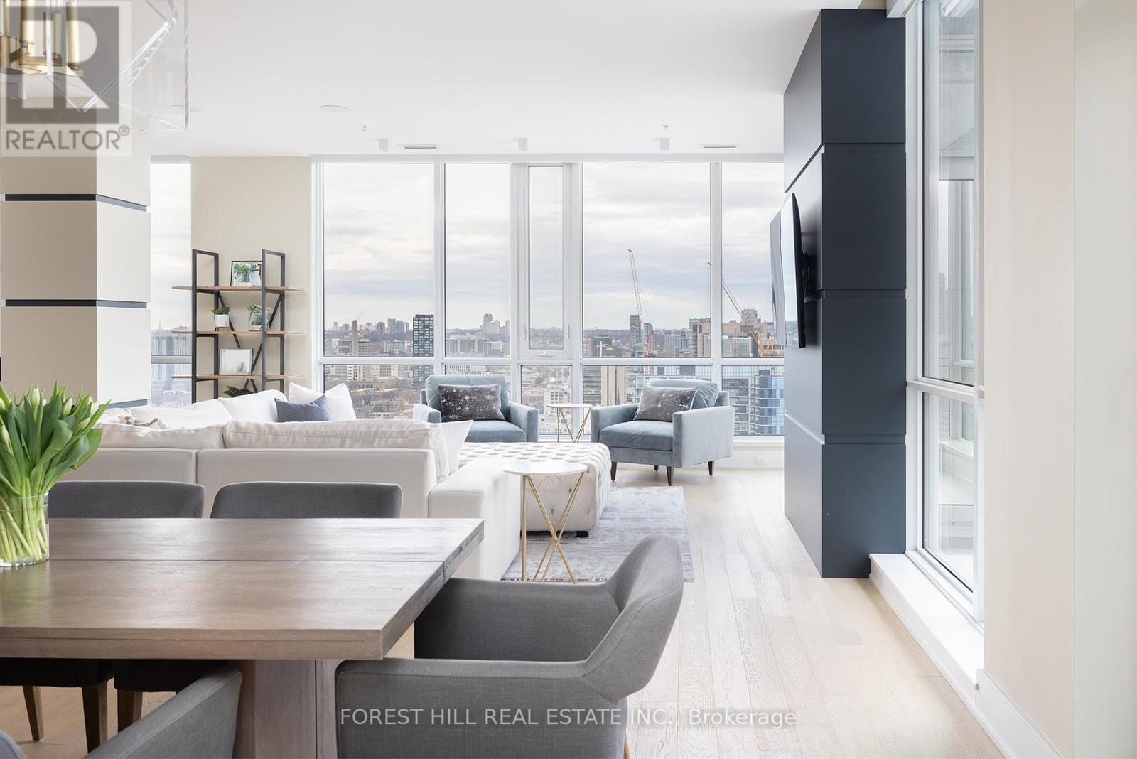 Everything one could want, and then some. Super bright and airy where natural finishes soothe & floor to ceiling windows showcase incredible city views. Enter into over 3,200 sq. ft, including 3 bedrooms, a family room, a den, 3 bathrooms, and an open living/dining room ideal for entertaining. The kitchen features all the right ingredients with Miele integrated appliances, a fabulous centre island and custom designed breakfast nook. For entertaining and relaxation, the private family room showcases a beautiful marble wall media unit with fireplace and Built-in ceiling speakers, ideal for movie nights. The primary bedroom harbours a sense of serene tranquility. Dramatically oversized, boutique like walk-in closet, and hotel style ensuite. Control 4 smart home technology allows you to control lighting, window shades, and music throughout allowing you to set the perfect mood. One of Two PH on the top floor. Two(2) side by side parking spots and Two(2) side by side lockers included. World-class entertainment, shopping, and dining are steps away. Available for Short Term Rental and/or fully furnished. (id:4555)