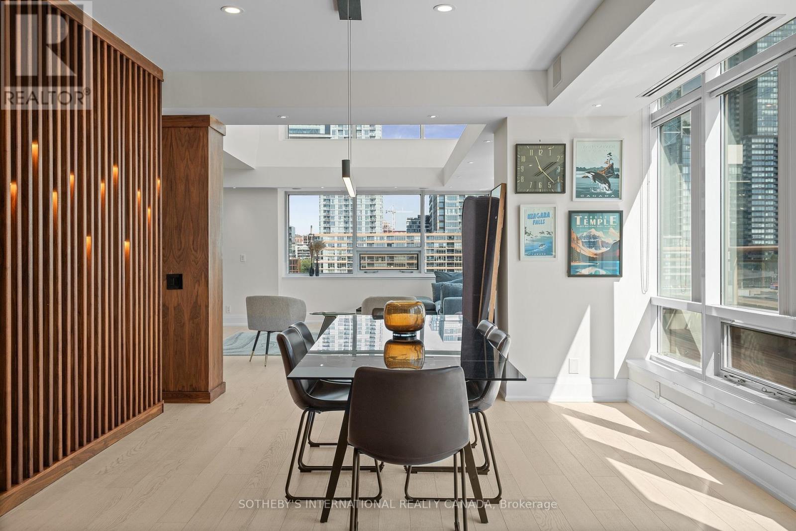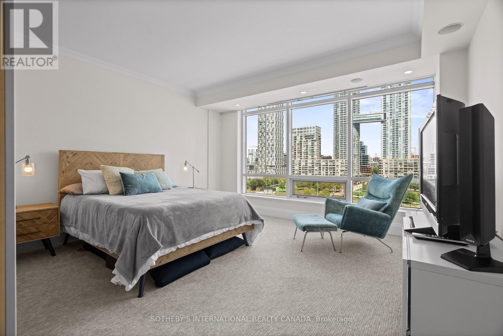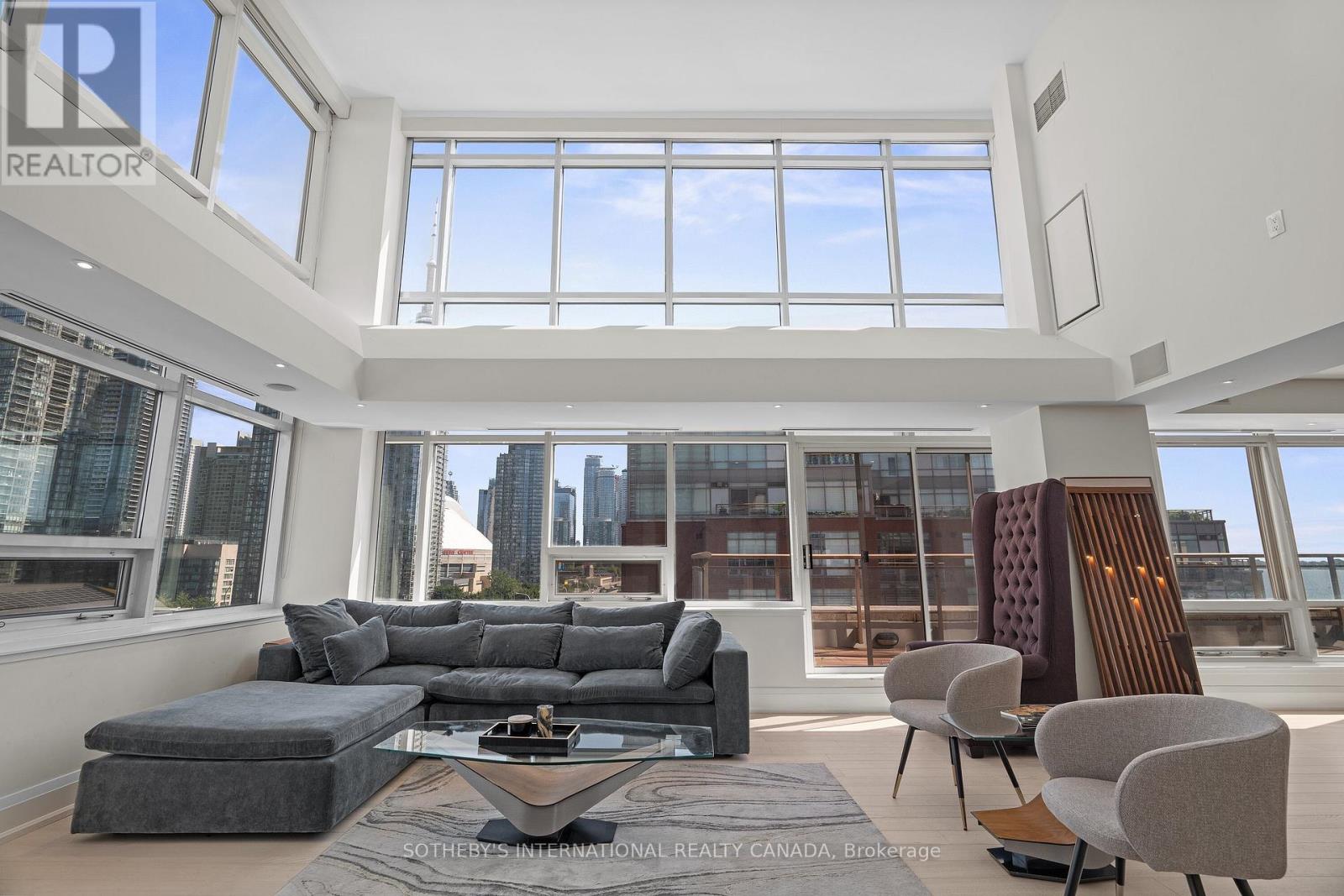 Welcome to this luxurious Fully Furnished Two-level Penthouse Corner Suite, An Exceptional 3-bedrooms, 3.5-bathroom Residence and one of the True Jewels of Queens Quay. With soaring 18-foot ceilings in the living room, dramatic floor-to-ceiling windows, and southern and eastern exposures, this home offers breathtaking views of both Lake Ontario and the Toronto skyline. The open-concept design is enhanced by a gas fireplace, built-in speakers, and an abundance of natural light, creating a warm yet sophisticated atmosphere.The gourmet kitchen features a stainless steel gas stove, fridge, dishwasher, and premium finishes, while spa-inspired bathrooms include airflow whirlpool tubs for ultimate relaxation. Each of the three spacious bedrooms boasts its own ensuite bathroom, with the private primary suite enjoying panoramic water and city vistas. For convenience, the suite is equipped with a washer/dryer and comes fully furnished for immediate enjoyment.Additional highlights include two premium parking spots, generous living and entertaining spaces, and a seamless blend of modern luxury with everyday comfort. Ideally located, this residence places you just steps from the Scotiabank arena , Rogers Centre, Union Station, public transit, world-class restaurants, boutique shopping, and Starbucks right at your door. Offering the perfect balance of elegance, comfort, and lifestyle, this penthouse represents a rare opportunity to live in one of Torontos most sought-after waterfront addresses. (id:4555)