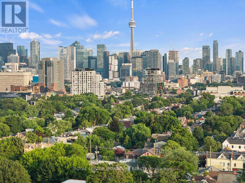 A rare and remarkable opportunity to own a meticulously maintained commercial building in one of Toronto's most sought-after neighbourhoods. With 100 feet of prime street frontage along Harbord Street, this striking corner property commands attention with its exceptional curb appeal and versatile layout. Currently operating as a retail and wellness space, the building is easily adaptable for a variety of uses including a seamless conversion back to its former life as a high-end restaurant. Spanning two light-filled levels plus a finished basement, the space showcases a beautiful blend of architectural character and thoughtful upgrades. The main floor features soaring ceilings, marble accent walls, and wall-to-wall glass doors that flood the interior with natural light. Upstairs, cathedral ceilings, 14-foot French doors with Juliet balconies, and a generous rooftop terrace with CN Tower views create an inspiring setting for private events, dining, ceremonies, and more. Extensive recent updates include a custom steel front door (2024), outdoor cement work and dormer window replacements (2025), a new hot water tank (2023/24), upgraded roofing and HVAC, heated floors, built-in cabinets, a Caesar stone reception desk, and a renovated electrical room. Additional highlights include three bathrooms (with rough-ins for three more), built-in industrial fridges, a landscaped side garden, and 16 internal and external security cameras. With stunning built-in planters full of perennial grasses and flowers wrapping the front and side of the building, this property offers unmatched curb appeal and a rare opportunity to own a space that is truly one-of-a-kind. A perfect fit for end users, investors, or visionary entrepreneurs ready to bring their dream business to life. (id:4555)