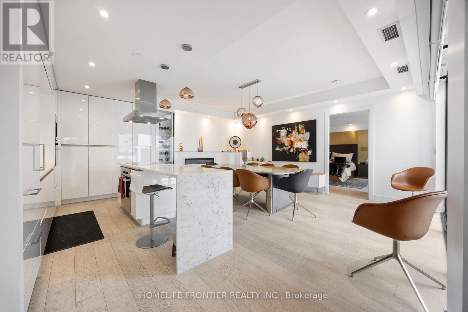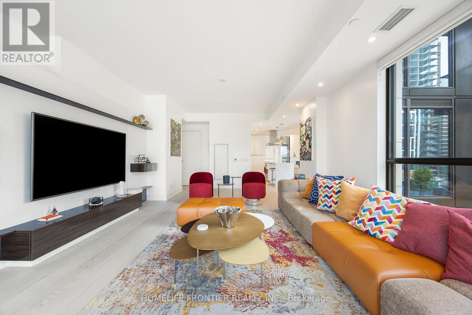 Experience refined luxury in this exceptional two-bedroom, three-bathroom residence in one of Midtown's most prestigious buildings. Thoughtfully designed for both elegance and comfort, this rare layout includes soaring 9-foot ceilings and a spacious family room in addition to open living and dining areas-ideal for entertaining or everyday living. The primary suite offers the feel of a private retreat, complete with two custom walk-in closets and a spa-inspired ensuite featuring upgraded tile and vanities, heated floors, dual sinks, a large walk-in shower, a soaker tub, and a private water closet. The split-bedroom plan ensures privacy, with the second bedroom featuring its own ensuite. A discreet powder room with designer hand-painted walls and elegant ceiling lighting adds a sophisticated touch. Throughout the suite, upgraded wide-plank hardwood floors, recessed pot lighting, and remote-control curtains create a seamless and elevated ambiance. The kitchen is fully customized with upgraded cabinetry, designer lighting over the island and dining area, and top-of-the-line Miele appliances, including a built-in coffee machine and microwave. The family room is enhanced with a bespoke TV wall unit, while a mirrored entrance wall provides a dramatic, welcoming impression. Two private balconies extend the living space outdoors. The residence also includes valet parking and professional valet services, adding everyday ease and convenience. Residents enjoy a full-service concierge and world-class amenities, including a state-of-the-art fitness centre, stylish party room, and a beautifully landscaped rooftop terrace. Located just steps from the shops, dining, and conveniences of Yonge & St. Clair, this home offers the ultimate in urban luxury living. (id:4555)