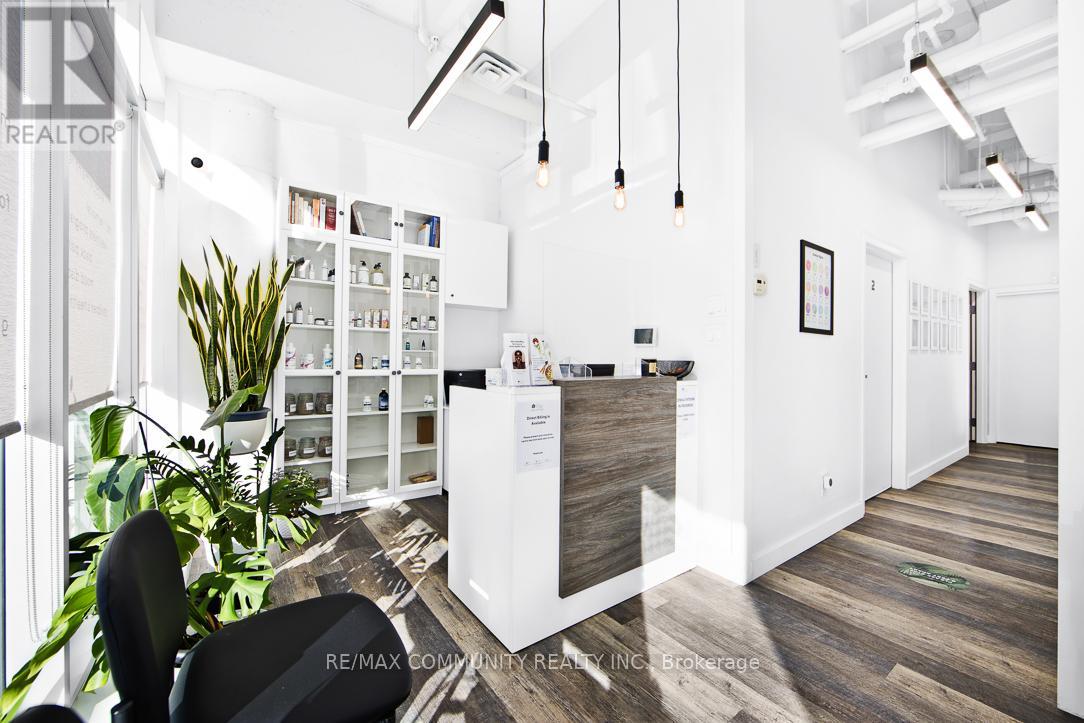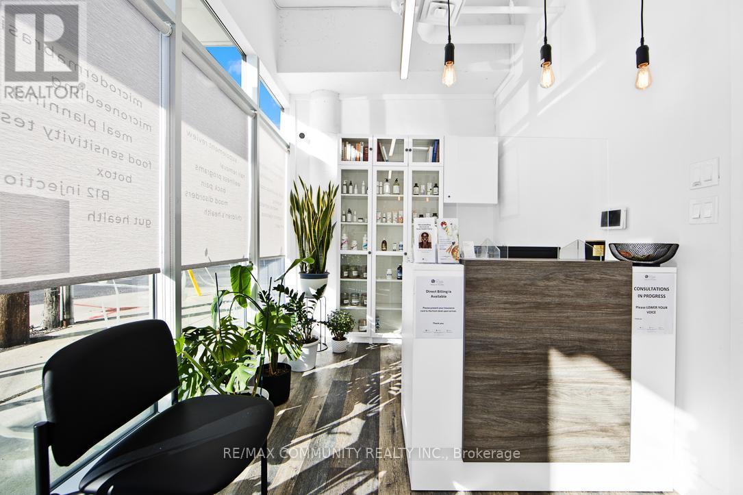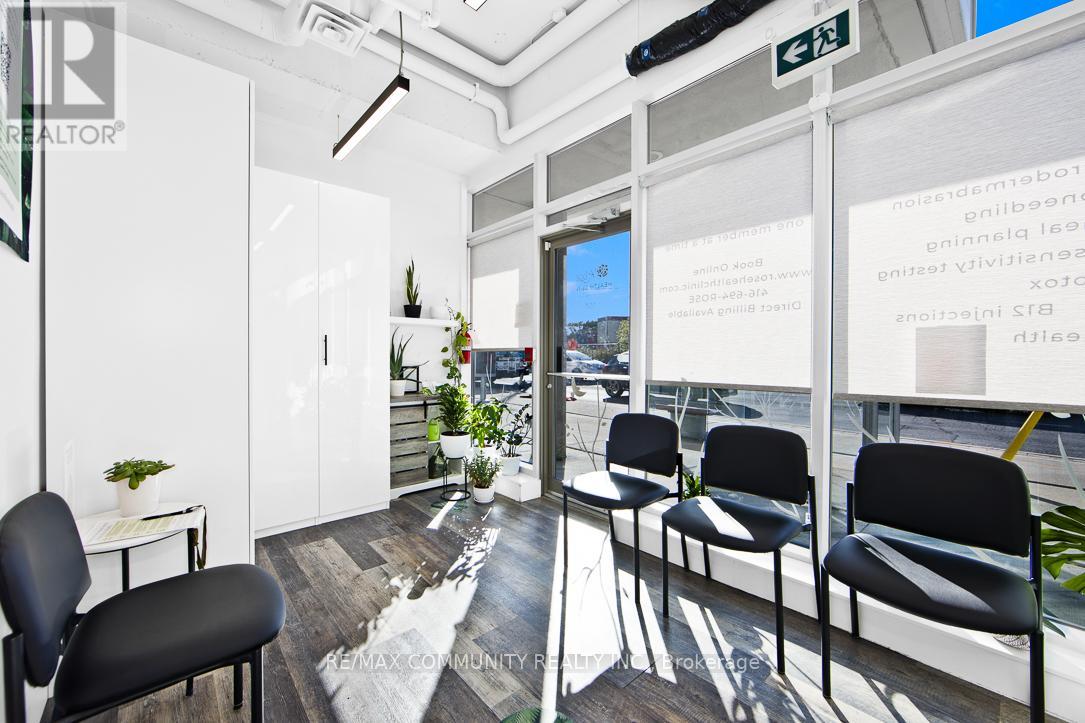 Absolutely stunning and fully modernized retail space, currently operating as a professional doctor's office, located at the northeast corner of Danforth Avenue and Warden Avenue within the prestigious Terrace on Danforth Boutique Condominiums. This prime commercial unit offers exceptional visibility, large street-facing windows, and excellent signage potential, attracting both high foot and vehicle traffic in one of Toronto's most vibrant corridors. Ideally situated just steps from TTC transit, it ensures convenient access for clients and customers. The interior is fully built out and move-in ready, featuring a welcoming reception area, three private offices, a fully accessible washroom, a kitchenette, and a conference room that can also serve as a fourth office. Perfect for professional services, boutique retail, or any business looking to establish itself in a high-demand location, this turnkey space allows you to start operating immediately without additional investment (id:4555)