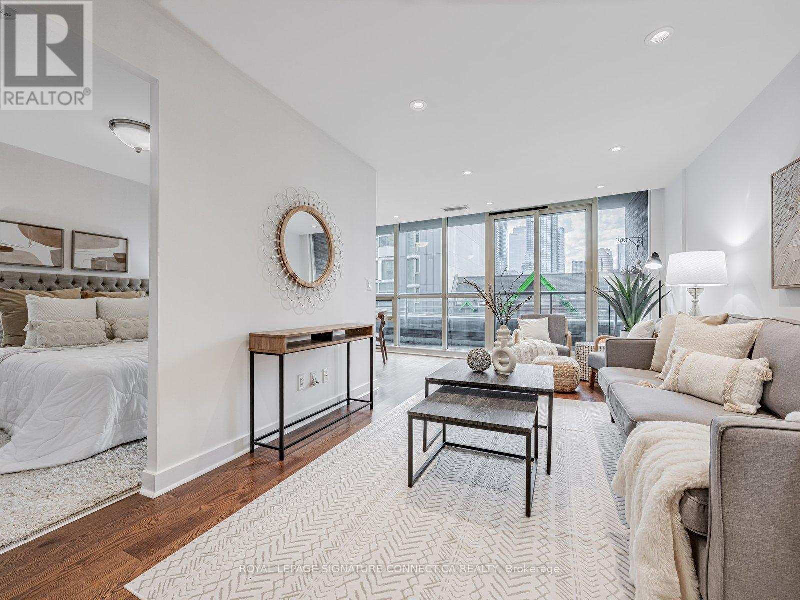 Condo living the way it should be experienced! In a city full of micro-condos, Unit 407 rises above the rest-and at an INCREDIBLE price. This spacious 1+Den (easily used as a second bedroom) offers over 900 sq.ft. of bright, open living space with a layout that actually lives like a home. Storage is never an issue here: large closets throughout-including a walk-in in the primary bedroom and large unit in the kitchen give you room for everything you need all year round. The bedroom features newly installed carpet, and the expansive floor plan offers endless ways to customize your space. Floor-to-ceiling windows span the full width of the unit, filling it with natural light, while new pot lights ensure it stays beautifully illuminated at any time of day. Location is unbeatable: the King St. streetcar is just two blocks away, Line 1 is a short walk to Yonge St., and grocery runs are effortless with No Frills, Metro, and the iconic St. Lawrence Market all within 300m. Enjoy impressive building amenities including a gym, guest suites, party room, rooftop deck, and 24-hour security. Unit 407 also comes with parking and a locker-a rare bonus in this area. Don't miss your chance to call this standout suite home! (id:4555)