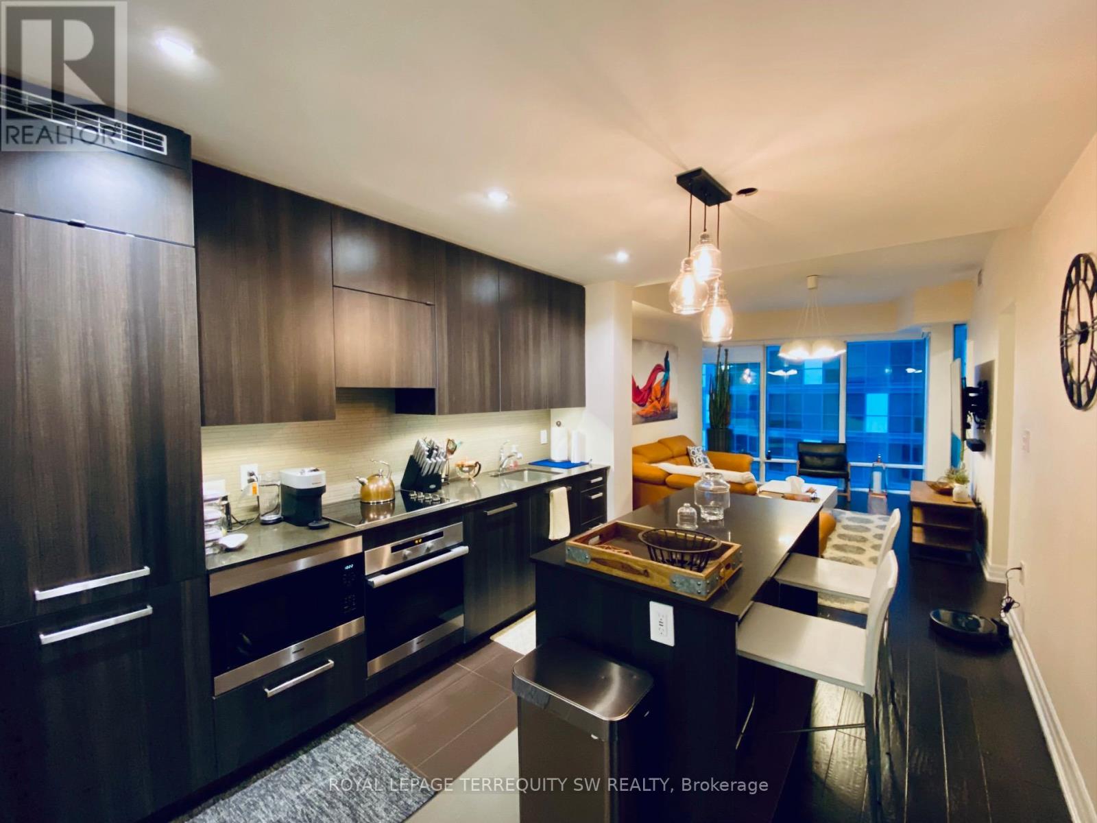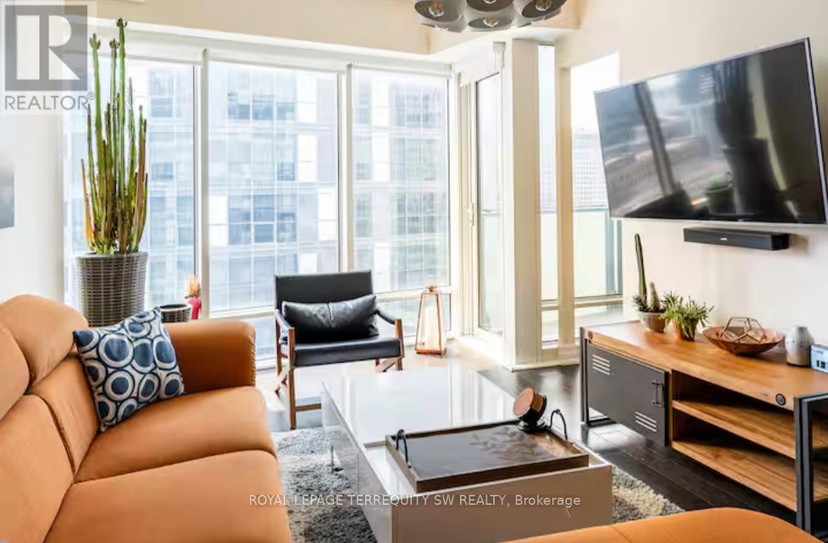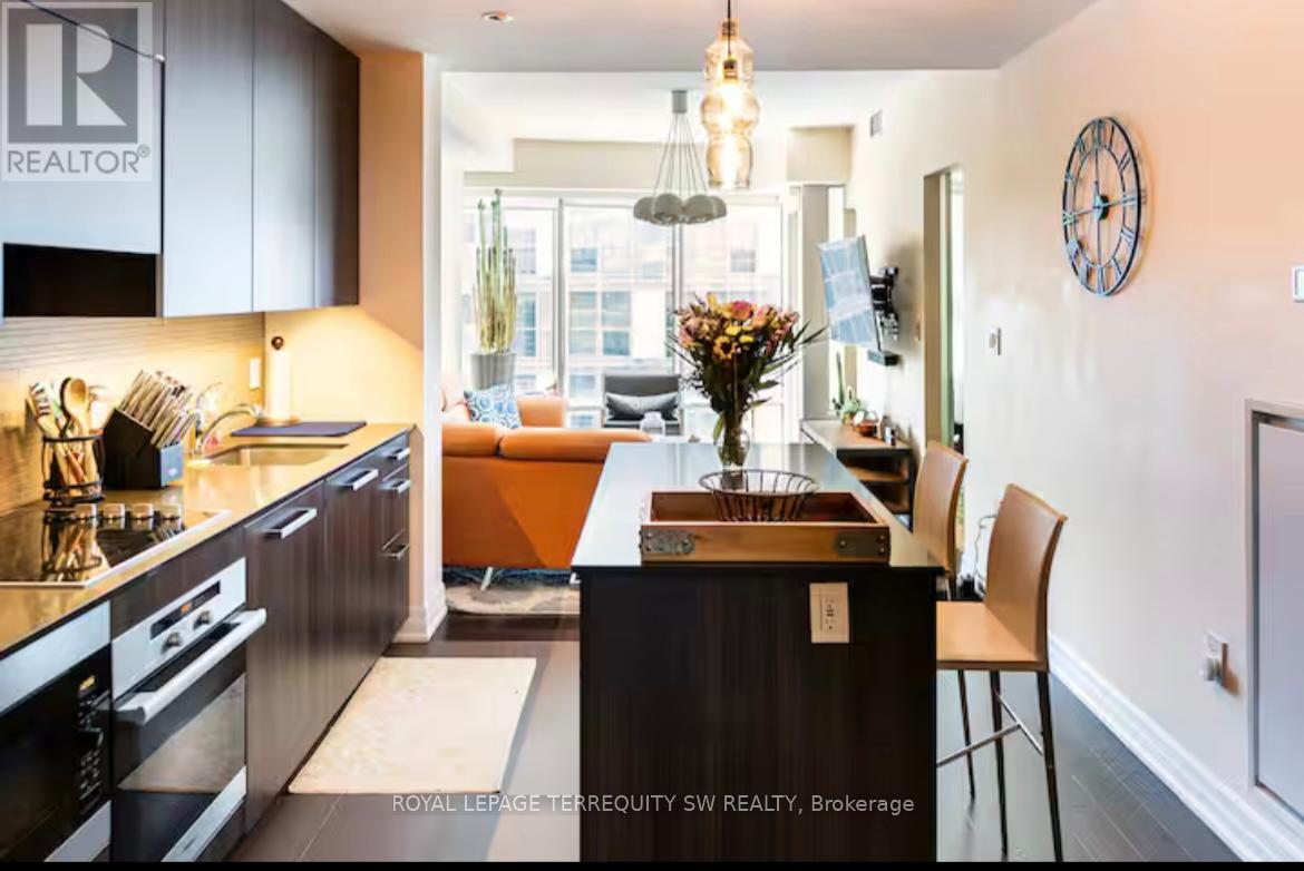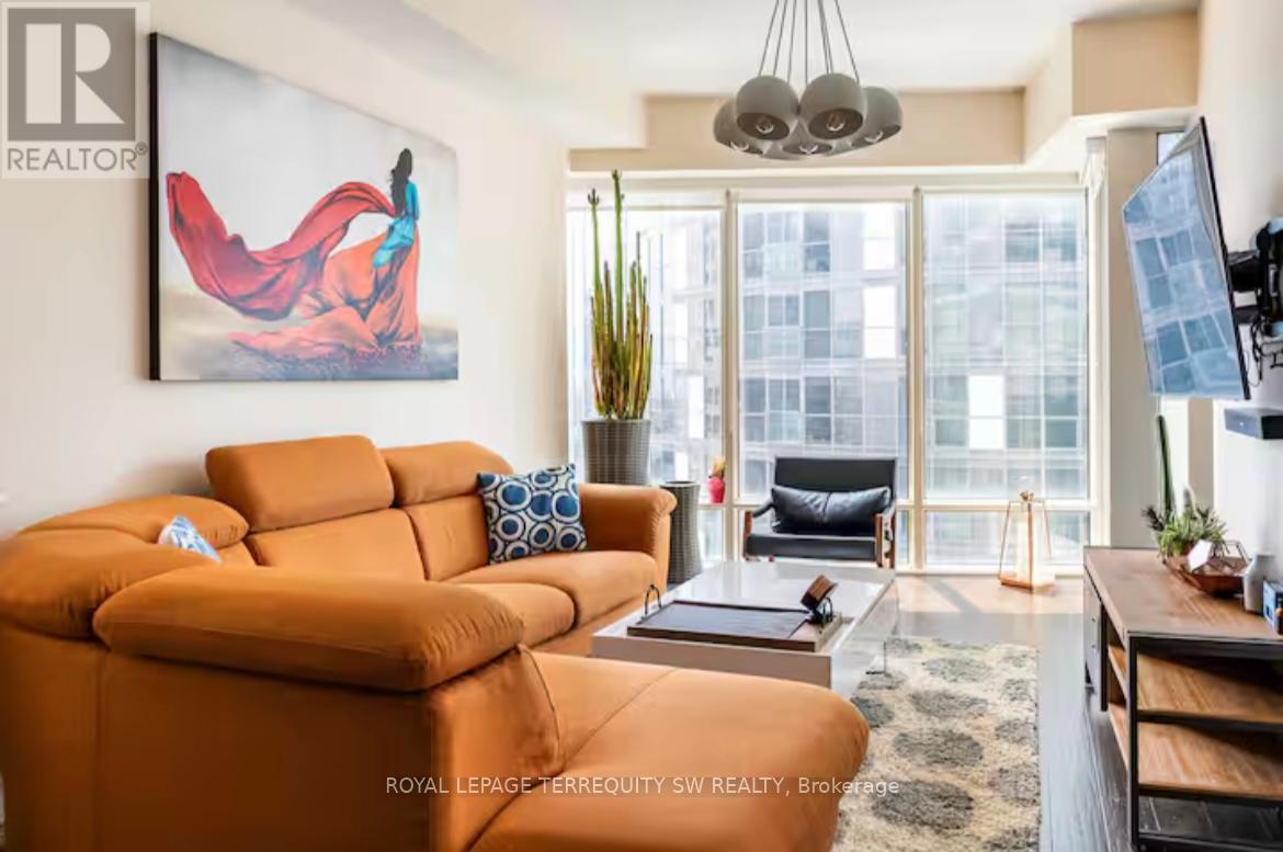 Modern, Luxurious & Fully Furnished condo in heart of downtown Toronto at L-Tower. Steps away from Union Station, St. Lawrence Market, the Waterfront and Berczy Park you are walking distance from everything at this location. Surrounded by restaurants, pubs, grocery, pharmacies & coffee shops on all sides you will be spoiled for choice on where to go next. Impossible to be bored with TIFF, the Flat Iron, Rogers Centre minutes away! This luxury building and unit is perfect for the working professional in town on business. The space has a queen size bed, two full baths, full kitchen and a den that can be used for a workspace. The condo has been equipped to be a home away from home with all the everyday necessities you will need. This includes a variety of coffee and tea, cleaning supplies, basic toiletries and cleaning supplies. There is a Keurig with coffee and hot chocolate pods. Ensuite washer and dryer. A balcony with a great view. Lots of plugs throughout the condo that also have USB ports. Lights have dimmers on them. The bed has a mattress pad than can be taken off at your comfort and convenience for a firmer or softer nights sleep. The coffee table top also pulls up to meet you at chest level to eat or work on. A full gym with a yoga room, sauna and pool available on second floor. The pool has a skylight and loungers so you feel like you're outdoors! Though we're in the heart of downtown it is exceptionally quiet in the unit **EXTRAS** Fully Furnished (WiFi + Hydro + Parking Negotiable) (id:4555)