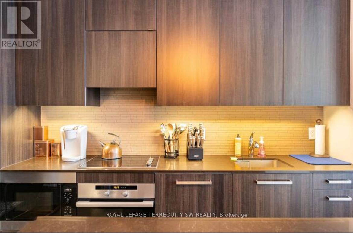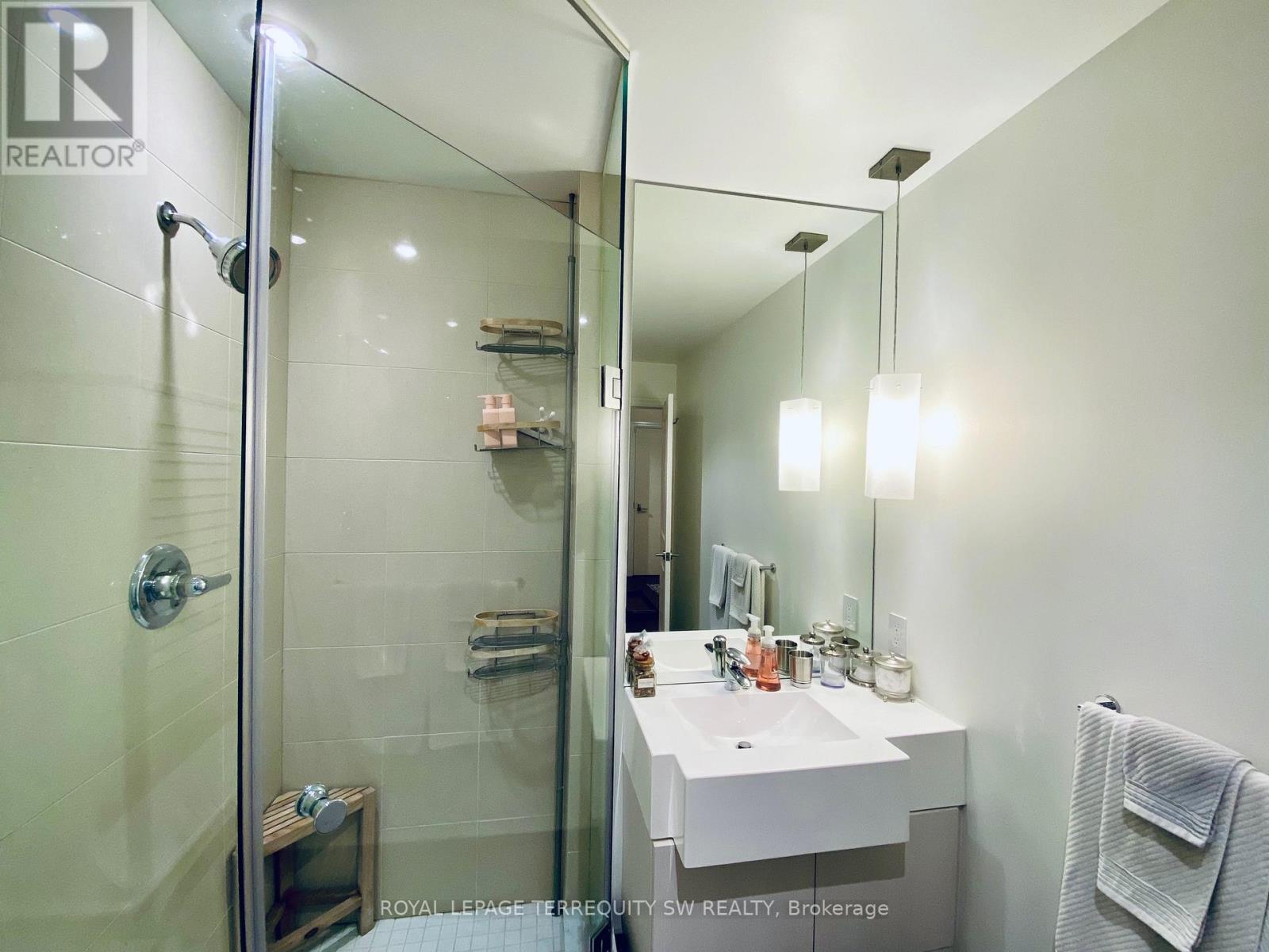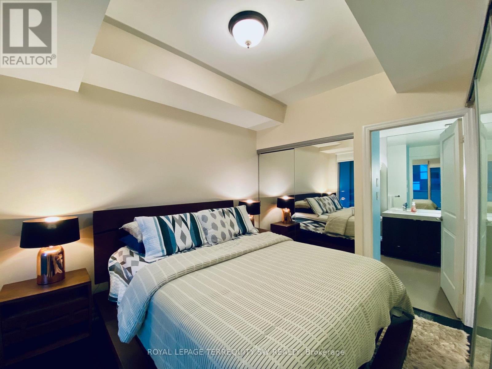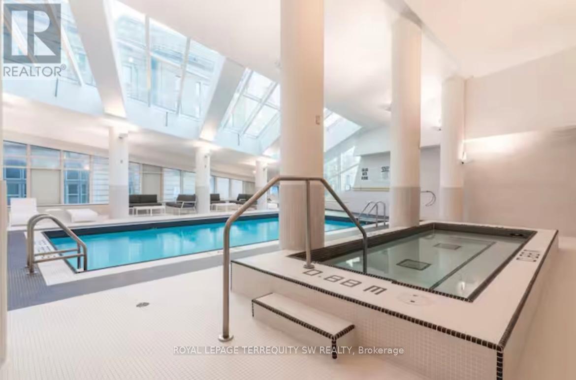 Modern, Luxurious & Fully Furnished condo in heart of downtown Toronto at L-Tower. Steps away from Union Station, St. Lawrence Market, the Waterfront and Berczy Park you are walking distance from everything at this location. Surrounded by restaurants, pubs, grocery, pharmacies & coffee shops on all sides you will be spoiled for choice on where to go next. Impossible to be bored with TIFF, the Flat Iron, Rogers Centre minutes away! This luxury building and unit is perfect for the working professional in town on business. The space has a queen size bed, two full baths, full kitchen and a den that can be used for a workspace. The condo has been equipped to be a home away from home with all the everyday necessities you will need. This includes a variety of coffee and tea, cleaning supplies, basic toiletries and cleaning supplies. There is a Keurig with coffee and hot chocolate pods. Ensuite washer and dryer. A balcony with a great view. Lots of plugs throughout the condo that also have USB ports. Lights have dimmers on them. The bed has a mattress pad than can be taken off at your comfort and convenience for a firmer or softer nights sleep. The coffee table top also pulls up to meet you at chest level to eat or work on. A full gym with a yoga room, sauna and pool available on second floor. The pool has a skylight and loungers so you feel like you're outdoors! Though we're in the heart of downtown it is exceptionally quiet in the unit **EXTRAS** Fully Furnished (WiFi + Hydro + Parking Negotiable) (id:4555)