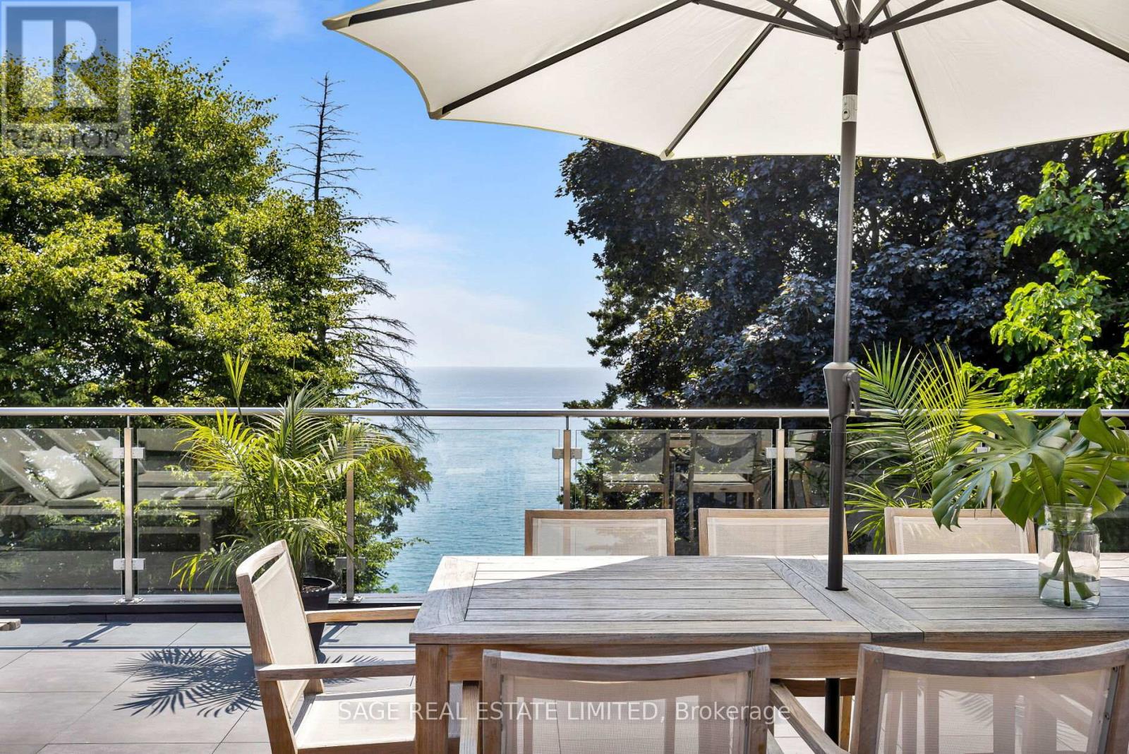 Perched on the Scarborough Bluffs with sweeping, year-round lake views, this sophisticated family home was built in 2011 and offers over 5,000 sq. ft. across four levels. From multiple vantage points you are treated to lakeside vistas, most notably from the show-stopping 875 sq. ft. rooftop terrace with a full outdoor custom kitchen (B/I fridge & BBQ) and gas fireplace. Additional outdoor spaces include a main floor composite deck, a fully fenced and extensively landscaped yard and a new glass-fenced cliffside patio. Inside, a custom chef's kitchen anchors the main floor with an open living/dining area plus a family room perfectly appointed for cozy movie nights. A private office is tucked away behind the kitchen. Upstairs, the primary suite offers two ensuite bathrooms and walk-in closets. A renovated second-floor bath features a new skylight and curbless shower, while the laundry room has new cabinetry, marble counters, and Miele appliances. The lower level features extra-high ceilings, a gym, renovated bath, partial kitchen, and garage access that's ideal for a nanny/in-law suite. The 2-car garage includes new epoxy flooring, slat wall storage and fastback hanging Kayak storage. Recent upgrades extend outdoors with a sprinkler system, upgraded landscaping, built-in BBQ & fridge and a custom front door. Security is top-tier with Ring cameras, hardwired AI cameras, DVR monitoring, Metalex screens, reinforced locks, and monitored alarm. Set within a close-knit community and near top-rated Chine Drive Public School, you'll also enjoy quick access to the Great Lakes Waterfront Trail plus hidden neighbourhood trails at the base of the Bluffs that provide direct lakeside access few know about. Birchmount Stadium, parks, and tennis courts are within walking distance, with shops and restaurants like City Cottage Market and The Birchcliff nearby. Just minutes from the Beaches but without the congestion; this is where waterfront luxury meets everyday comfort. (id:4555)