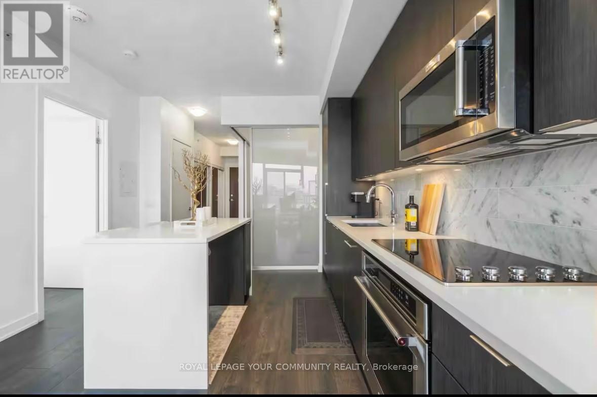 FULLY FURNISHED!!! New, bright, sleek living near the Lake! Perfectly situated 2-Bedroom 1-Bathmodern chic condo with 1 premium P1 parking spot near Harbourfront and all that it has to offer! New building w/ 24hr security & plenty of visitor parking. Nine foot ceilings with floor-to-ceiling windows outfitted with custom blinds. The modern kitchen boasts a marble backsplash, granite island & countertops, full-size suite of integrated appliances including KitchenAid stove, JennAir fridge & niche dining area. Unit shows much larger in person and very bright due to window design and extra glazing. Amenities are top notch. Steps To TTC, the Bentway (skating), BMO Field, King West, Liberty, CNE, Harbourfront, lots of walking trails &parks, Loblaws, Shoppers Drug Mart, LCBO, shopping and grocery. Everything you need right at your doorstep. Make this your home near the Lake! (id:4555)