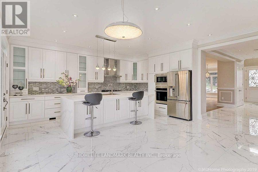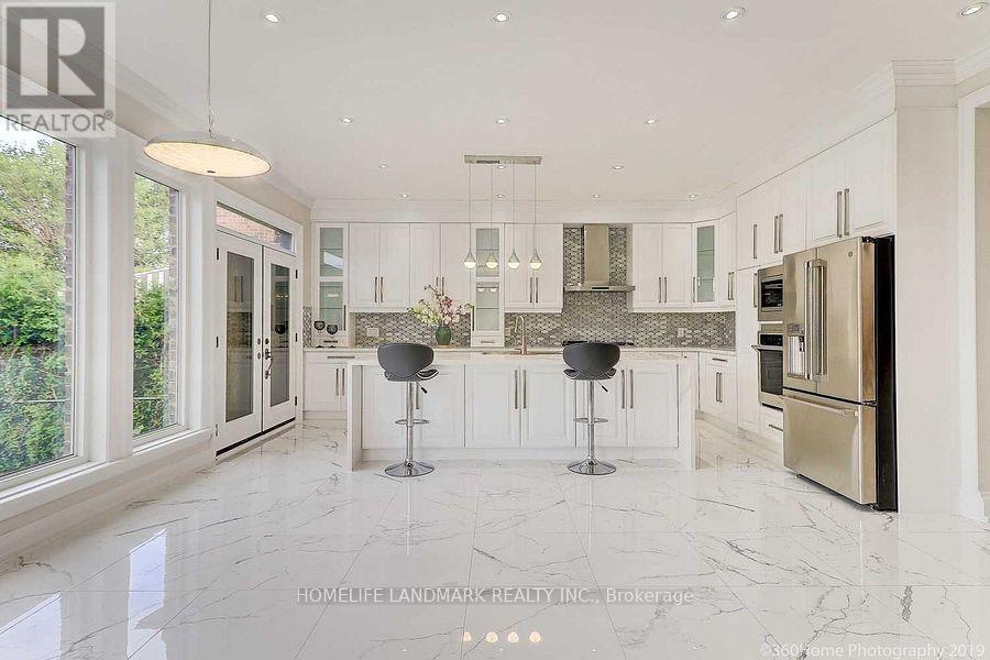 Elegant custom-built mansion in the highly sought-after South Cedarbrae area. Offering over 3600 sq.ft of luxurious living space plus a finished walkout 3B/R basement, this home features 10 ceilings, marble floors, solid maple wood cabinetry, and detailed crown moulding throughout. The oversized kitchen includes a large waterfall island with apron sink, 36 gas cooktop, wall oven, and high-end finishes perfect for entertaining. The master suite boasts a spacious balcony with unobstructed views. Additional upgrades include a full exterior camera security system, smart garage door, doorbell, and thermostat, as well as an extended driveway for extra parking. The newly renovated basement features three bedrooms, a wet bar, and a separate entrance, offering excellent potential for an in-law suite or rental. Conveniently located near Eglinton GO Station, public transit, renowned schools, and community centres. A truly exceptional property not to be missed! (id:4555)