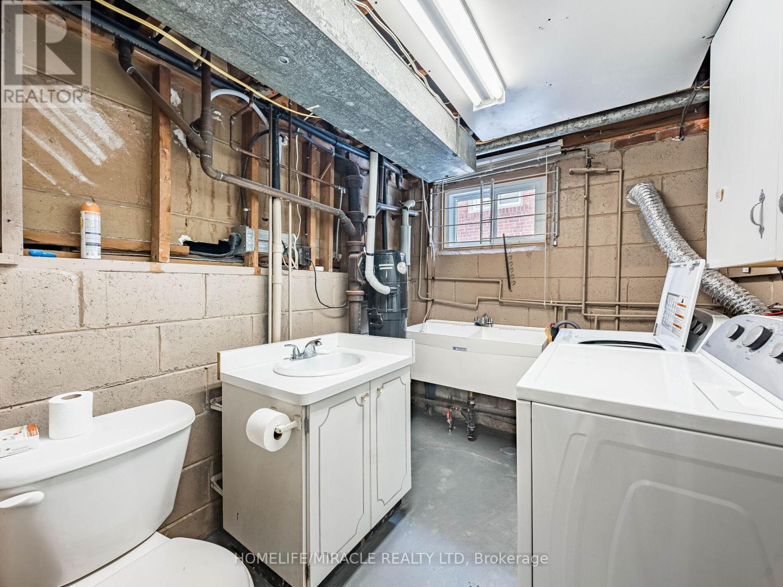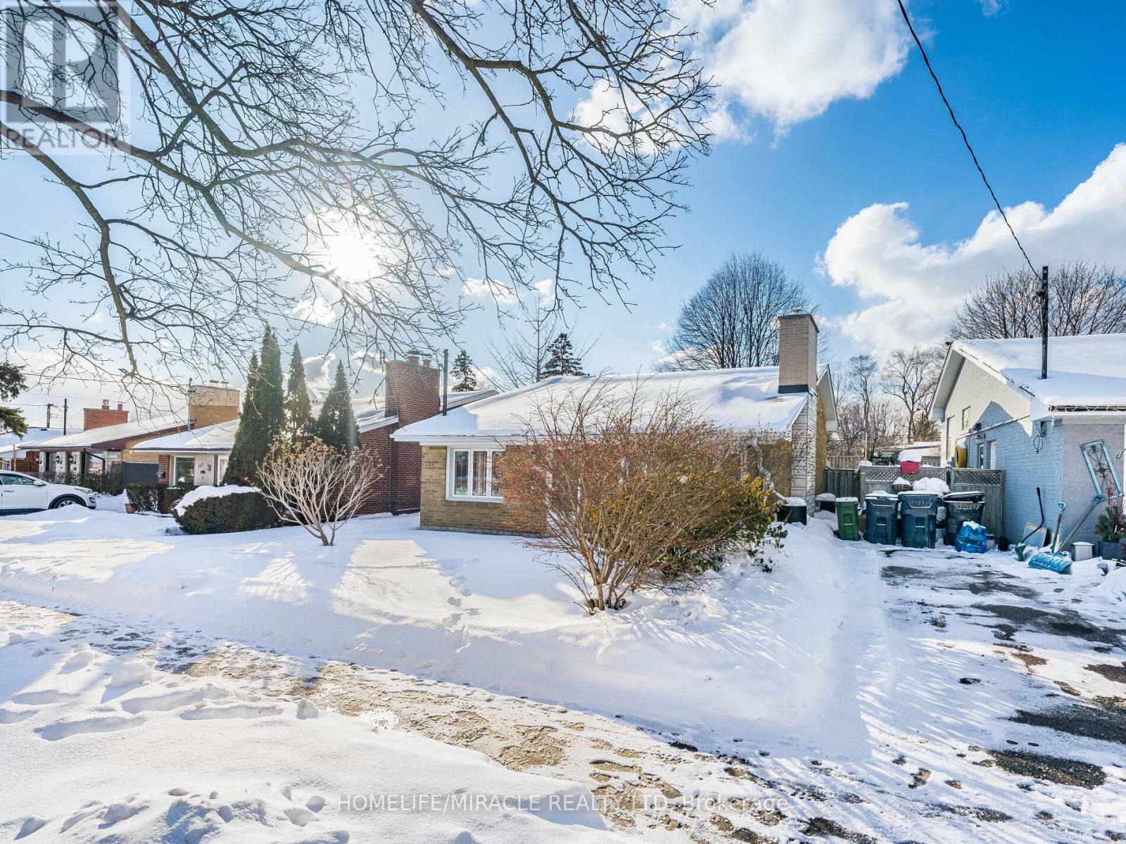 Bright and well-maintained home featuring an open-concept living and dining area with high ceilings and a floor-to-ceiling brick gas fireplace. Large windows provide excellent natural light. Updated kitchen with ample cabinetry, side entrance, window over sink, and modern appliances, including dishwasher. Offered unfurnished; all appliances included. Upper level offers three well-sized bedrooms and a bathroom with a window and a mirrored vanity. Upgraded windows throughout. Carpet-free flooring, recently painted. The main floor has a separate and exclusive full set of laundry with a laundry sink, as well as a 2-piece washroom. Perennial gardens and a spacious backyard. Located in a quiet, walkable neighbourhood close to schools, shopping, library, hospital, and TTC. Easy access to Hwy 401, 404, and DVP. Tenant to pay 70% of utilities. Key deposit $200. Tenant is responsible for yard maintenance and snow removal. Professionally managed by Sawera Property Management. (id:4555)