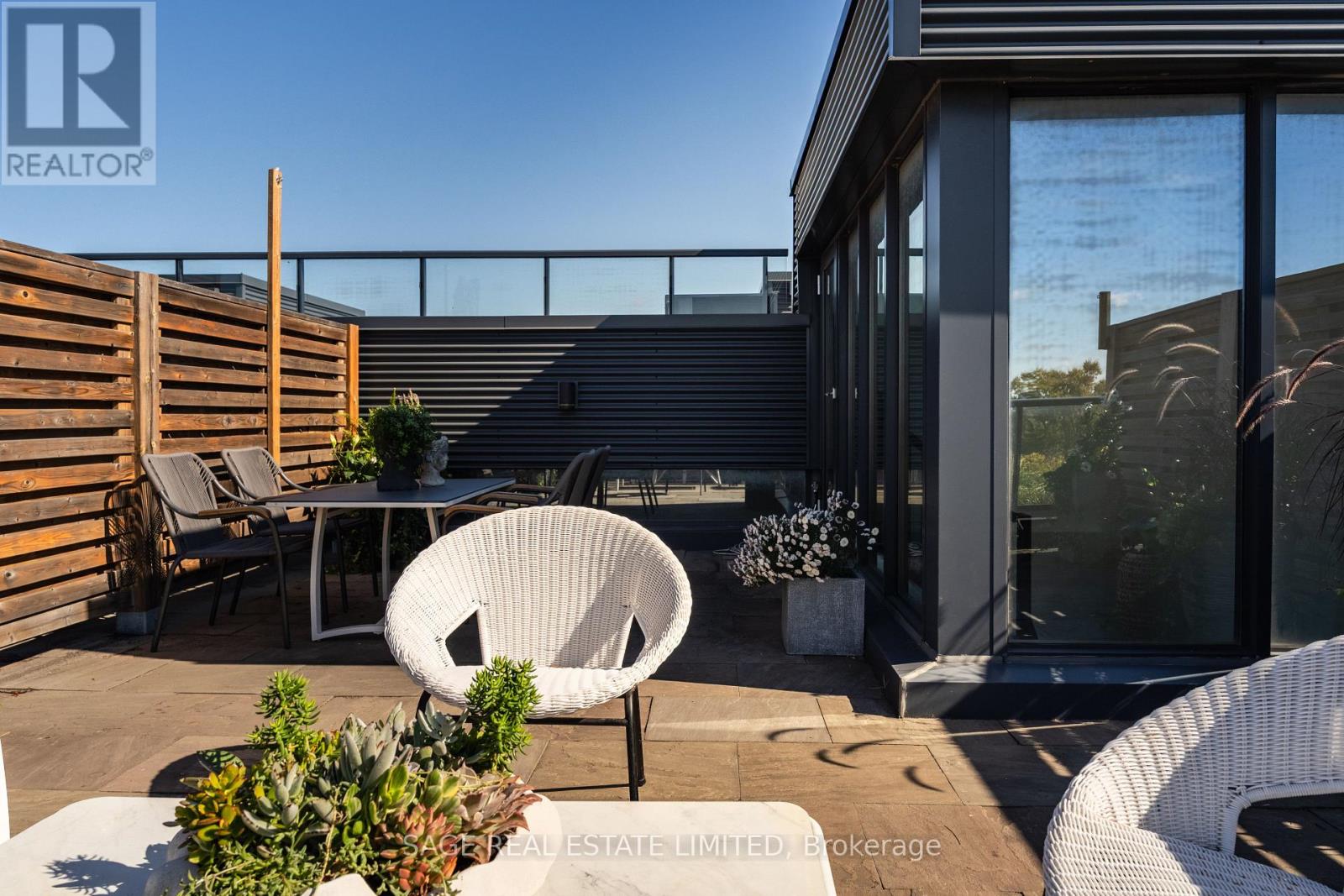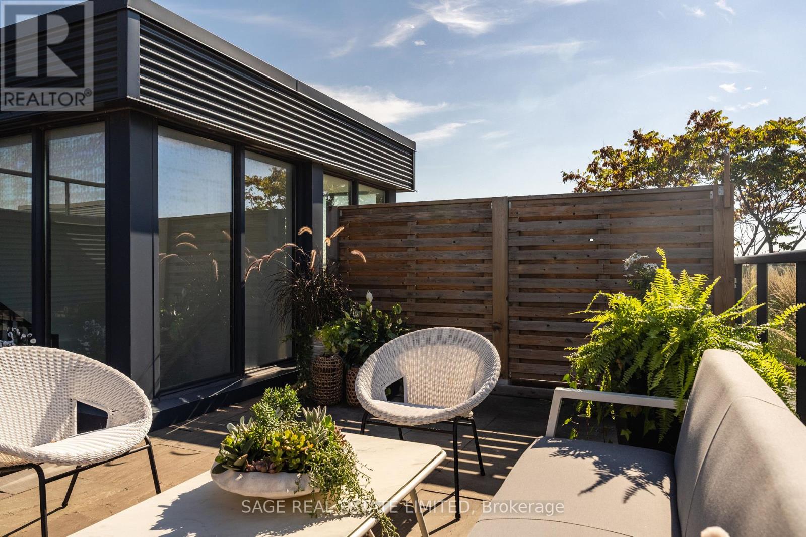 BUILT FOR BREATHING ROOM. This 'house in the sky' is here to bless your eyeballs, light up your feed and warm up your hearts. These 35 Wabash units are a different animal than your typical boutique townhouse set up - spacious, airy, and flooded with natural light. Featuring over 1,400 square feet of delicious open concept living with soaring 9'4" ceilings on every level. Elegant, timeless finishes, a sprawling 412 square foot private outdoor lounge, and abundant storage throughout. Inside, thoughtful design intersects with livable luxury: a built-in desk nook, a pantry (one of the only suites in the building to have one) main floor powder room, California closets (in fact, all three bedrooms have custom closets!) and electronic blinds. Irresistibly close to beloved Sorauren Park / playground and the weekly Farmers Market. Roncesvalles living at its very best.Come and get it! (id:4555)